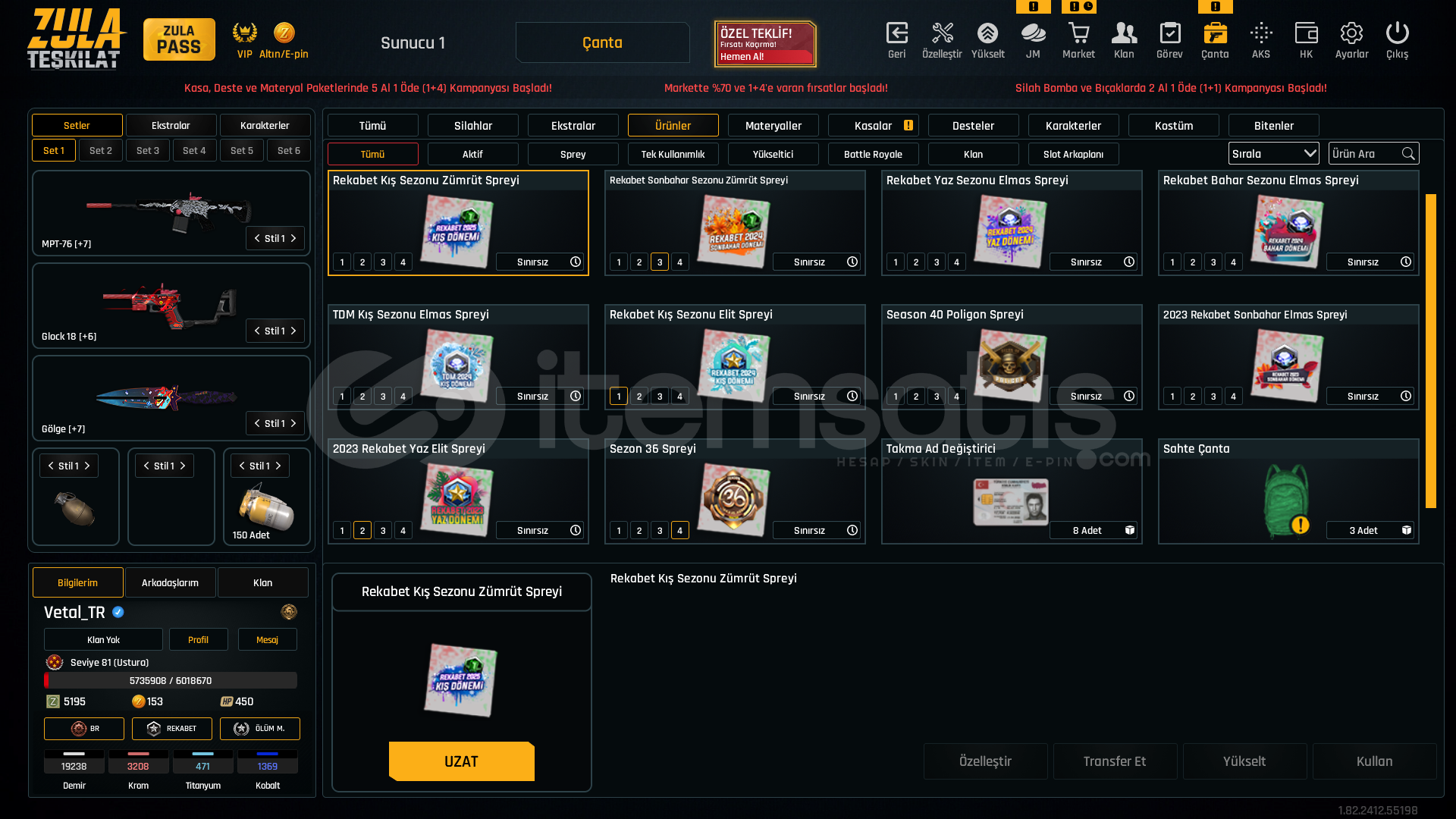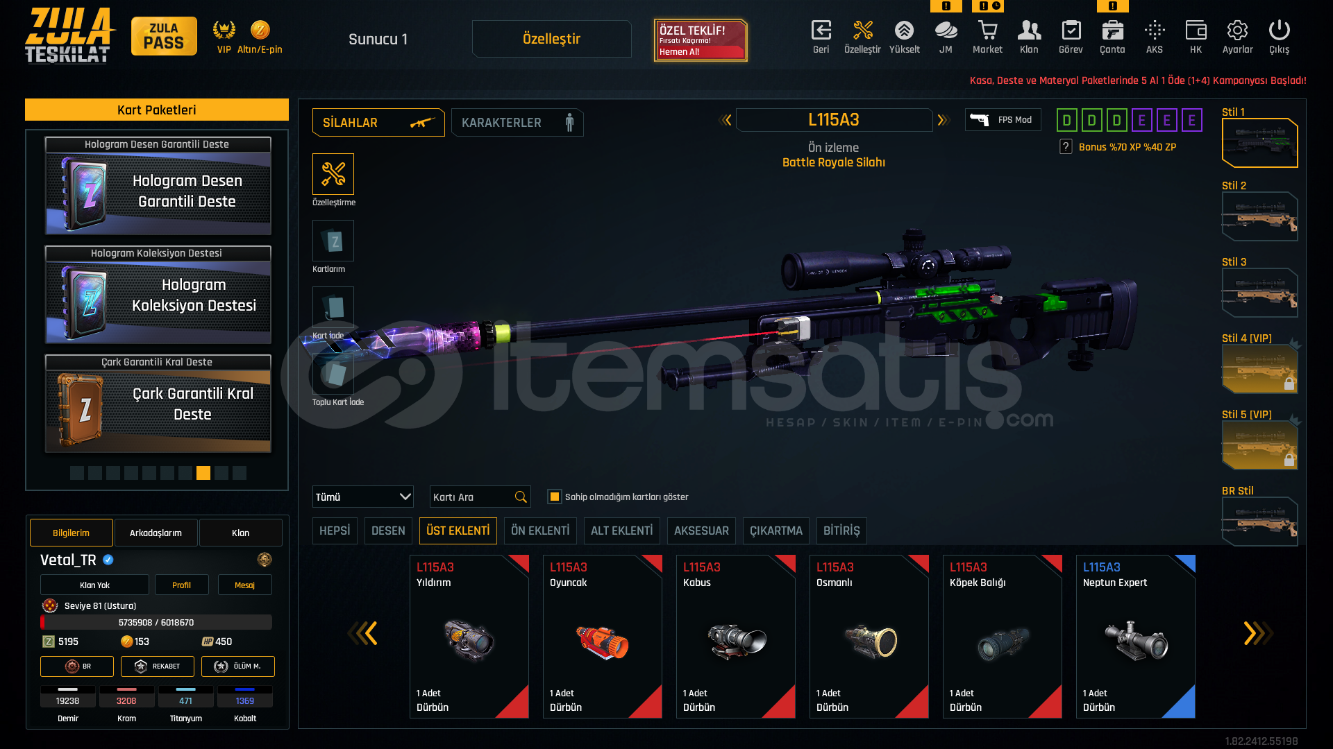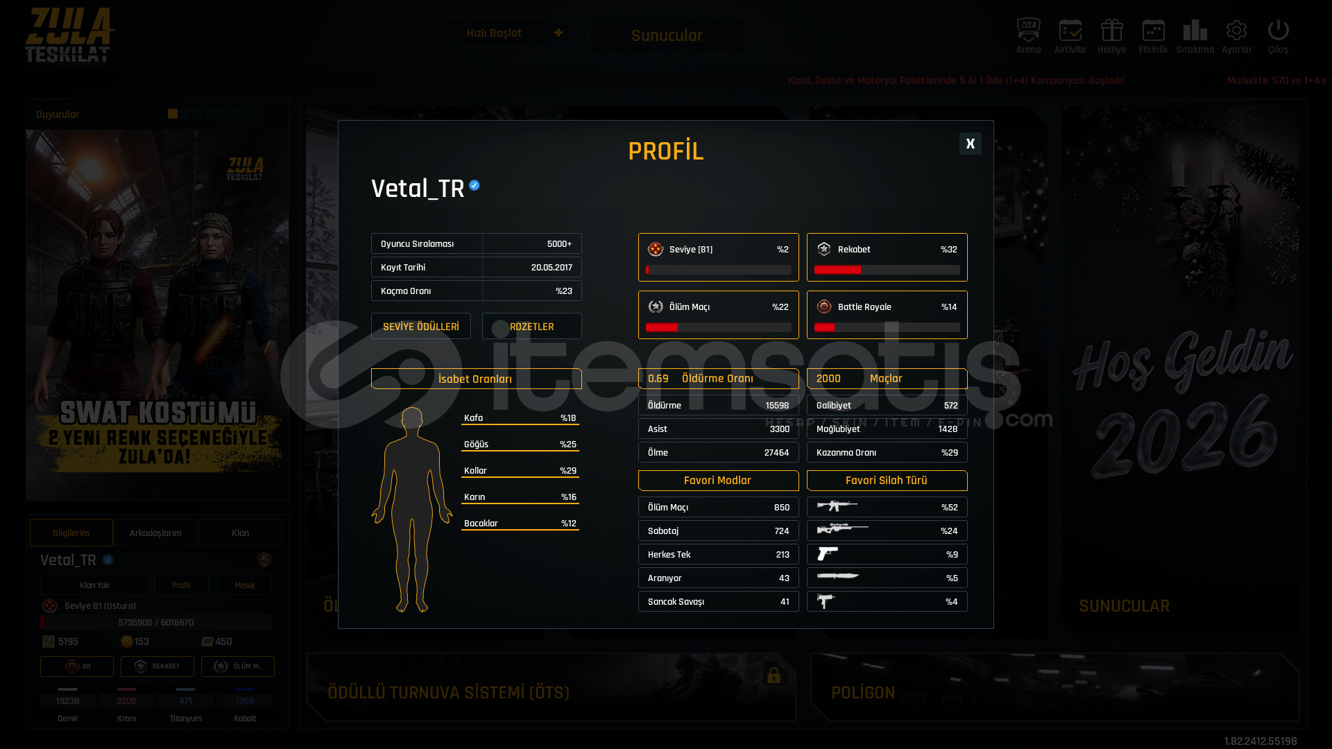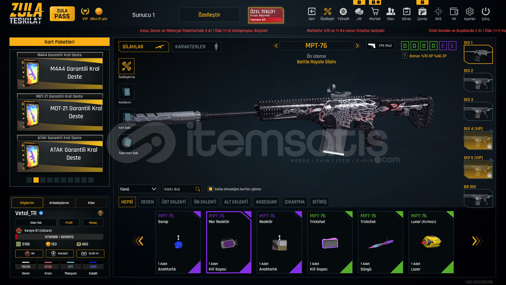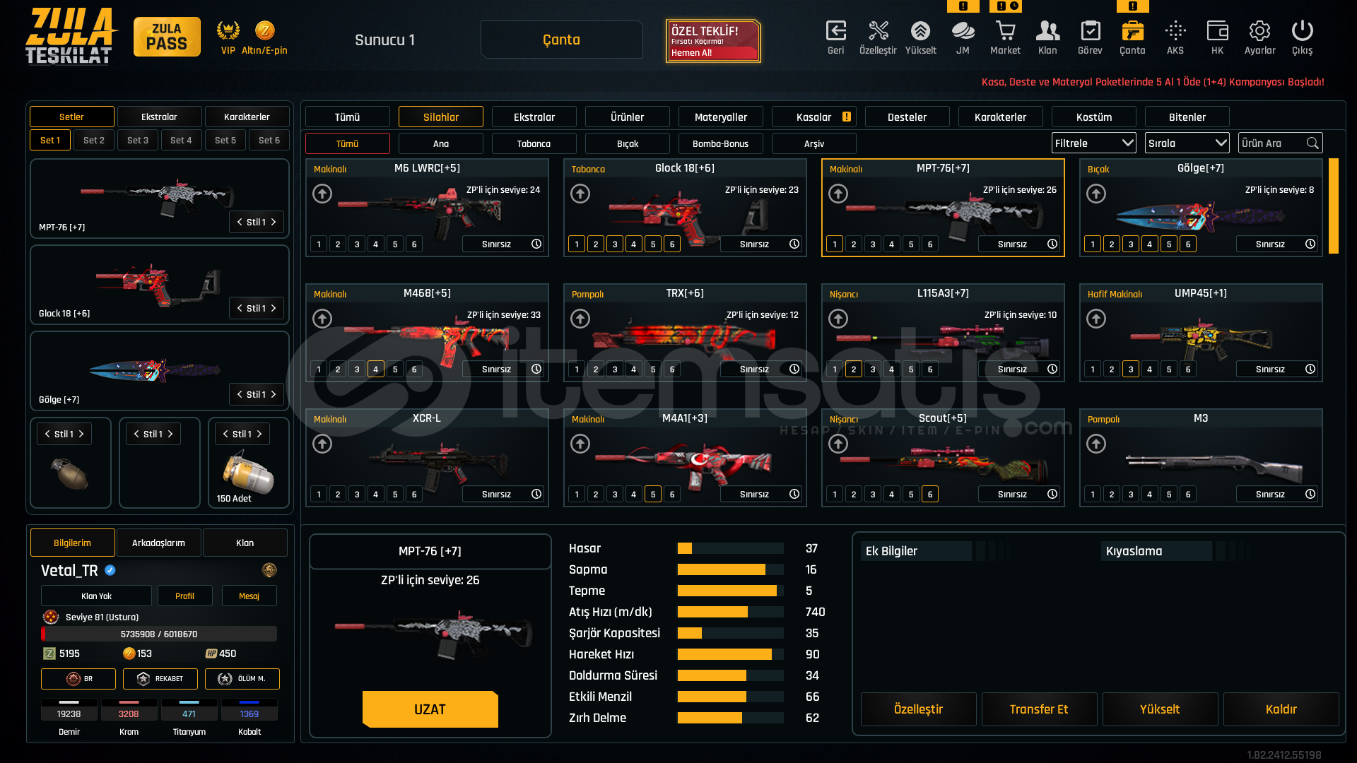 İLK VE TEK HESABIM OYUNU BIRAKTIĞIM İÇİN SATIYORUM2017 KURULUM HESAP 81 LEVEL8 TANE TAKMA AD DEĞİŞTİRİCİ VAR+7 GÖLGE SINIRSIZ+7 MPT76 FULL SET SINIRSIZ+6 TRX SINIRSIZ +6 GLOCK18 FULL SET SINIRSIZ+5 M468 FULL SET SINIRSIZ+7 L115A3 FULL SET SINIRSIZ+5 M6LWRC SINIRSIZUMP45 SINIRSIZXCRL SINIRSIZBUNLAR DIŞINDA SÜRELİ ÇOĞU SİLAH +5 VE ÜSTÜ"HIZLI DOLDURMA SINIRSIZ TEPME AZALTICI SINIRSIZ HIZLI ATE...