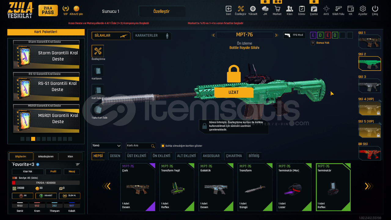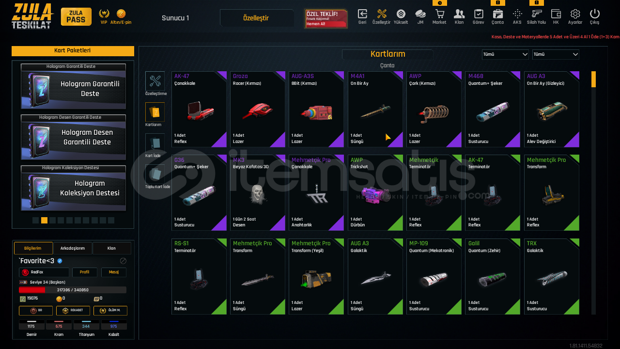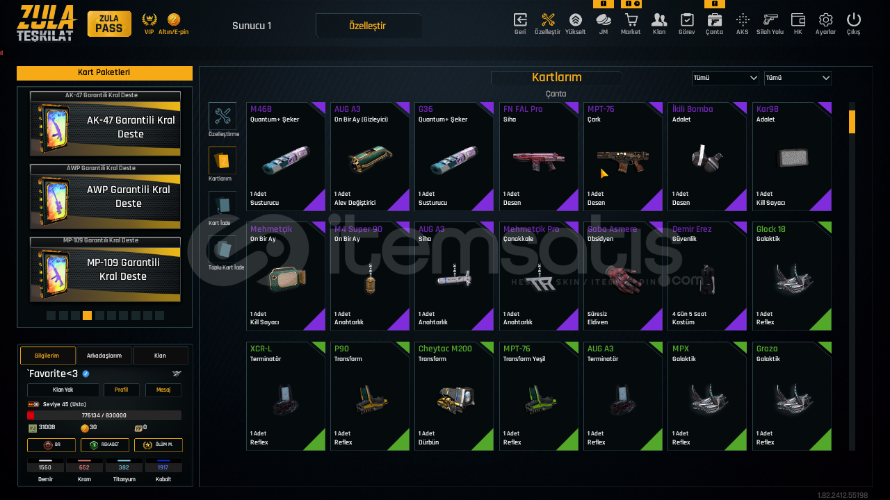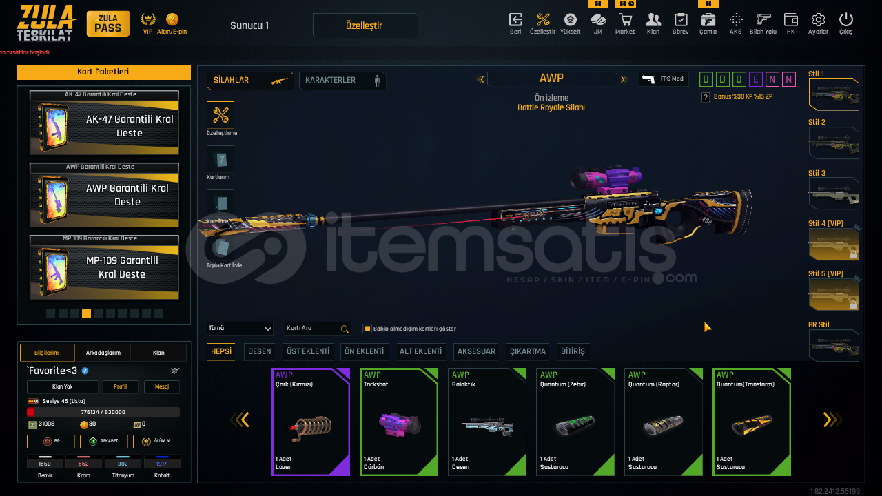 Yükseltmeler sizin için önemliyse gayet güzel bir hesap fiyat performans hesabıGroza +6Awp+6Rs s1+4Kar98+5İkili bomba +6Pp-2000+5Mpt76+5Trx+5Gölge +5M93r+6M4 super 90+6Tommy gun+6L115a3+1Karambit +6Ustura+6Atak+1Msr01+1P90+4Spas-12+4Mk3+6Cheytac m200+3