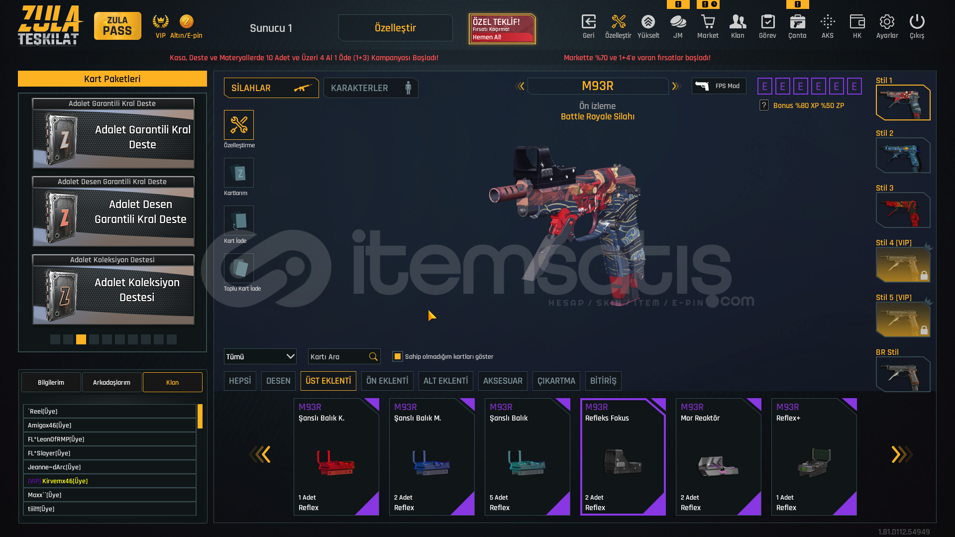 M93R REFLEKS FOKUSZOOM ÖZELLİĞİ BULUNUR DÜRBÜN AÇTIKTAN SONRA SHİFTE BASILIRSA 2X BÜYÜR.OYUNUN EN NADİR DÜRBÜNÜ
