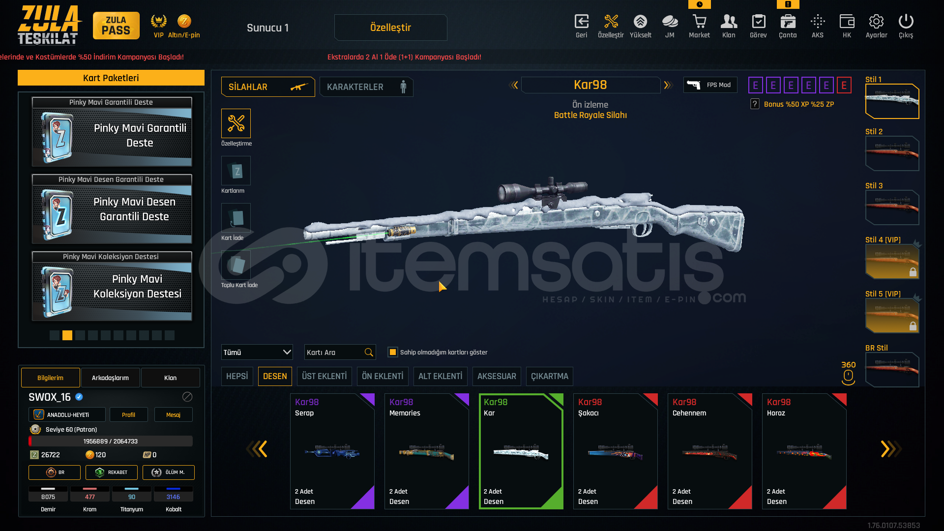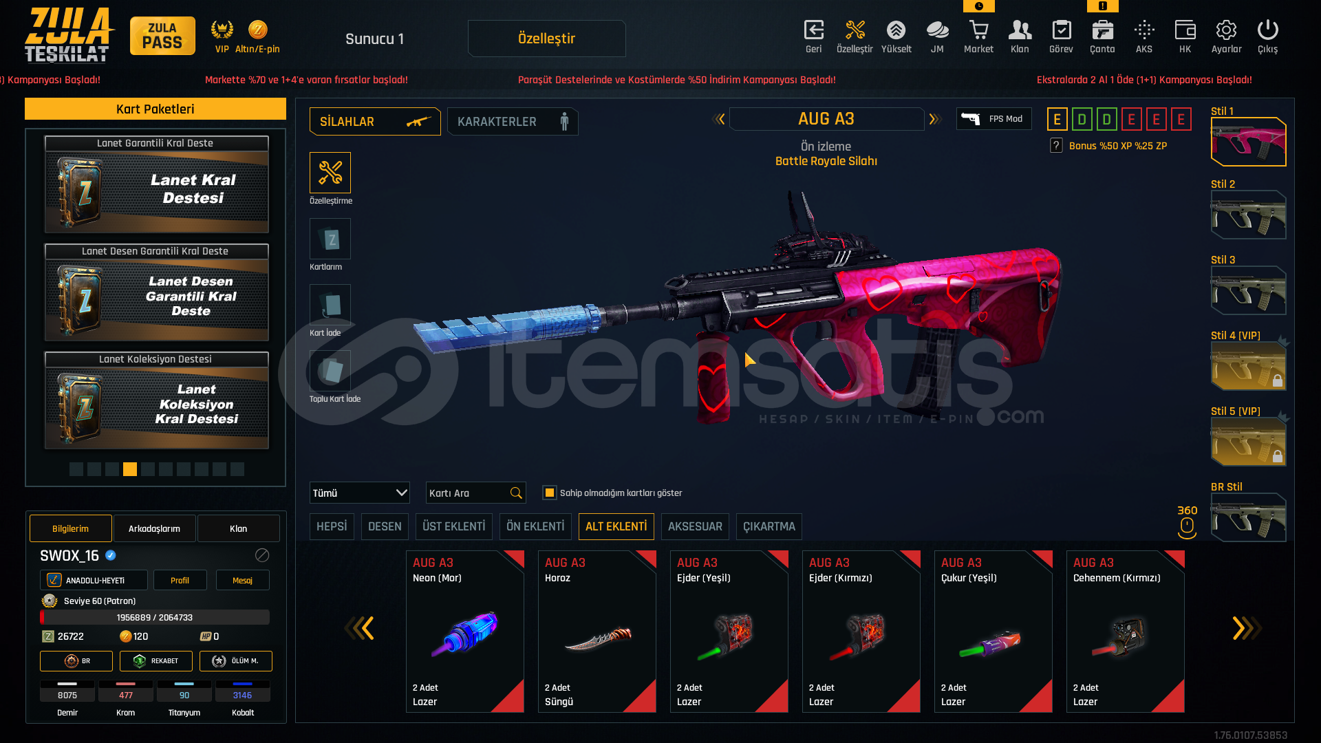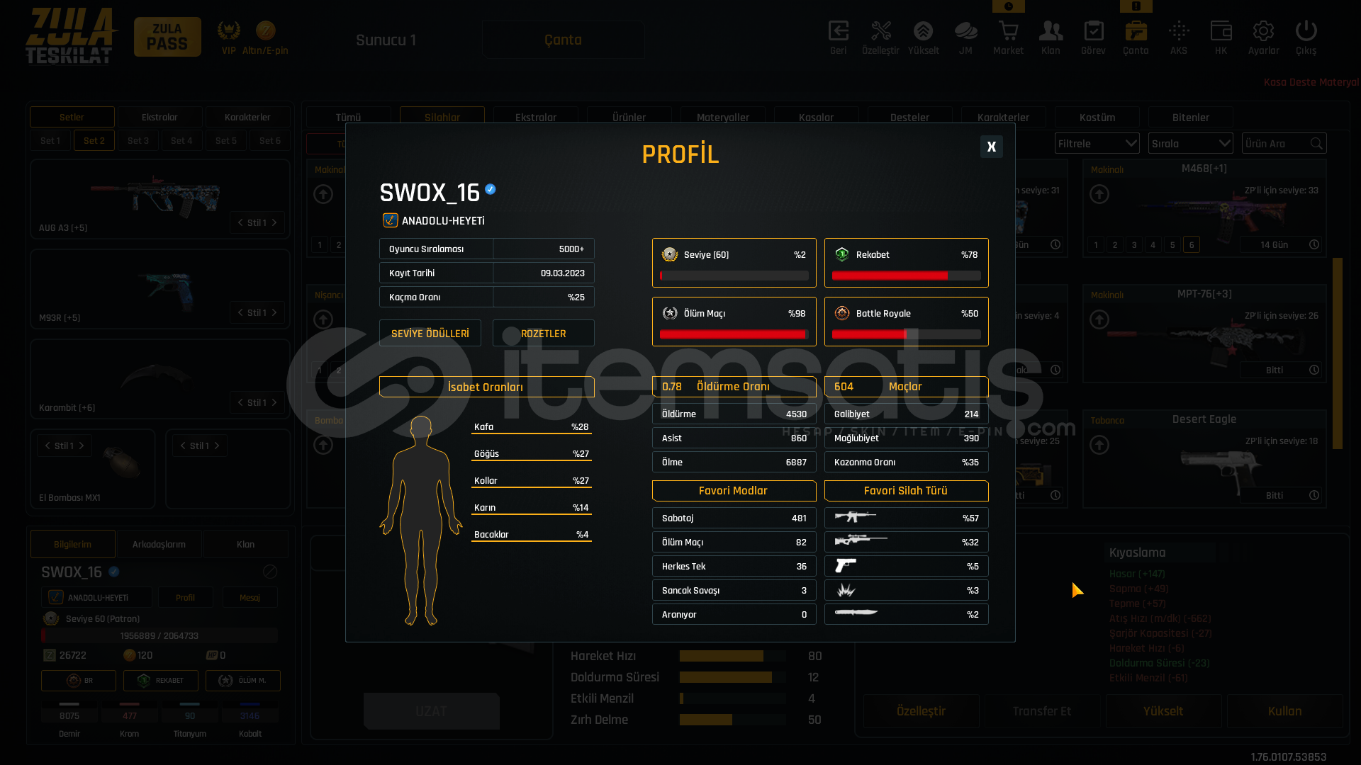 oyuna ayırcak zamanım olmadıgı ıcın satılıktır maın sılahlar full bol artılı bol ozellestırmledır alıcısına hayırlı olsun