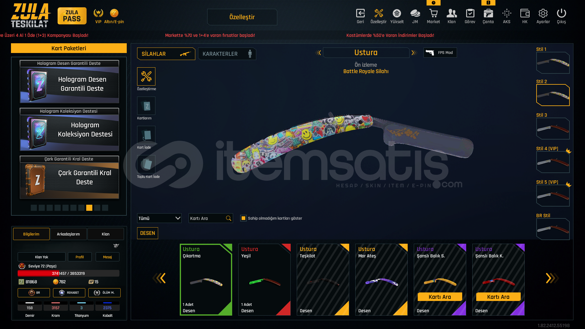 👑 HESAP 72 SEVİYEDİR.👑 RANK : ELMAS👑 BİNLERCE LİRA VE EMEK HARCANDI.•••••••••••••••••••••••••••••••••••••••••••••••••••🎨 ZULA PASS VE 1 AYLIK VİP ÜYELİĞ&...
