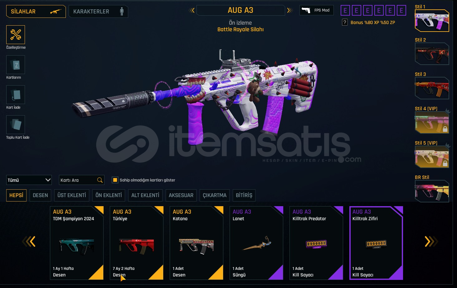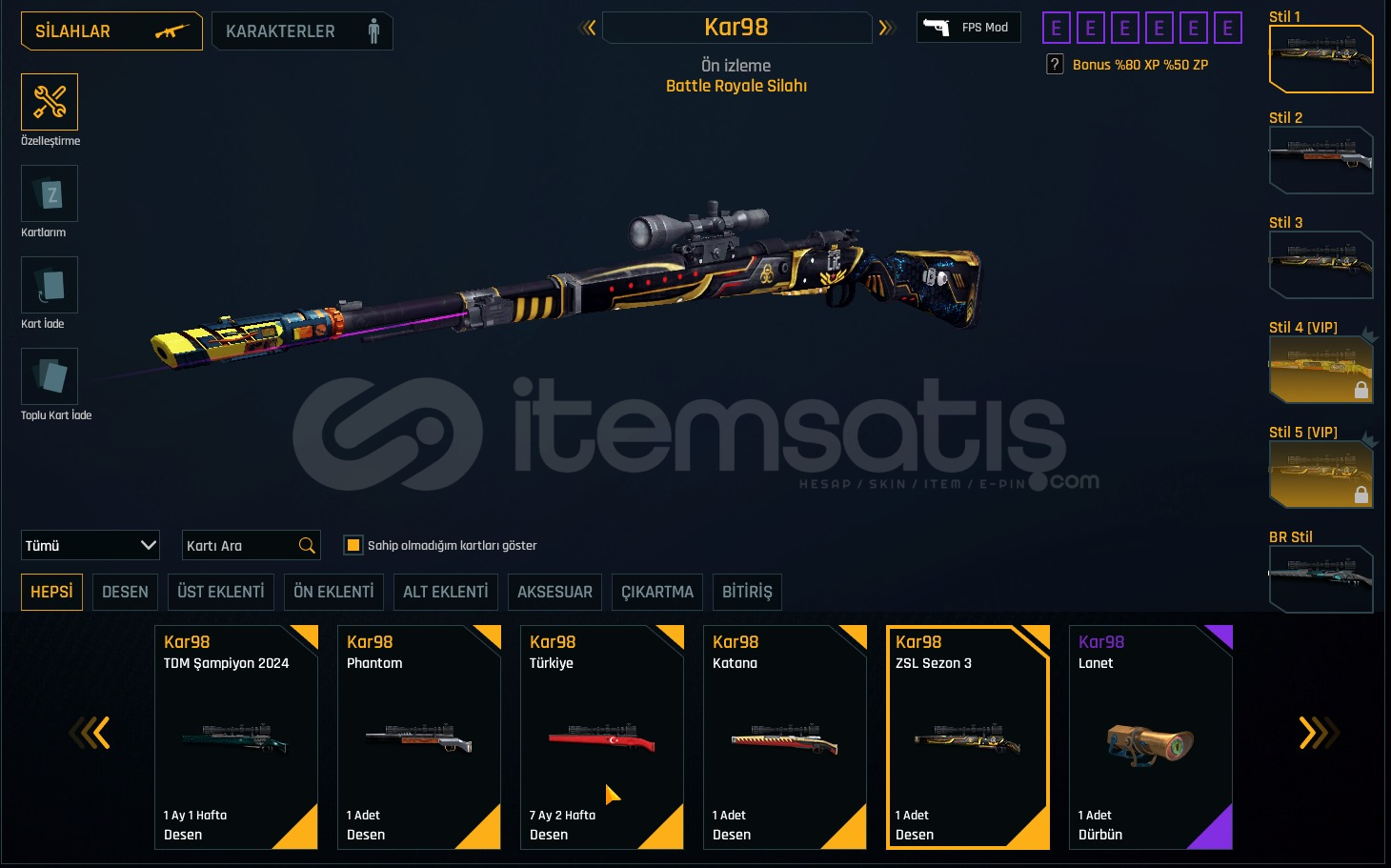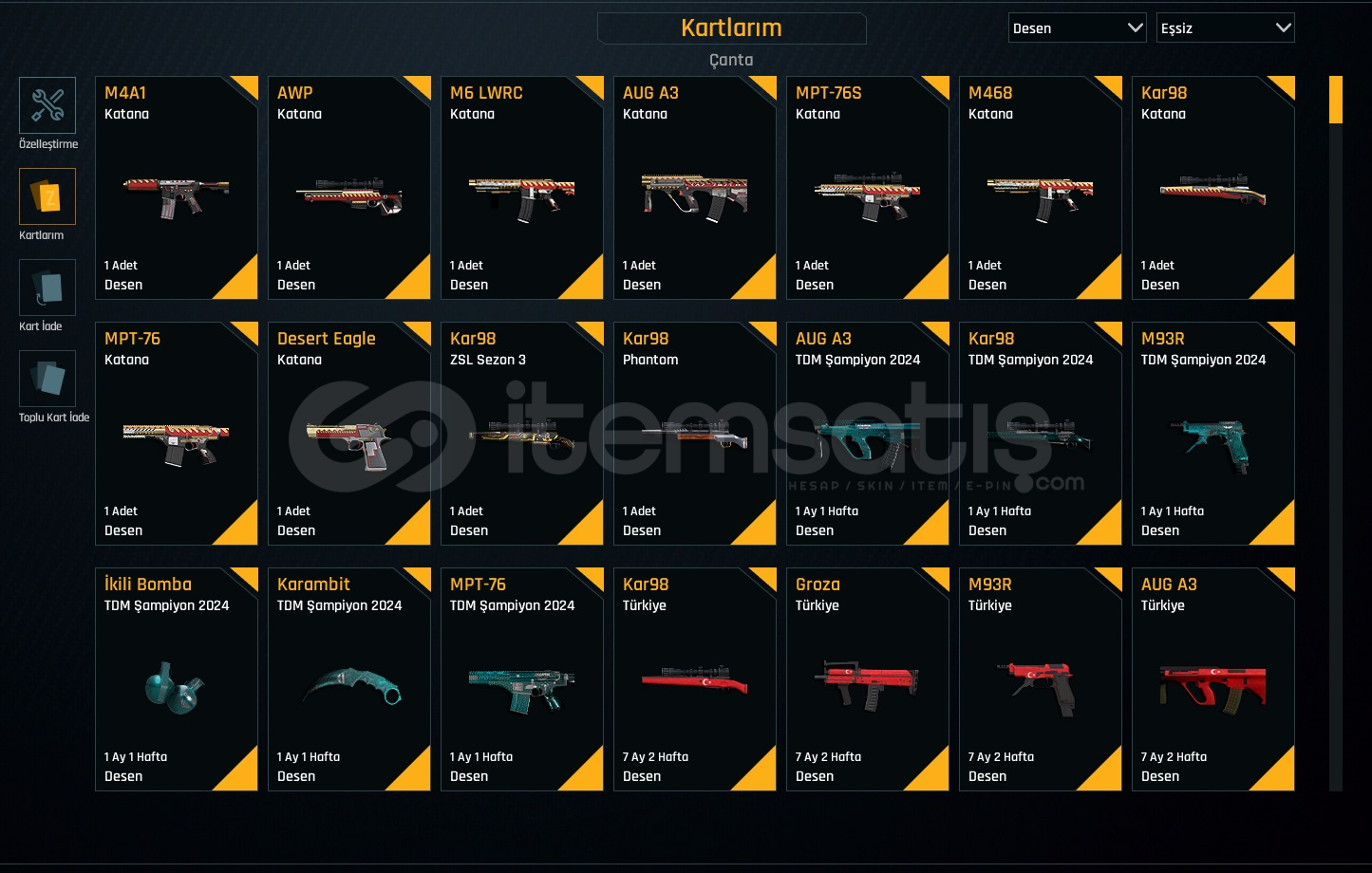 YENİ META SINIRSIZLI YÜKSEK LEVEL TIKA BASA DOLU HESAP. ✨LEVEL : T-6RANK : ELİT🎨 KAR-98 ZSL3 DESEN🎨 KAR-98 PHANTOM SET🎨 7 AY TÜRKİYE DESENLER (AUG-M93R-KAR-98)🎨 1 AY TDM ŞAMPİYON DESENLER 🎨 MPT-76 DEHŞET DESEN🎨 MSR-01 QUANTUM + CEHENNEM🎨 KAR-98 QUANTUM + CEHENNEM🎨 AUG-A3 MUZZLE + GİZLEYİCİ🎨 AUG-A3 REFLEX +🎨 KARAMBİT VİRÜS DESE...