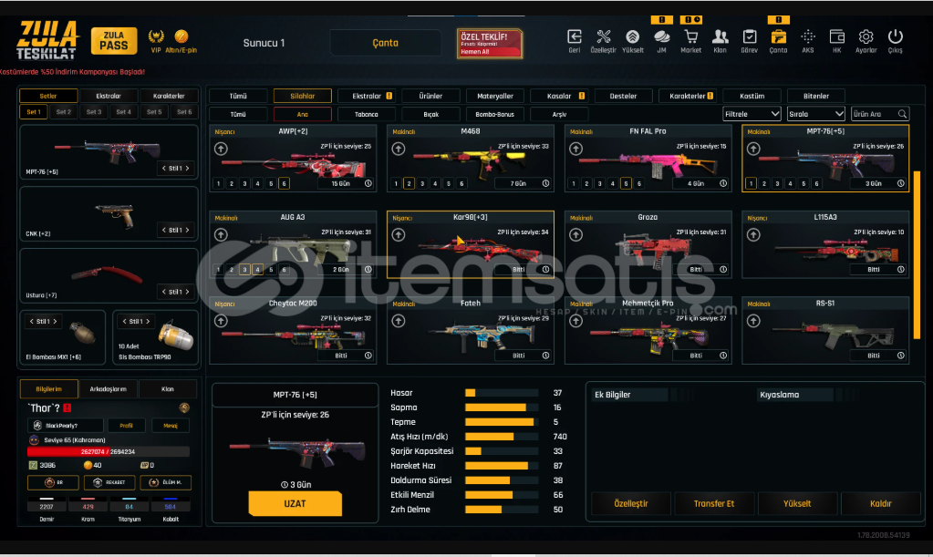 BU FİYATA ZOR FOTOGRAFLARDA HERSEY MEVCUTMPT76 QUANTUM REFLEX VARDIR HİÇ SİLAH SEKMİYOR GÜNLERİDE YÜKSEK SİLAHLARINUSTURA ARTI 7 KURT DESENİ VAR ÇOK İYİHESAP TEK BAĞ E POSTA BAGLI BAGLAR TERTEMİZ İSTEDİGİNİZ BAGI EKLERİM100K ZULA ALTINI YATIRILDI SADECE BU AY İÇİNDE ÇOK PARALAR YATIRILDI BEBEK GİBİ HESAP ÇOK UCUZA SATILIKİSİM DEĞİ...