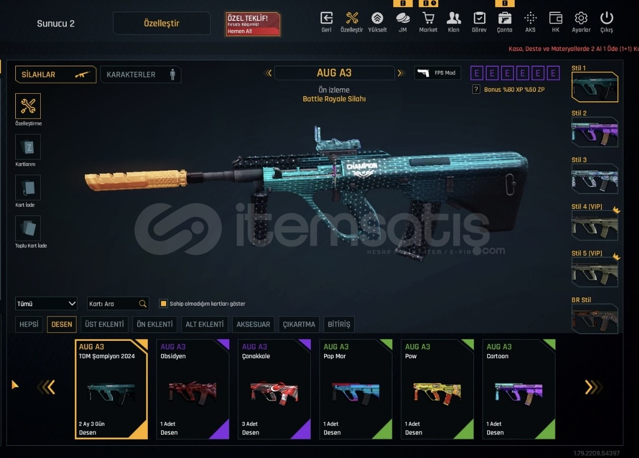 TDM ŞAMPİYON ROZETİ 2 AYLIK TDM ŞAMPİYON DESENLERİ GÜNCEL TDM ŞAMPİYON EŞSİZ M93R ZSL 3 - GLOCK 18 , EXO MOR ATEŞ DESENT-10 SEVİYE TÜM METALAR QUANTUM+ ÖZELLEŞTİRME DOLU 37 ADET SINIRSIZ———> S [+7] ATAK S [+7] MSR 01 S [+7] RS S1 S [+7] KAR98 S [+7] MPT-76 S [+7] M468 S [+7] AUG S [+7] MPX S [+7] DSR-1 S [+7] M93R S [+7] CNK S [+7] GLOCK 18 S [+7] DEAGLE S [+7] USTURA S [+7] KELEBEK S [+7] KARA...
