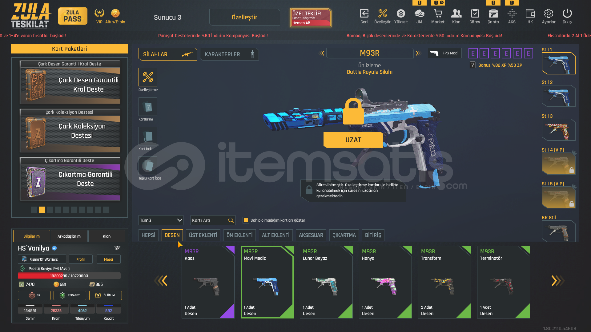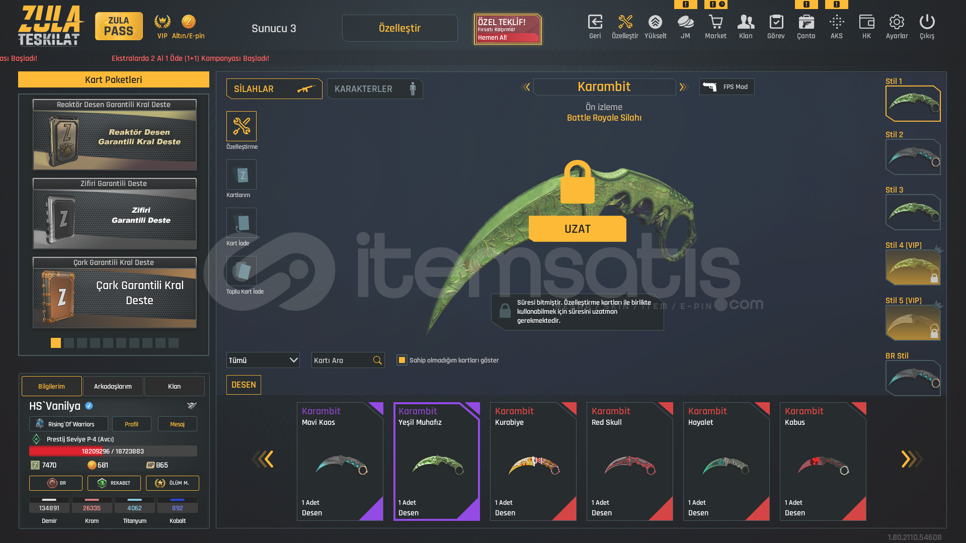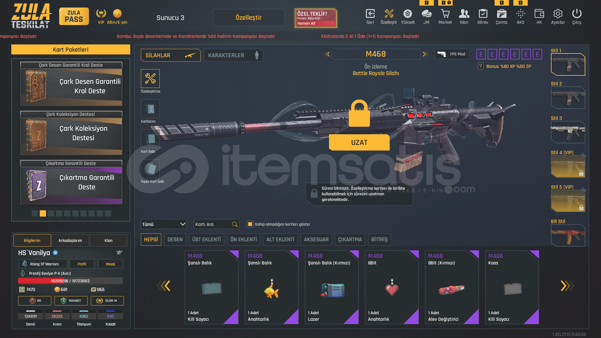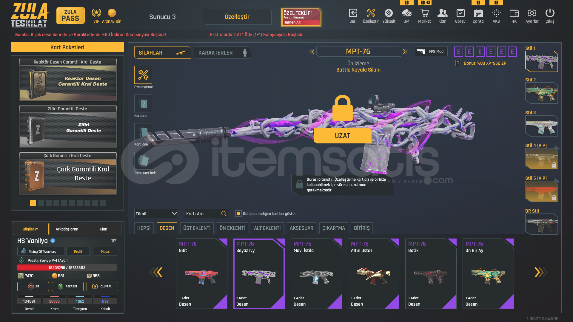P-4DOLULAR DOLUSU !1x Takma 1x İstatistik Sıfırlama11 Sınırsız Sprey⭐USTURA(SINIRSIZ)⭐⭐KELEBEK(SINIRSIZ)⭐⭐TEPME AZALTICI(SINIRSIZ)⭐⭐AUG A3 +7 (FULL ŞANSLI BALIK-SON-SAMURAY DESEN-8BİT-HANYA)⭐⭐KAR 98 +7 (LANET-HANYA-PİNKY)⭐⭐MPT 76 (BEYAZ IVY-8BİT-ALTIN USTASI-MAVİ İSTİLA-GOTİK-MOR POP-ZİFİRİ-BEYAZ GÜÇ-SOKAK)⭐⭐RS...
