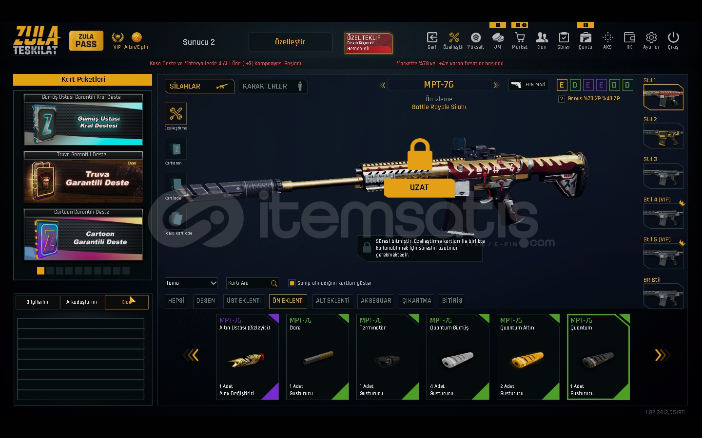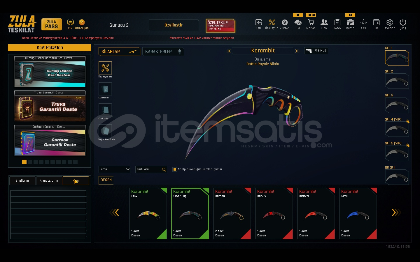 P-3 SEVİYE FIRSAT HESABI AUG A3 +6 MPT 76 +6M468  +6GROZA +6FAMAS +6M6LWRC +6KTR035 +6M4 SUPER90 +6P90 +6AK 47 +7ALİEN M2023 +4ATAK +3PP-2000 +6 (SINIRSIZ)KRİSS VECTOR +7 (SINIRSIZ)İKİLİ BOMBA +7 (SINIRSIZ)M93R +6GLOCK 18 +6DESERT EAGLE +6KARAMBİT +6USTURA +7KELEBEK +7GÖLGE +7HUNTSMAN +7WİLDCAT +6KNUCK +6DİKİŞ TUTMAZ +6KURT +5SÜRMENE BIÇAĞI +4İKİLİ C5 +7MK3 +6KAR 98...