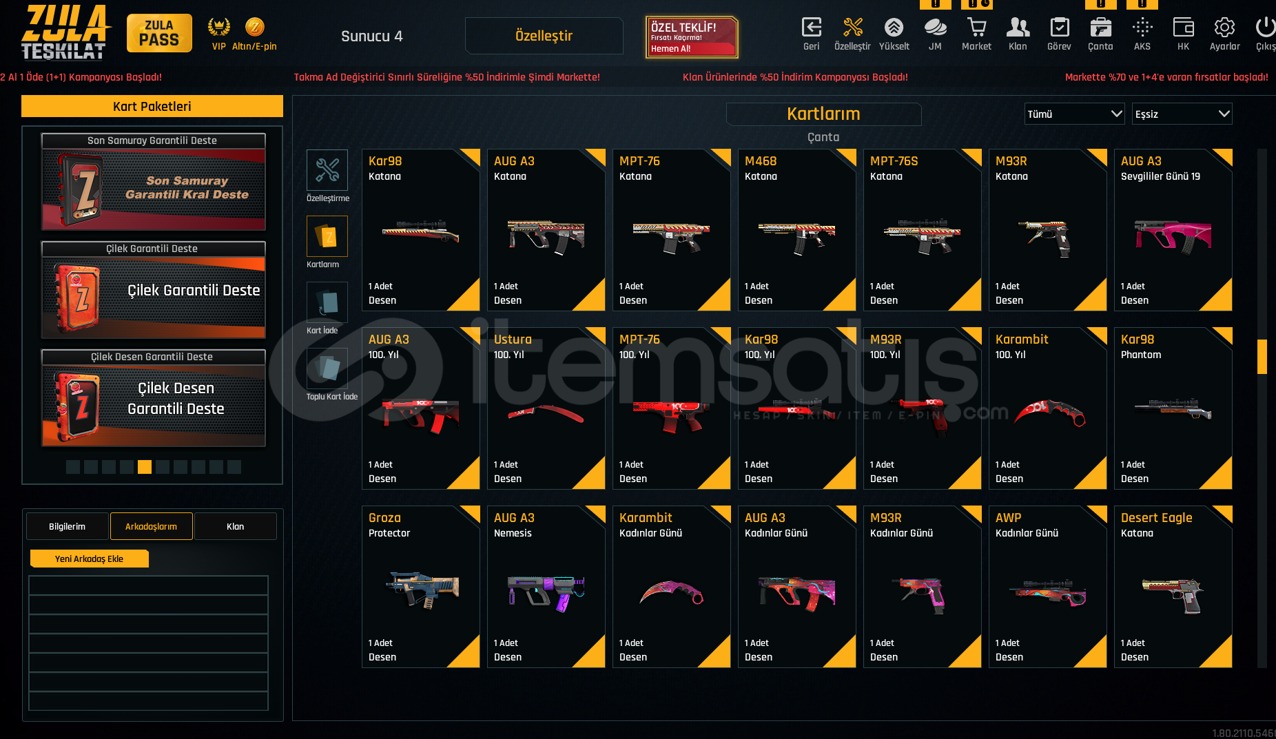 TEŞKİLAT SEVİYE T-3SEVİYE 150SIRALAMA 20M468 İZAKO DESENİUSTURA MOR ATEŞ DESENİESKİ KADINLAR GÜNÜ D. TAM SETYENİ KADINLAR GÜNÜ D. TAM SETZSL SEZON 3 DESENLERİ TAM SET100.YIL DESENLERİ TAM SETAUG NEMESİS TAM SETKAR98 PHANTOM TAM SETGROZA PROTECTOR TAM SET2.00 KD 134.274 KİLL - 9.666 MAÇEXTRALAR FULL SINIRSIZSINIRSIZ ZEYNEPSINIRSIZ ELENAELENA HAREKET HIZI +5 SÜRESİZZEYNEP HAREKET HIZI +5 1 AY...