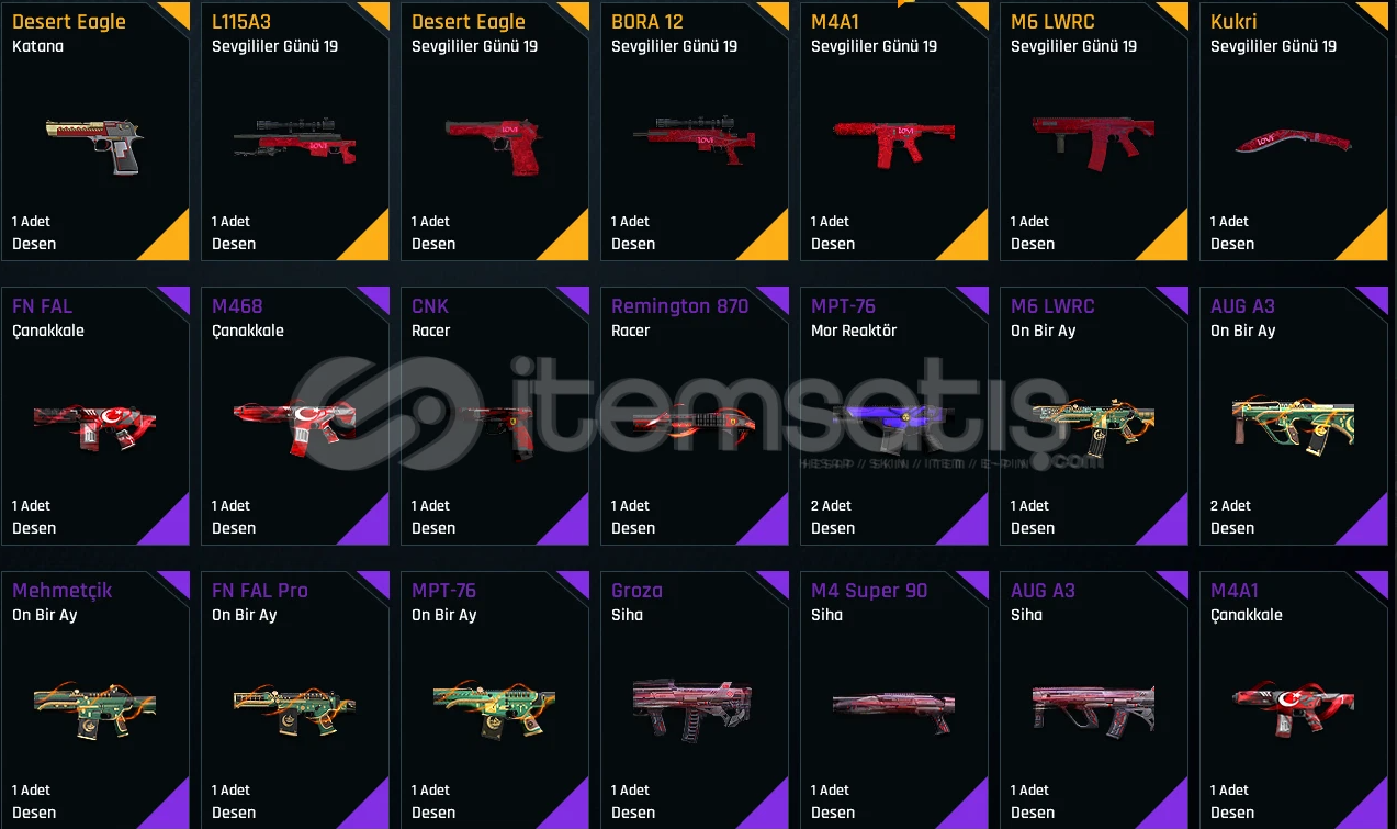 MÜKEMMEL HESAP[KAYDIRMALI POST]🎖️LEVEL: P-6 (106) 🎖️🎖️RANK: ELMAS🎖️🎖️KD: 1.50🎖️👑KATANA DESENLERİ 👑👑SEVGİLİLER 19 DESENLERİ👑👑MOR REAKTÖR DESENLERİ 👑👑RACER DESENLERİ 👑👑GÜMÜŞ USTASI DESENLERİ 👑👑ON BİR AY DESENLERİ 👑👑SİHA DESENLERİ...