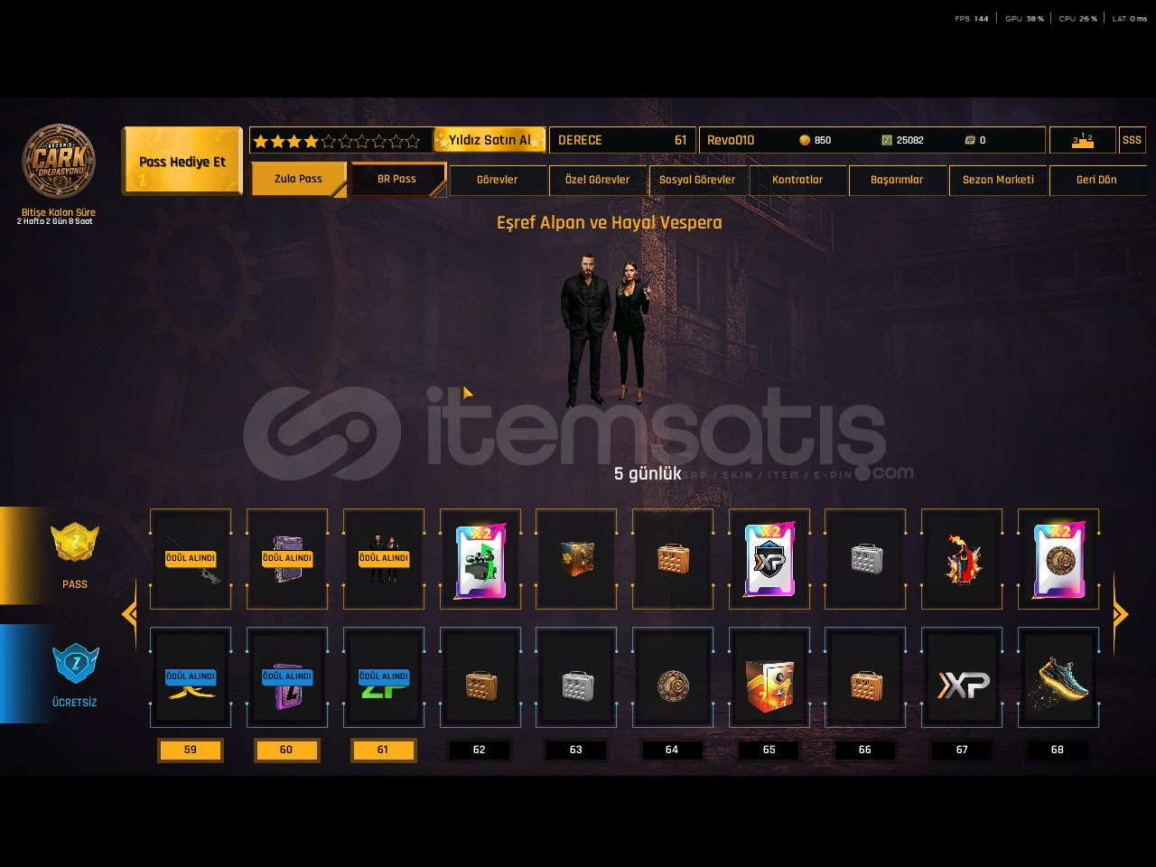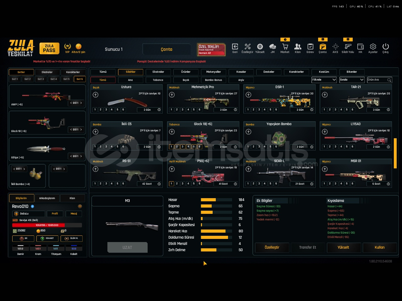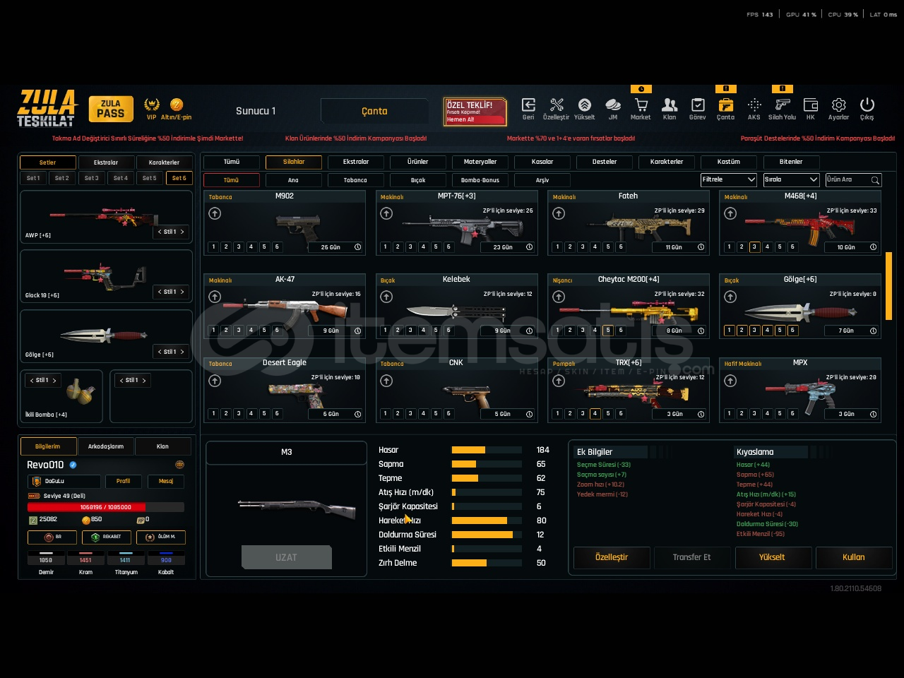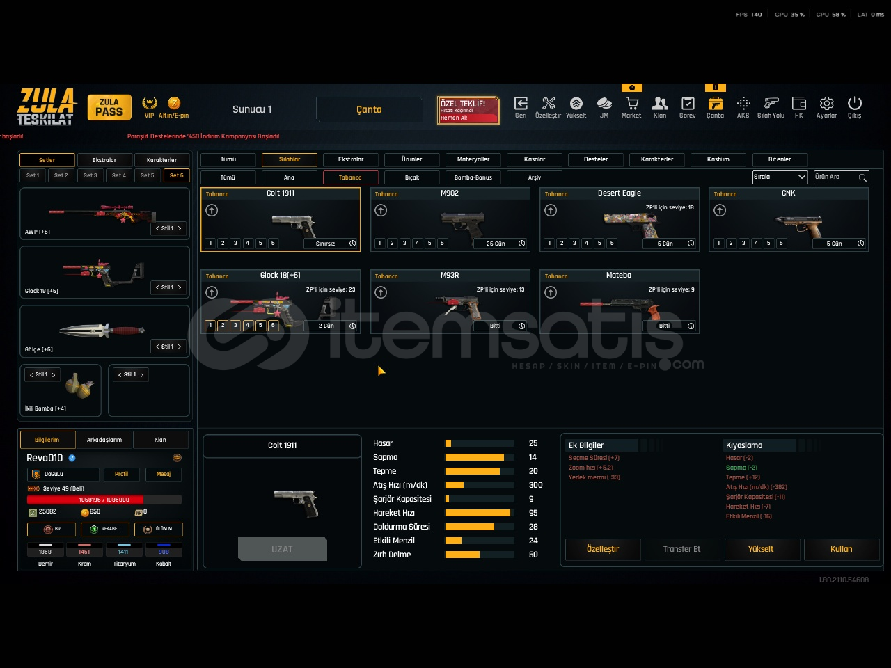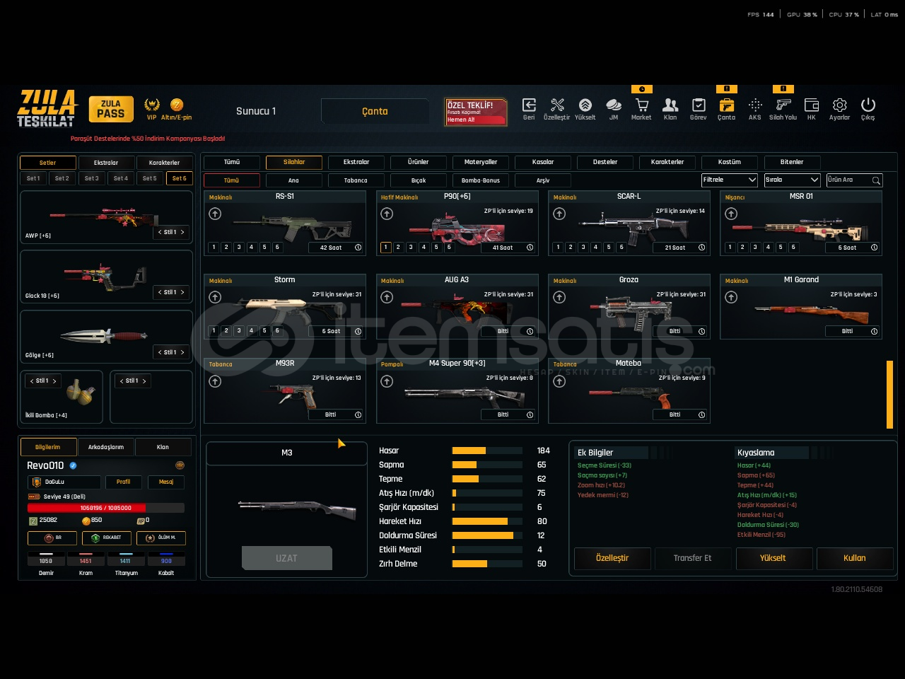 hesapta uzun sureli silahlar mevcuttur.başlangıç hesabıdır.telefon ve mail değişimi yapılacaktır.pazarlık makul fiyatta yapılır.