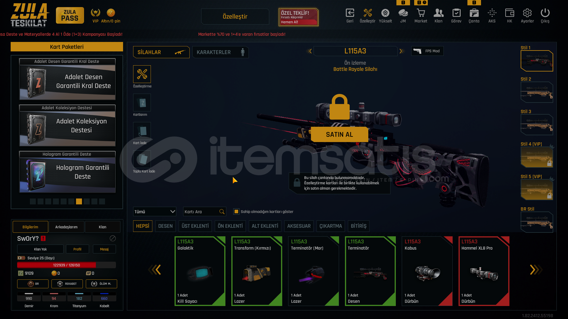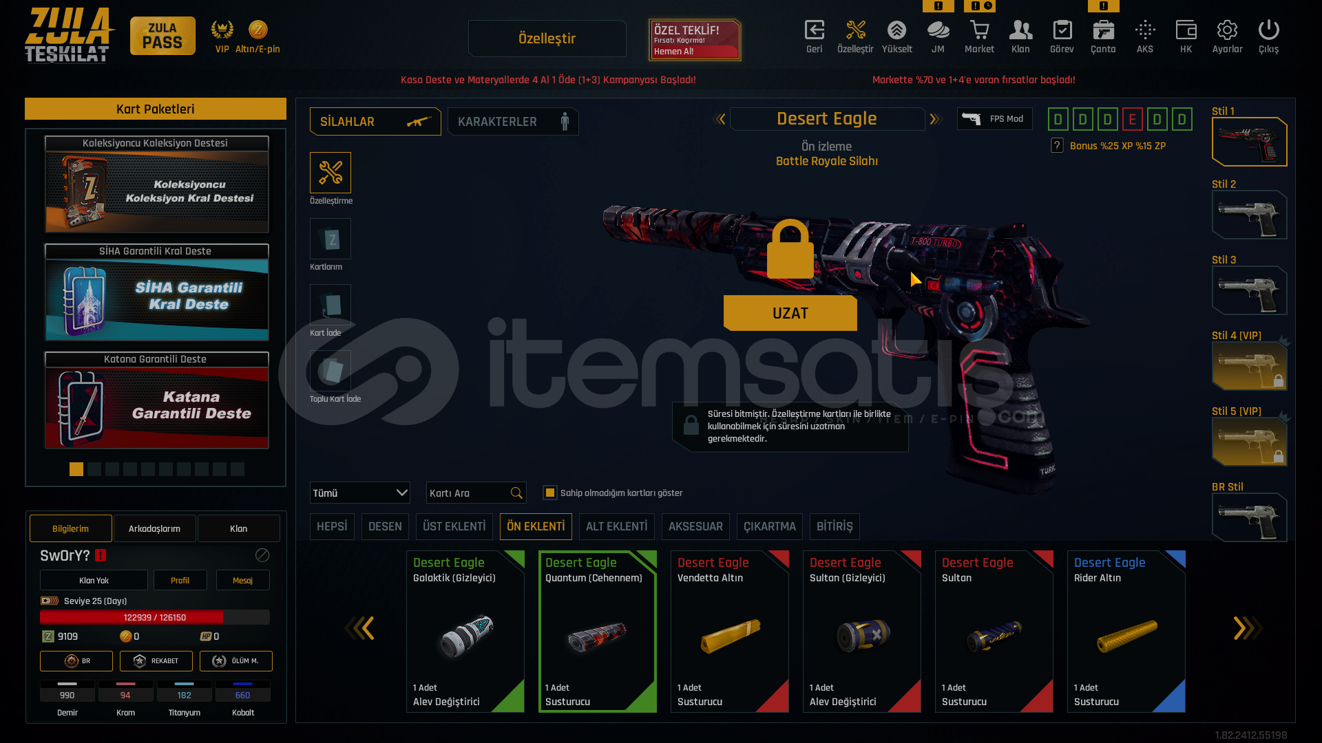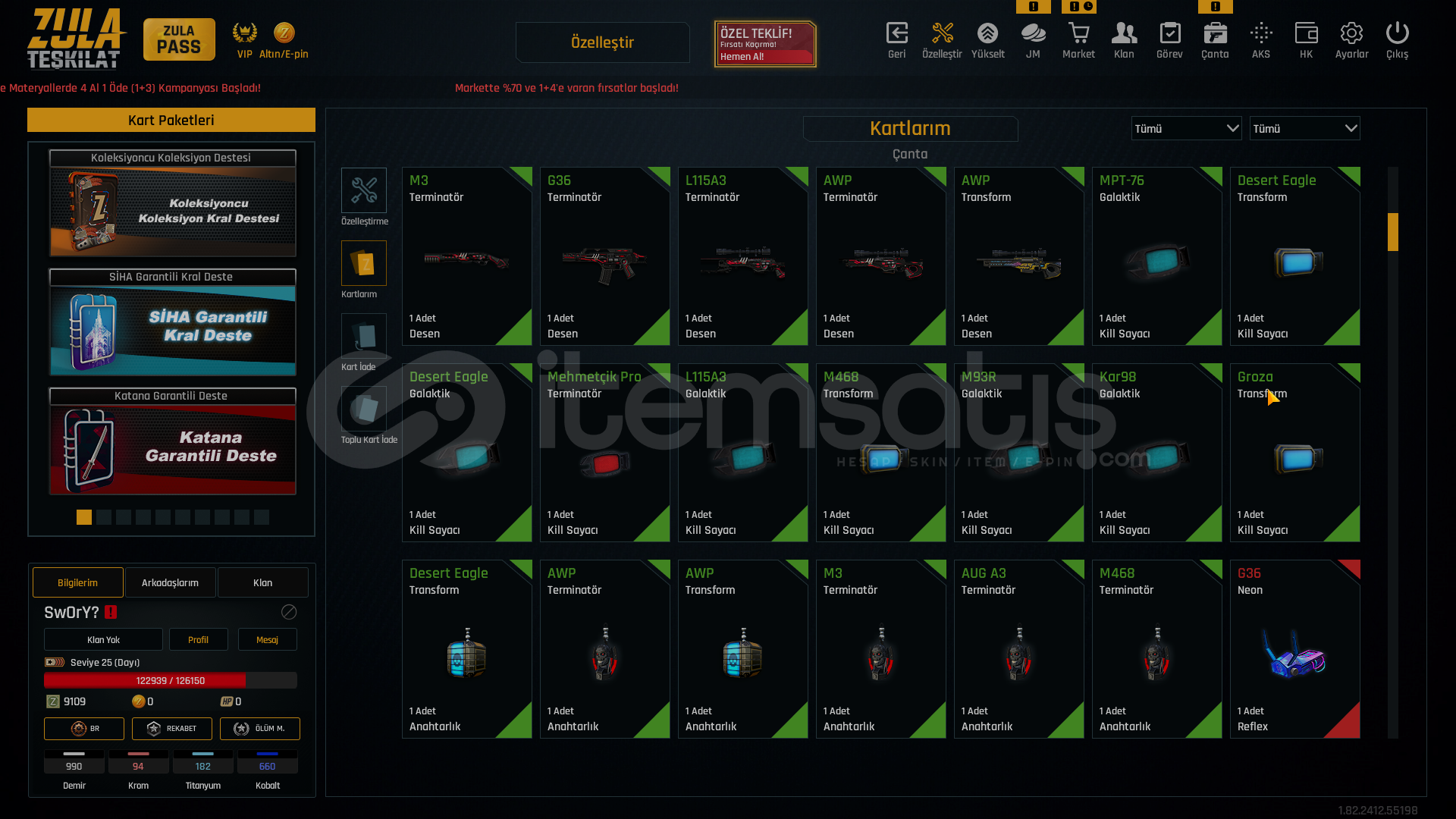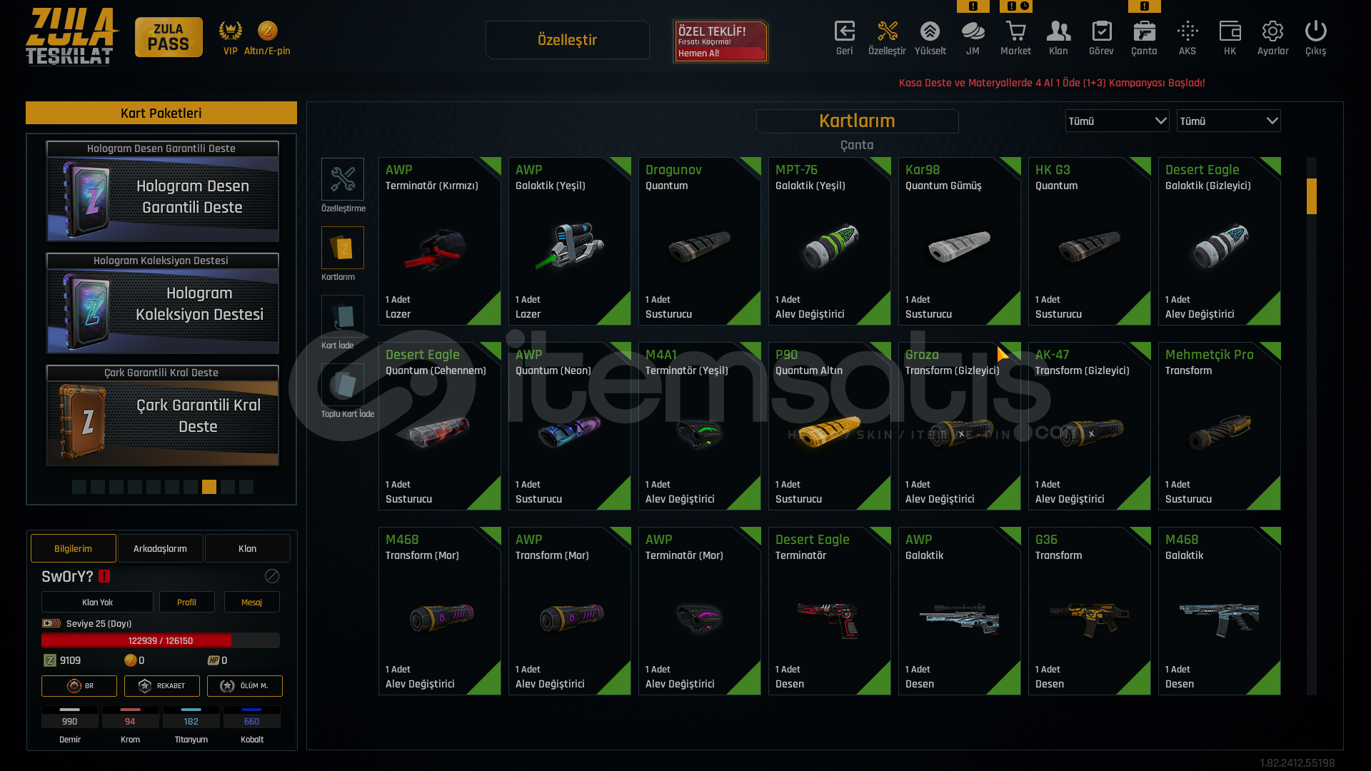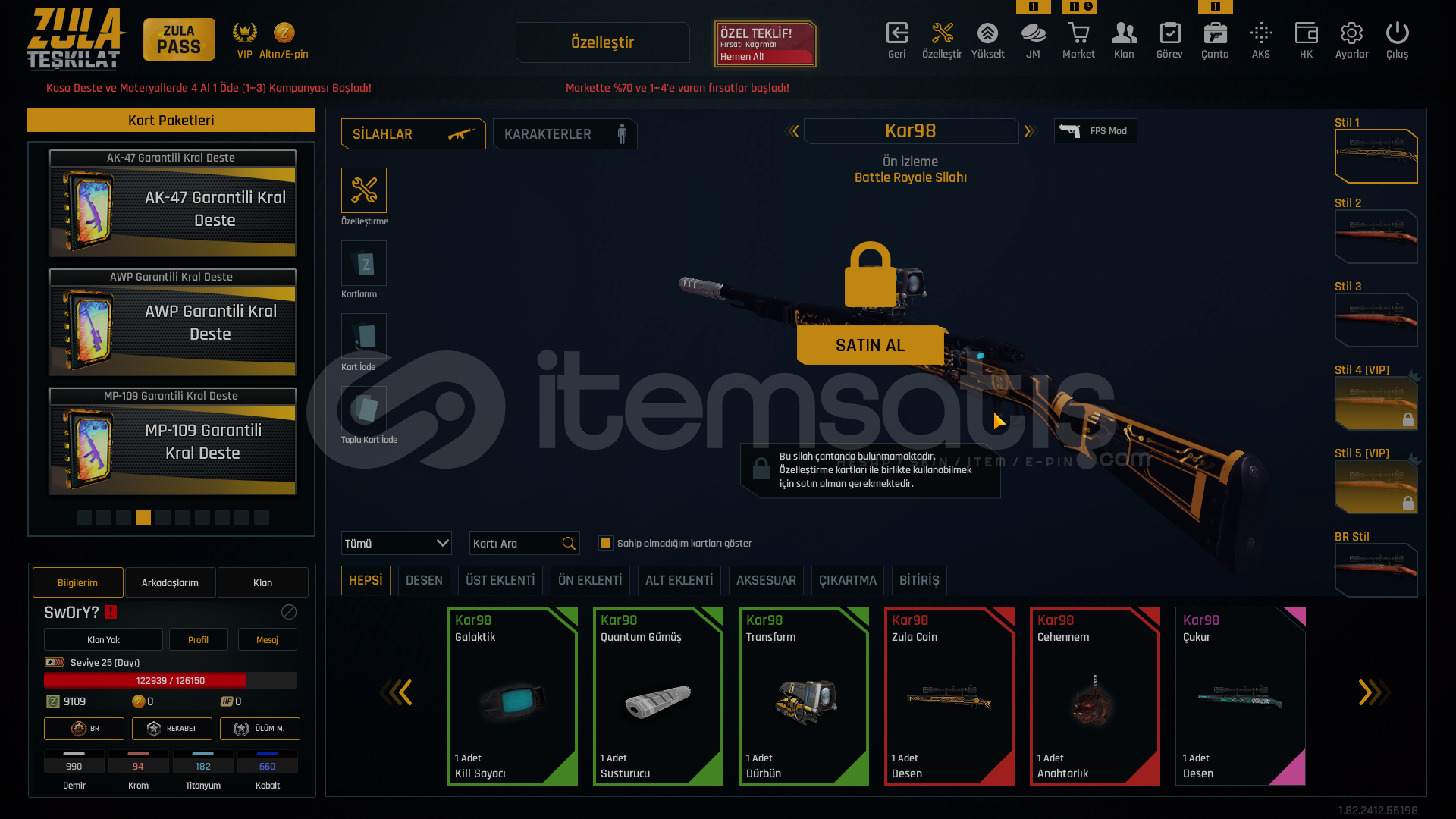 -GÜVENİLİR ve HIZLI SATICIYIZ-25 LEVEL SAĞLAM ÖZELLEŞTİRMELİ HESAP BU FİYATA BİRDAHA BÖYLE HESAP GELMEZ-HESAPTA TEL MAİL DEĞİŞTİRİP ÜZERİNİZE YAPILIR !📌 KAR-98 QUANTUM SUSTURUCU📌 AWP QUANTUM SUSTURUCU📌 TERMİNATÖR EKLENTİLER📌 TRANSFORM EKLENTİLER📌 ÇOK BOL ÖZELLEŞTİRME EKLENTİLERİ...