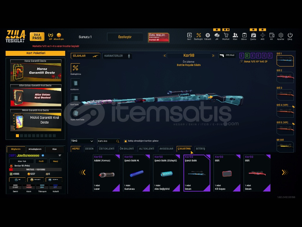HESAP DA CİDDİ ALICIYA PAZARLIK OLUR :RS S1 MOR ATEŞ SEVENLERE ÖZEL HESAP + Lı silahlar )Rs s1 +7 Msr-01 +7 Awp +7 Aug -a3 +7 M4a4+7 (YENİ META ) Storm +5 Groza +6 Kar 98 +6 L115a3 +6 M93r +7 Cnk +7 desert eagle +7 Karambit +7 Ustura +7 Esinti +7 Gölge +6 İkili bomba +7 Tekli bomba +7 ) Za ile alınan desenler ) karambit yıldırım ,kadife Ustura kadife deseni Mk3 momentum , çikolata deseni Trp 90 momentum deseni——&mdas...