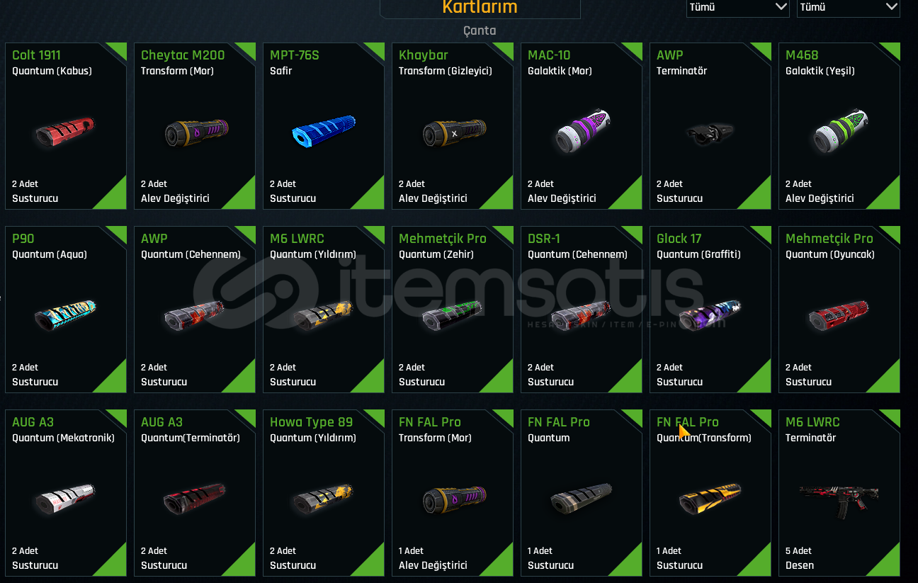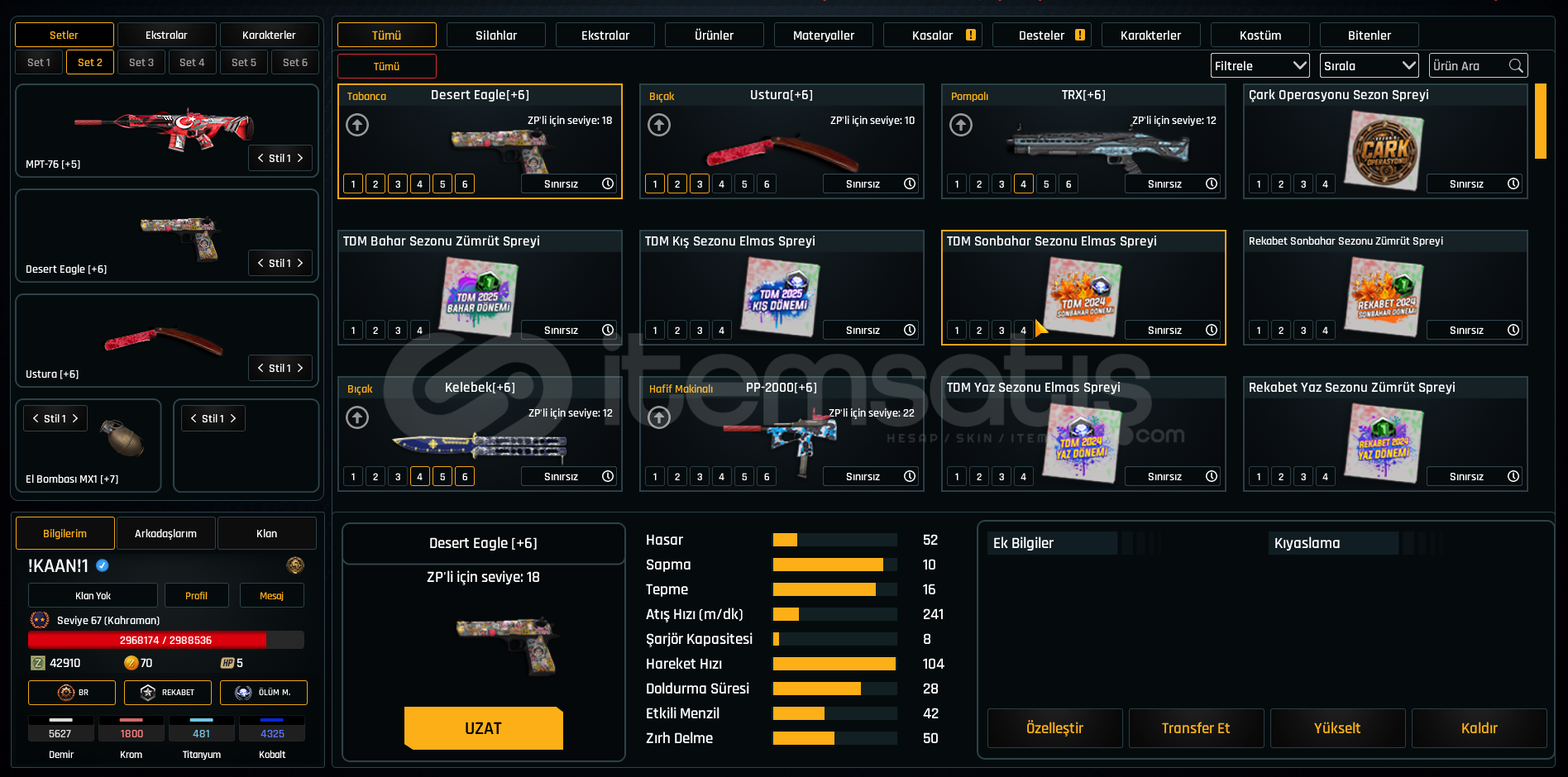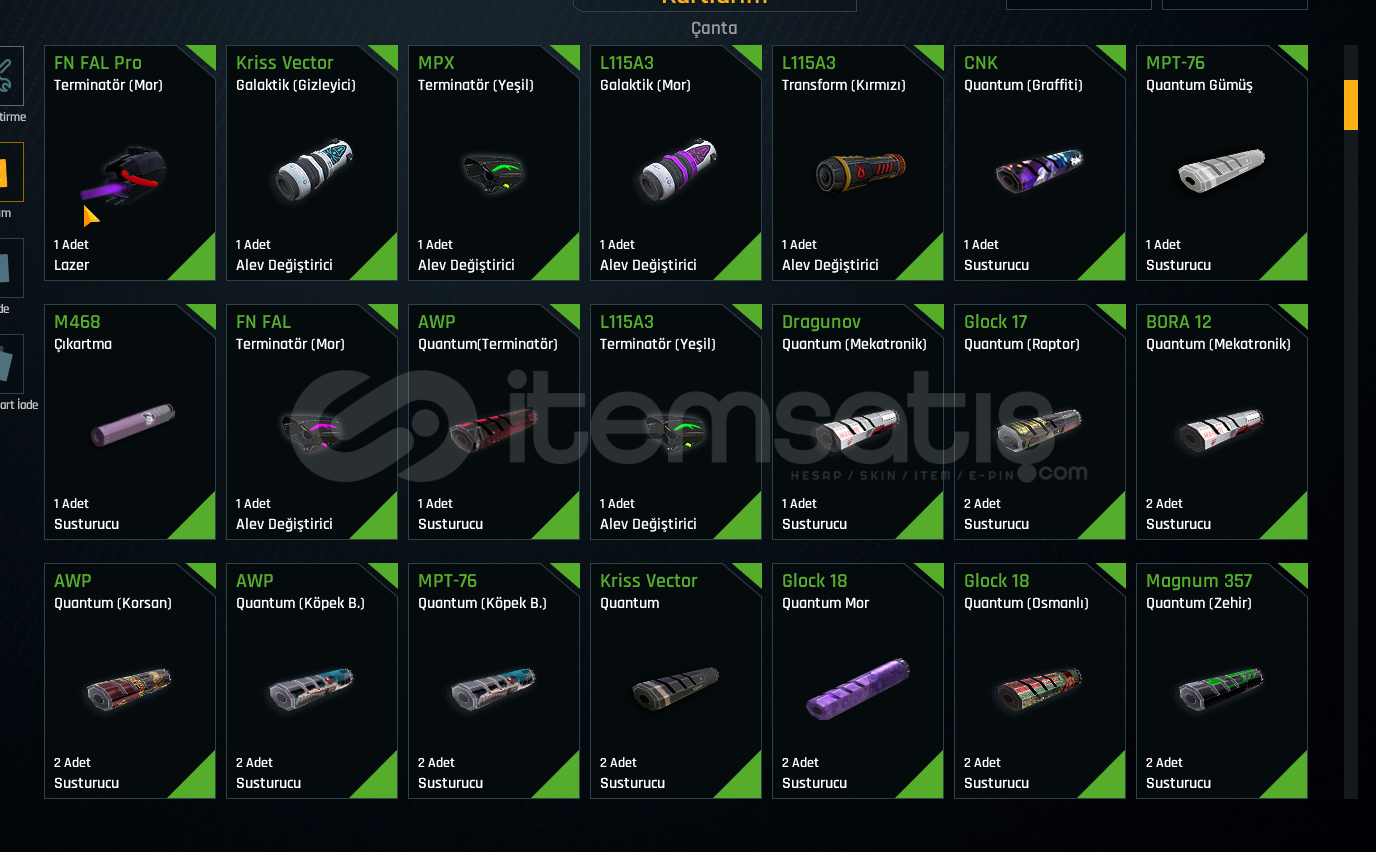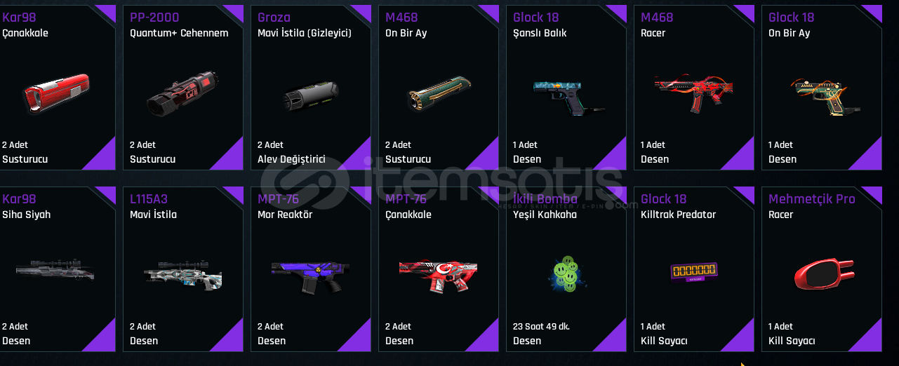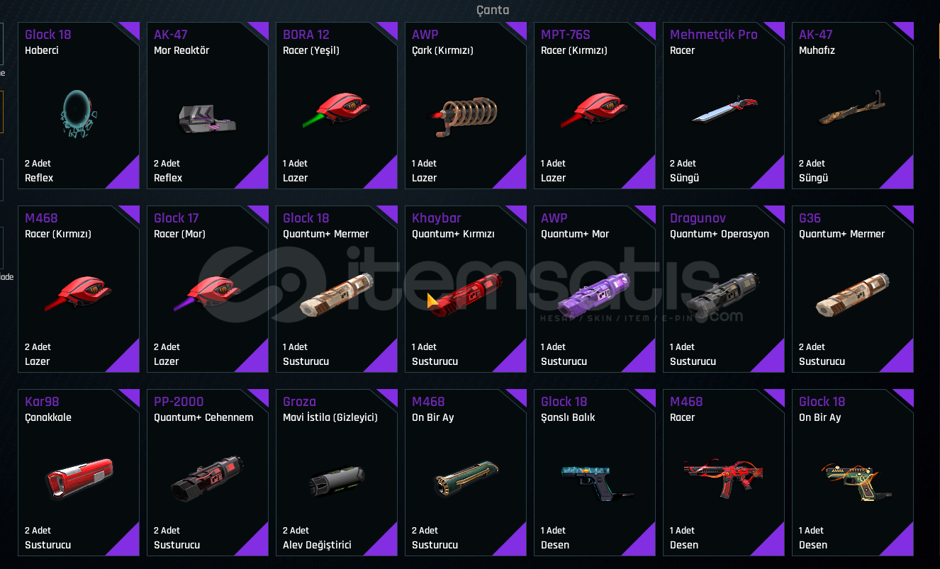 hesaptadeagle,ustura,trx,pp-2000,kelebek +6 ve sınırsızdırmpt-76,aug A3 +5 tirkard98 ve awp +4 türL11 snip+6 dırtr sunucusudur mail değişir numara değişirhesapta 10 dan fazla değerli skin ve quantum vardırbu hesabı satmamın nedeni elime biraz para geçmesi lazım o yüzden bi tık ucuza satıyorum pazarlık payı vardır.