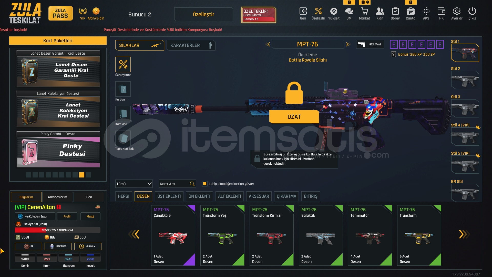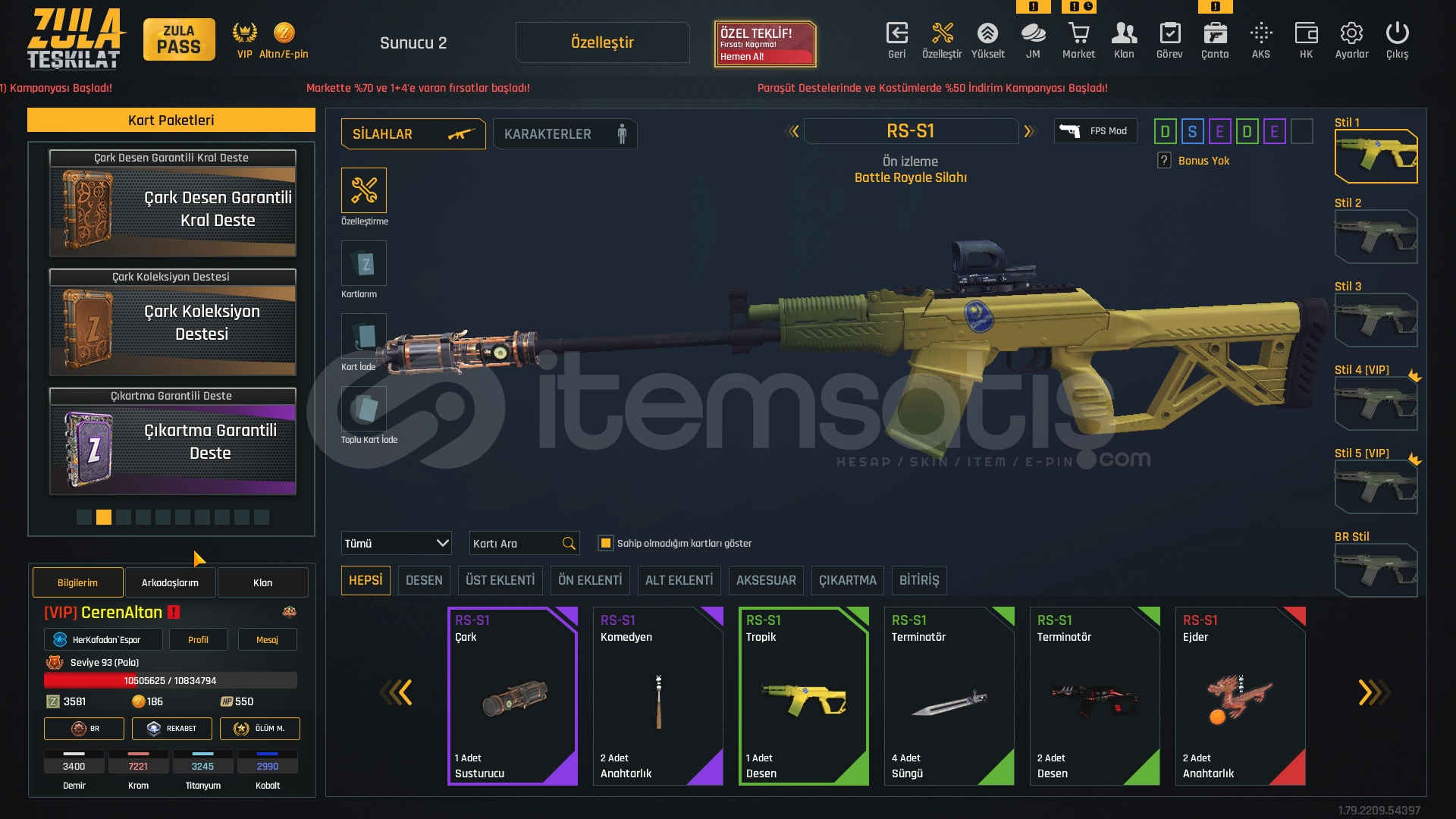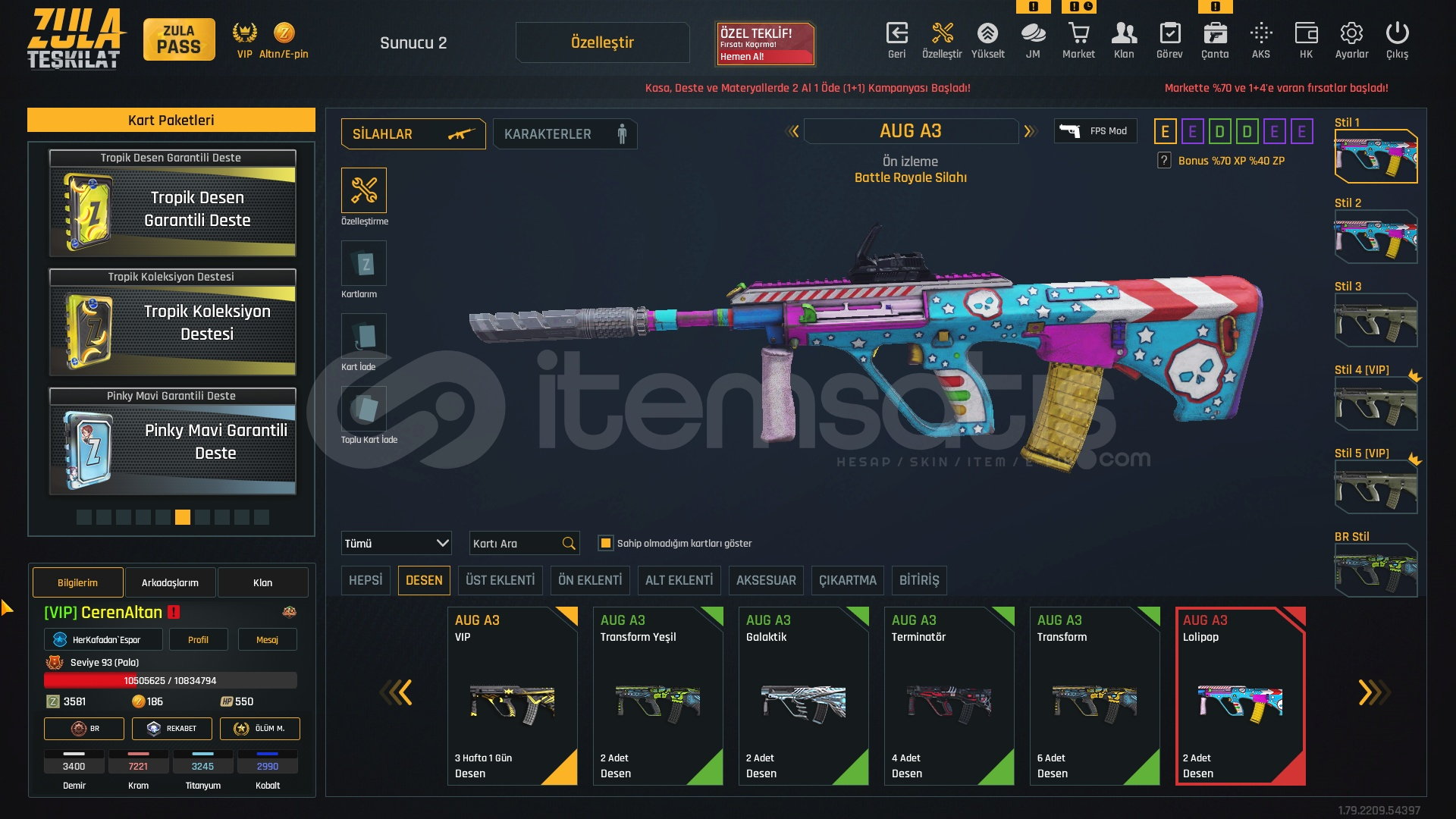 SEVİYE 93 BÜTÇE DOSTU HESAP☀️2150₺☀️🍃ZULA PASS AÇIKTIR 93 SEVİYE🍃🍃1 ADET TAKMA İSİM DEĞİŞTİRİCİ🍃🍃3 HAFTALIK VİP MEVCUT🍃🍃M468 ÇIKARTMA DESEN🍃[SINIRSIZ] +6 M93R[SINIRSIZ] +6 KARAMBİT[SINIRSIZ] +6 DESERT EAGLE[SINIRSIZ] +6 BORA12[SINIRSIZ] +6 P90[SINIRSIZ] +6 MEHMETCİK[SINIRSIZ] +6 XCRL[SINIRSIZ] EL PATRON[SINIRSIZ...