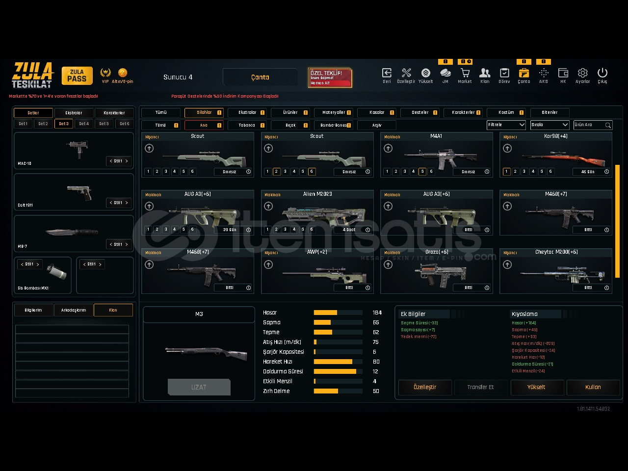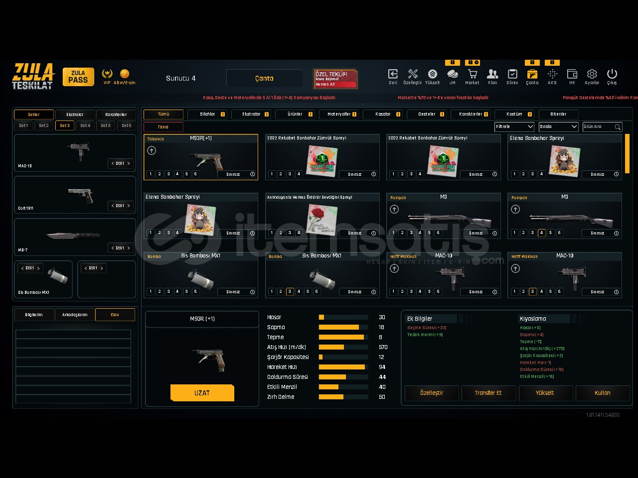 +1 M93R SINIRSIZDIR KENDİNİZE ALABİLİRSİNİZ VEYA HESABI KULLANABİLİRSİNİZHESAPTA 5 ADET TAKMA AD VEBOL ÖZELLEŞTİRME VARDIR +6 VARDIR +7 USTURAHESAP LEVELİ 60TELEFON GMAİL KAPALIDIR ! ULAŞIM YOK