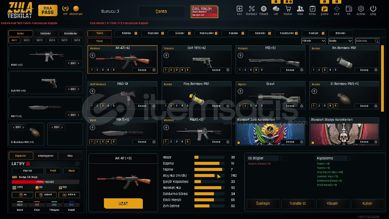 ⭐️SINIRSIZ AK47 Lİ TEL MAİL DEĞİŞEN HESAP⭐️LVL- 28⭐️SINIRSIZ -  AK47 +6⭐️+3 M468⭐️+1 KELEBEK⭐️MAİLİ DEĞİŞİYOR⭐️TELEFON NUMARASI DEĞİŞİYOR