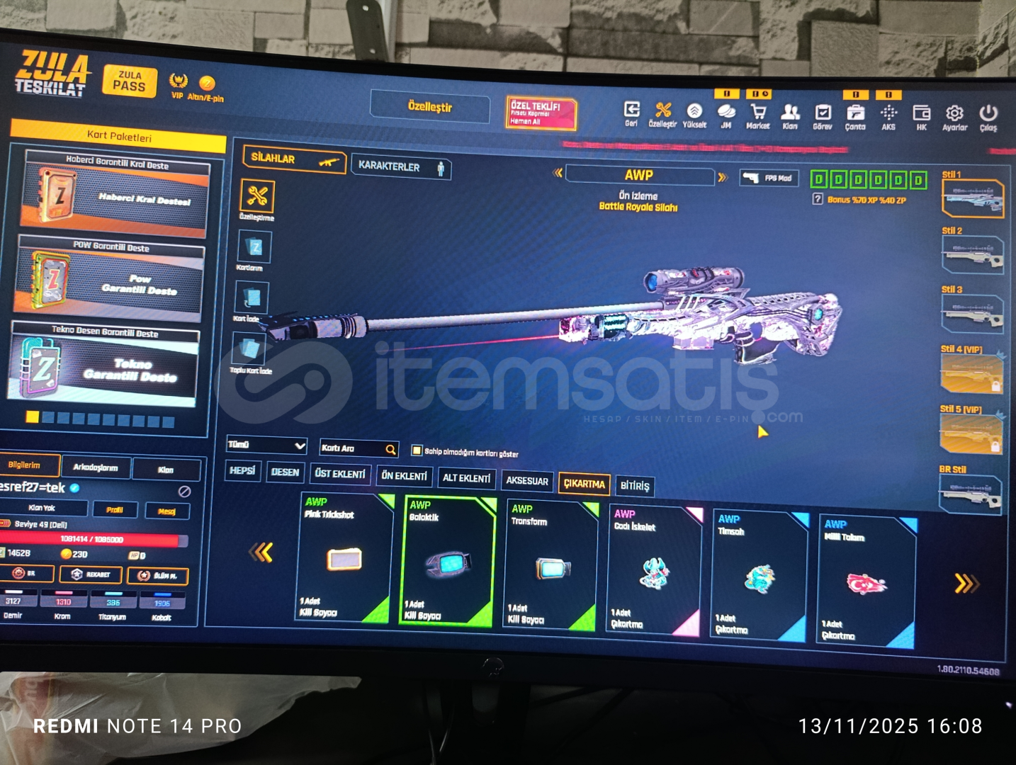 🌟Ful destansı +4 sınırsız Awp🌟Sınırsız ikili bomba +6🌟iyi derecede +lı silahlar🌟49 seviye hesap🌟Ufak pazarlık payı🌟iyi derecede silah desenleri🌟Awp Full destansı🌟DEV KAMPANYA📢📢🌟Hesap fotoğraflarını dm den atabilirim detaylı :)🌟Alıcısına şimdiden hayırlı olsun:)