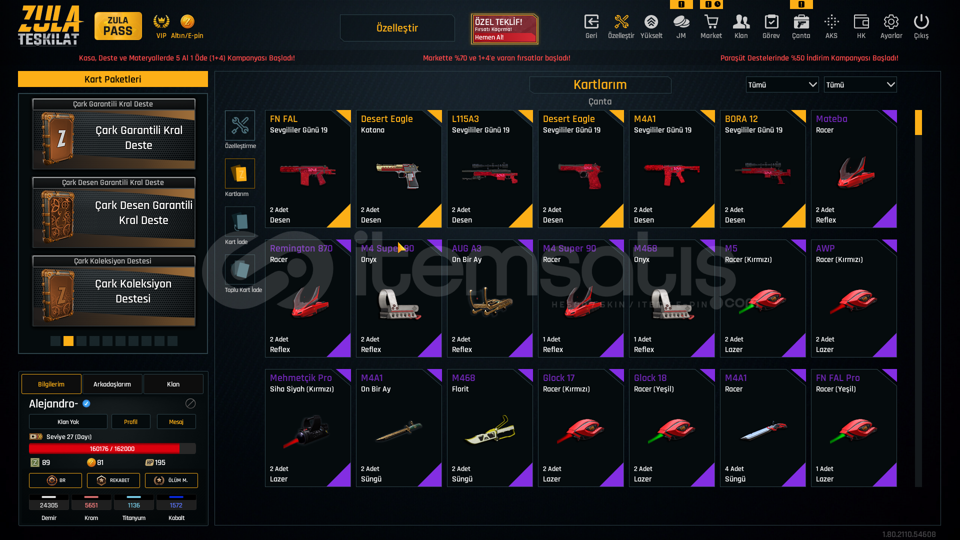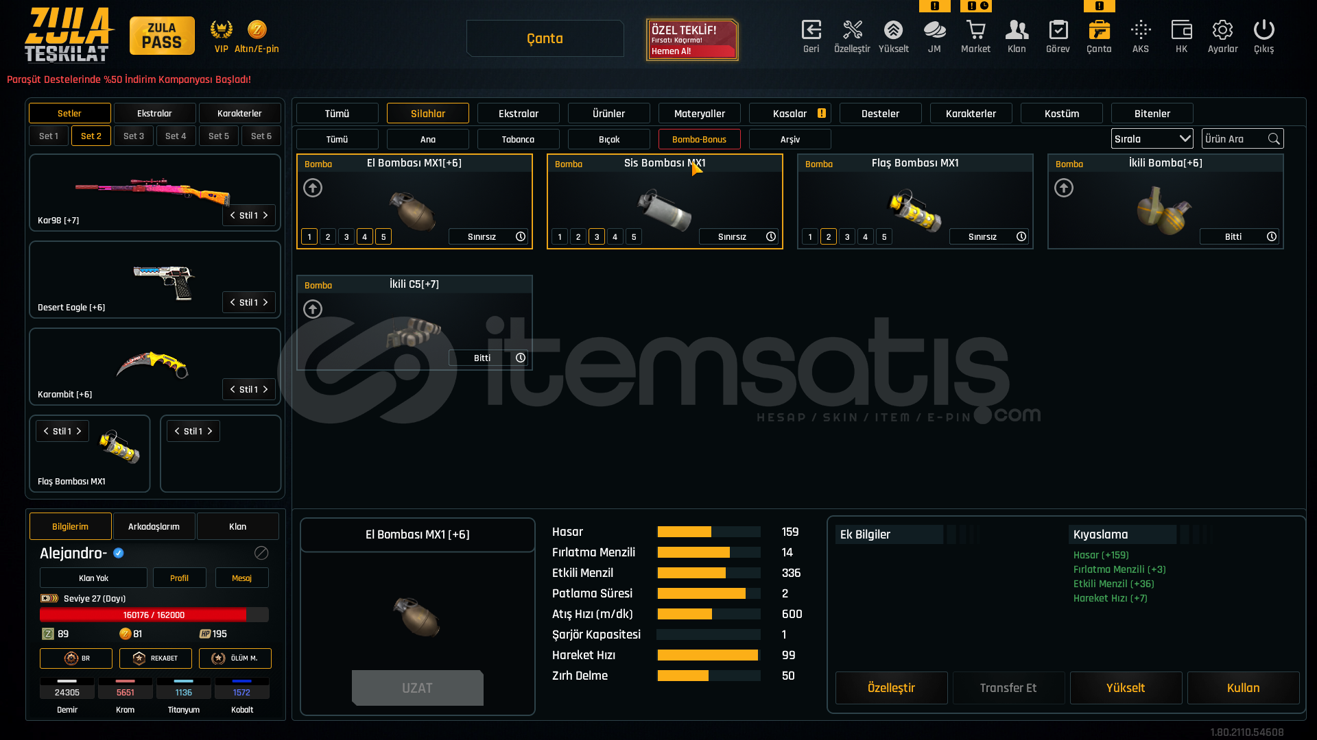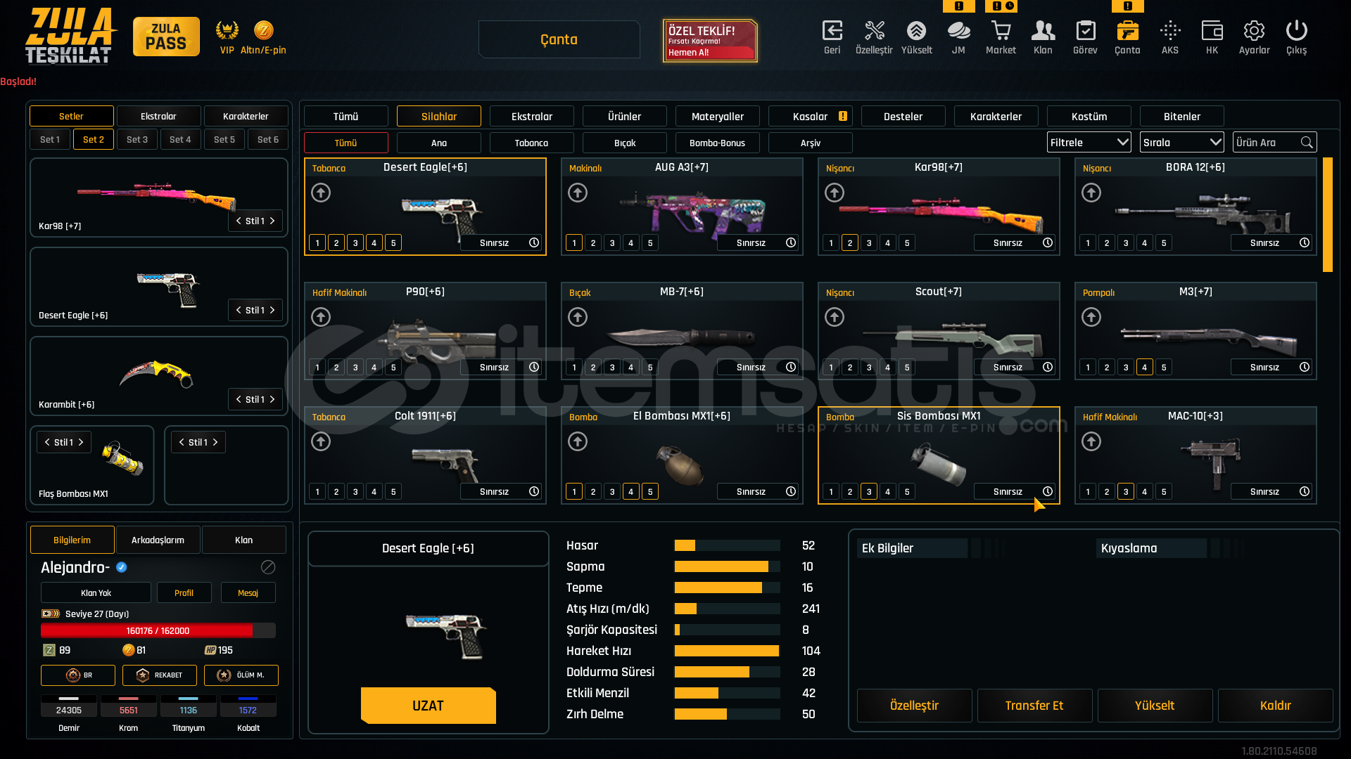 GLOCK 18,M4SUPER90,İKİLİ BOMBA,KARAMBİT,M93R HEPSİ +7 DİR