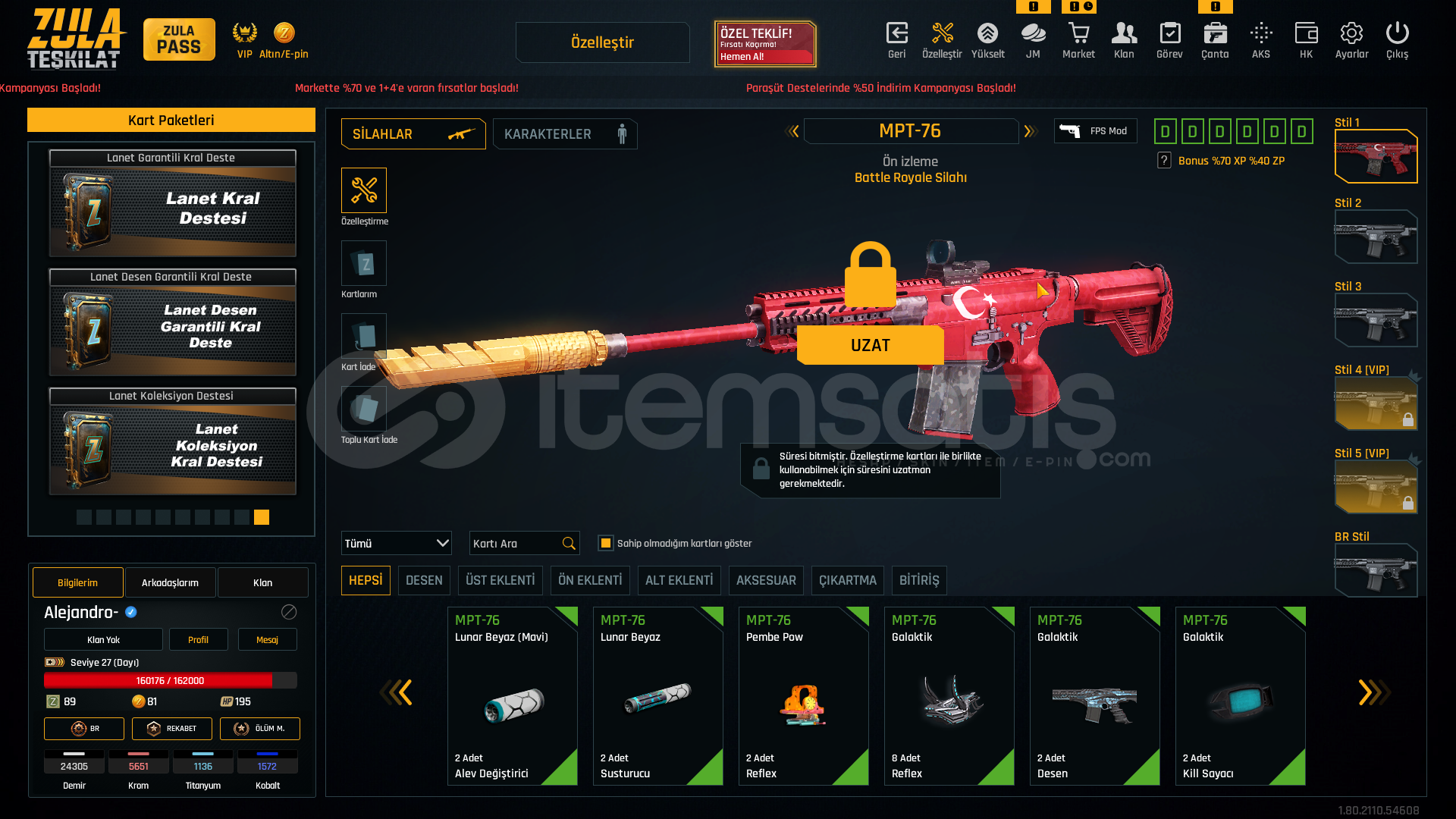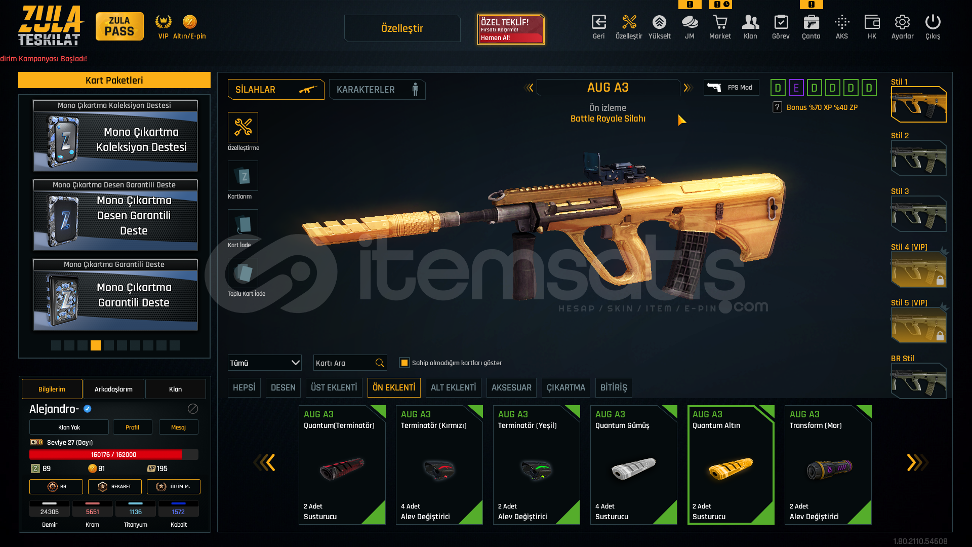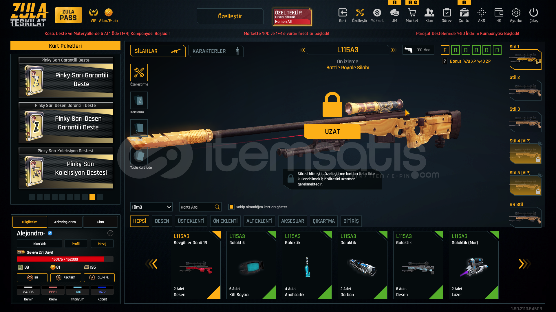 ! AÇIKLAMAYI OKUMADAN ALMAYINIZ !HESAP 27 LEVEL HAKSIZ BAN YEMİŞDİR!!!!HESAPTAKİ SINIRSIZLAR :AUG +7 SINIRSIZ (DOLU QUANTUM MEKATRONİK ÜST EKLENTİ)KAR 98 +7 SINIRSIZ (DOLU QUATUM KORSAN ÜST EKLENTİ)DEAGLE +6 SINIRSIZ (EŞSİZ KATANA DESEN)P90 +6 SINIRSIZ (QUANTUM MEVCUTTUR)HIZLI CANLANMA YÜZDE 50SPREYLER YAZILMAMIŞTIR TOPLAM 13 ADET SINIRSIZ SPREY VARDIRHESAPTAKİ + LARMPT-76 ,KELEBEK,USTURA HEPSİ +7 DİR L115A3GL...