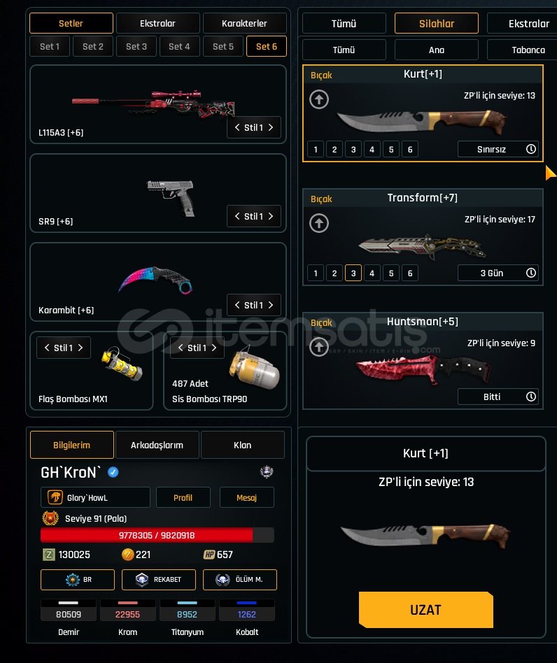 Transfer ücreti tarafımca karşılanacaktır. Sınırsız Kurt Bıçağını oyun içind...