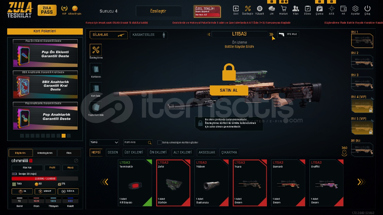 ⭐️SINIRSIZ MEHMETÇİKLİ TEL MAİL DEĞİŞEN HESAP⭐️LVL- 30⭐️SINIRSIZ- MEHMETÇİK +5⭐️+5 SOCUT⭐️+5 COLT1911⭐️+2 HKG3⭐️+2 AKSU⭐️+2 CHEYTAC M200⭐️+2 P90⭐️+1 MPT76⭐️+1 M93R⭐️+1 GLOCK17⭐️+1 M902⭐️MAİLİ...