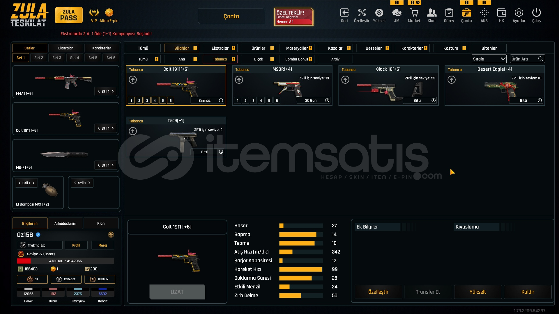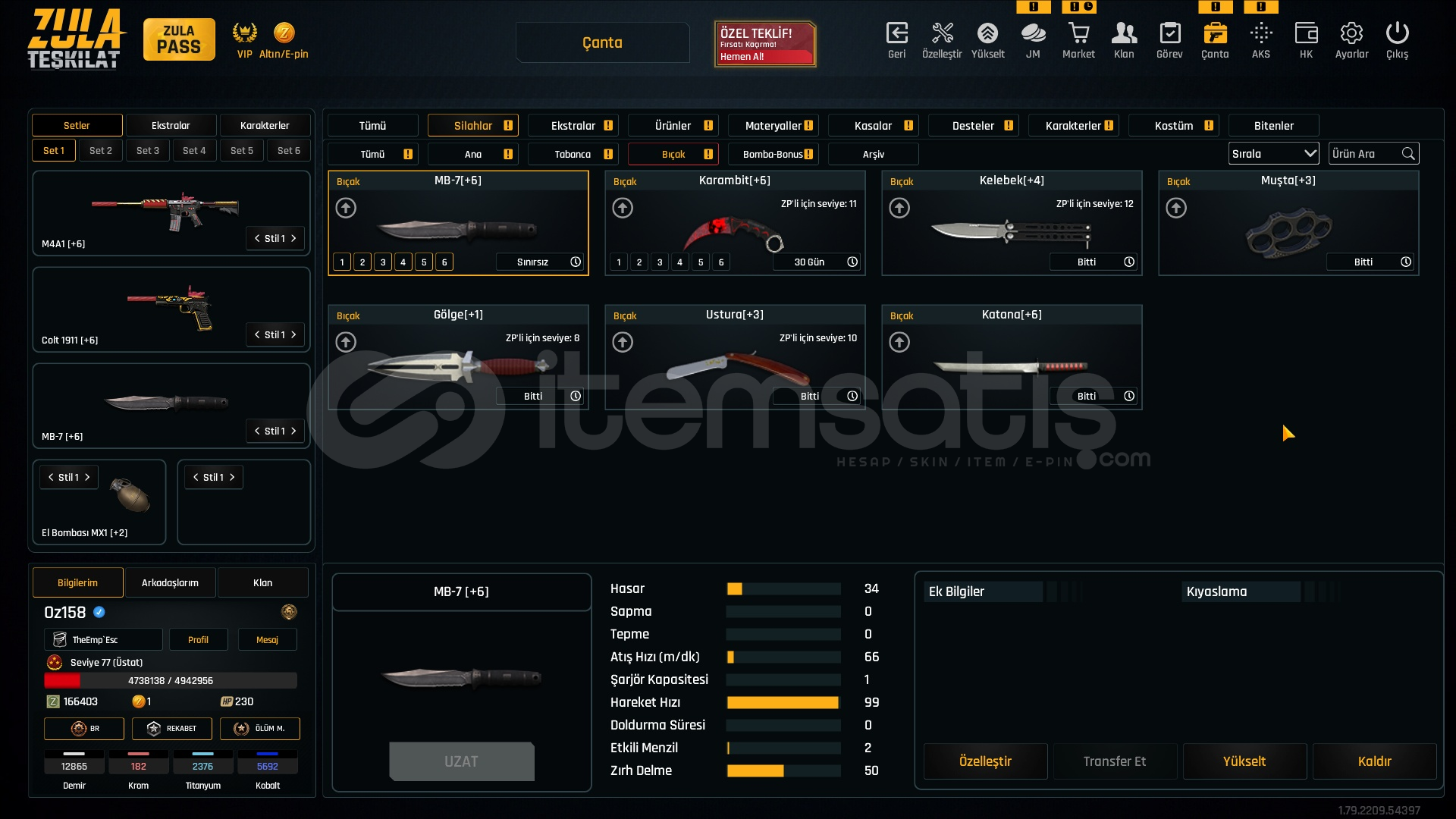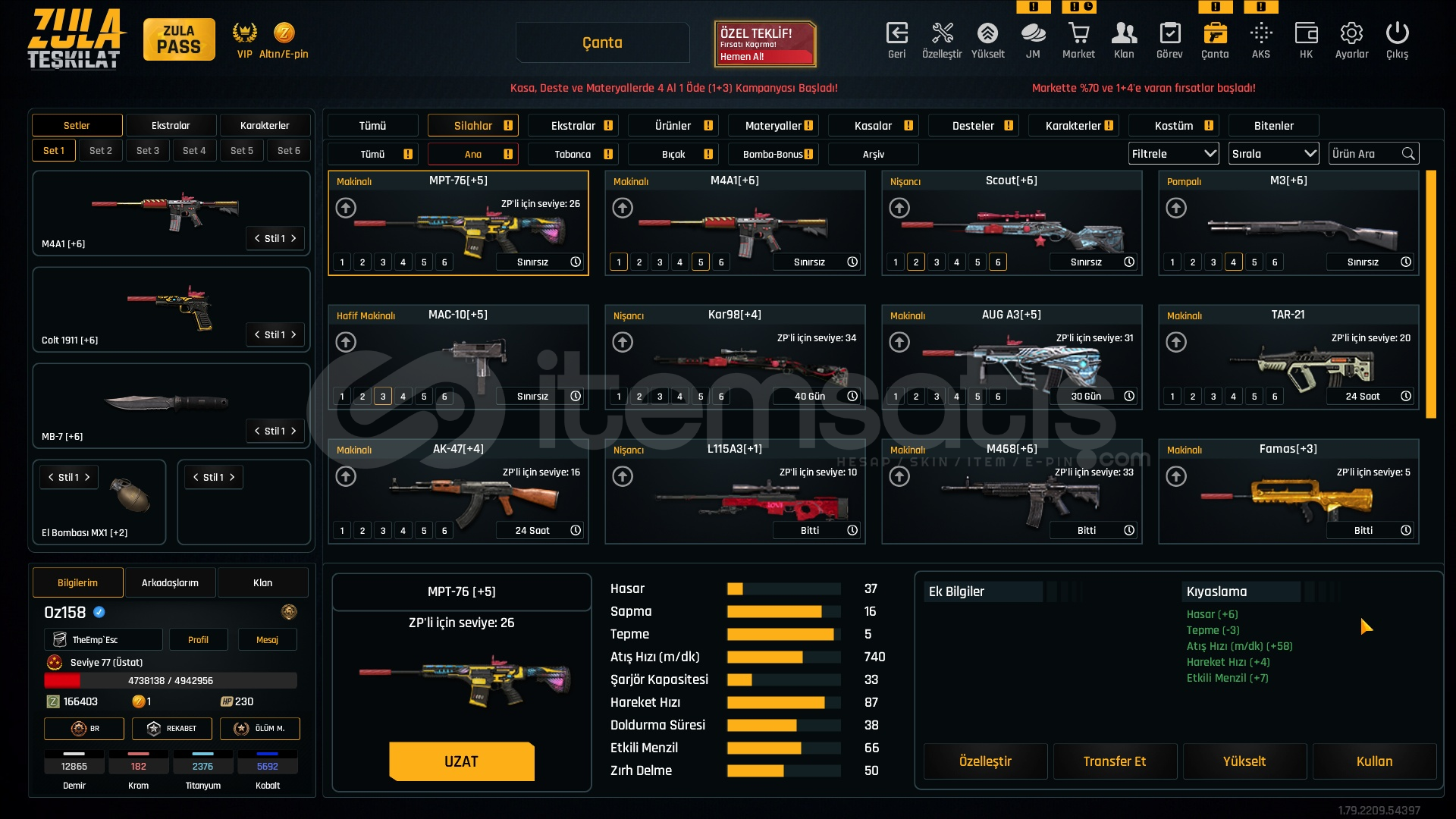 77 LEVEL 2017 KURULUŞLU SINIRSIZ MPT-76 VAR AL DİREKT SAT İSTİYORSAN---------------------------------------------------------------10 EŞSİZ 476 DESTANSI (110 QUANTUM)SHAHRAM SHAMS (SINIRSIZ)+5 MPT-76 (SINIRSIZ)+6 M468+5 AUG+6 KRİSS VECTOR+6 GLOCK 18+4 DESERT EAGLE+4 M93R+4 KAR-98+3 AWP+4 AK-47+6 KARAMBİT+6 KATANA+4 KELEBEK+5 İKİLİ BOMBA---------------------------------------------------------------+6 M4A1+6 SCOUT+6 M3+5 MAC-10+6 COLT 1911+6 ...