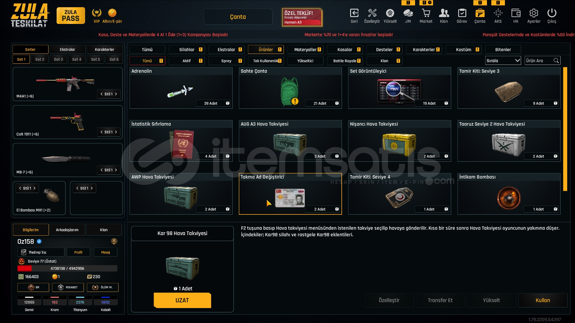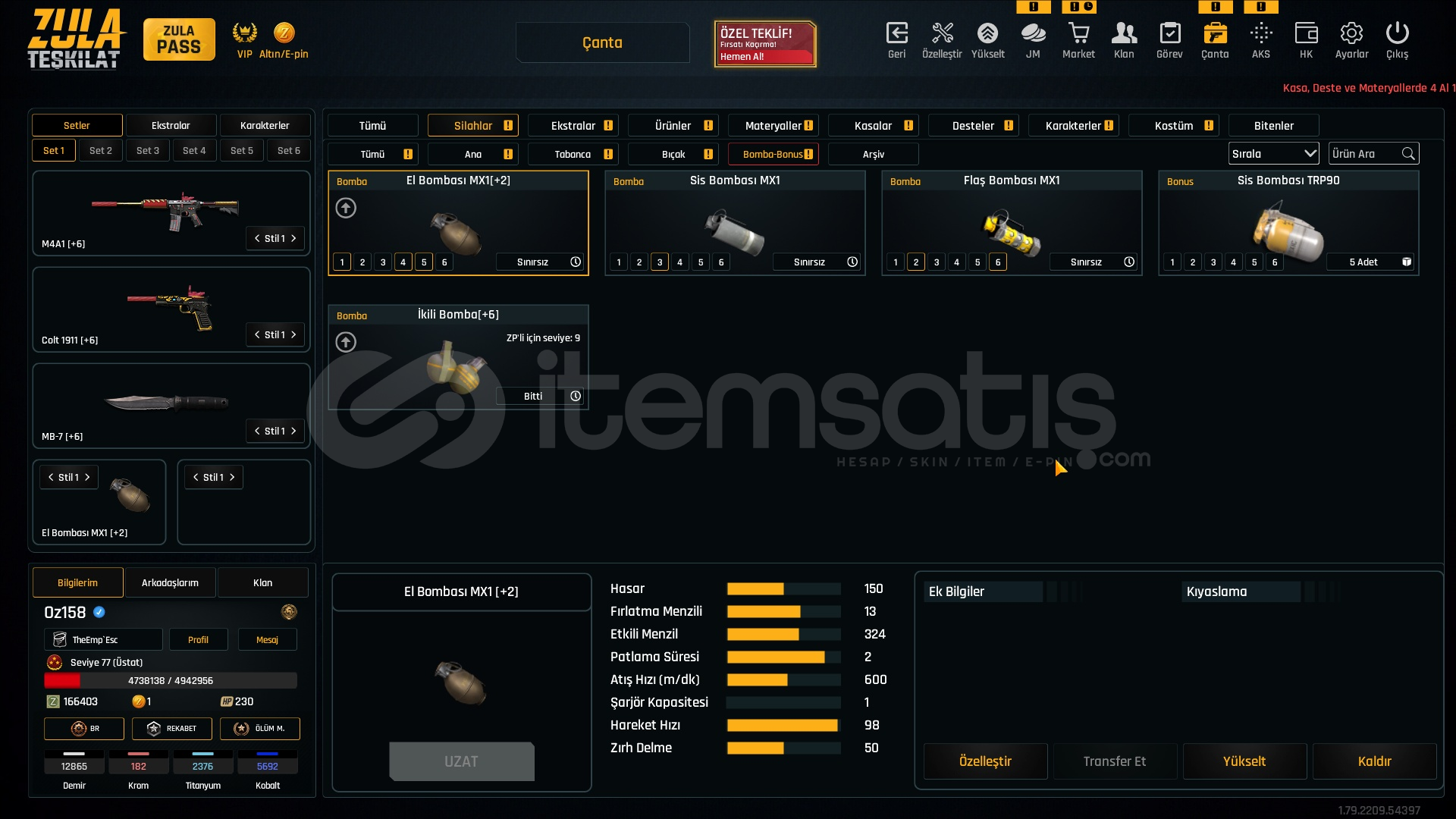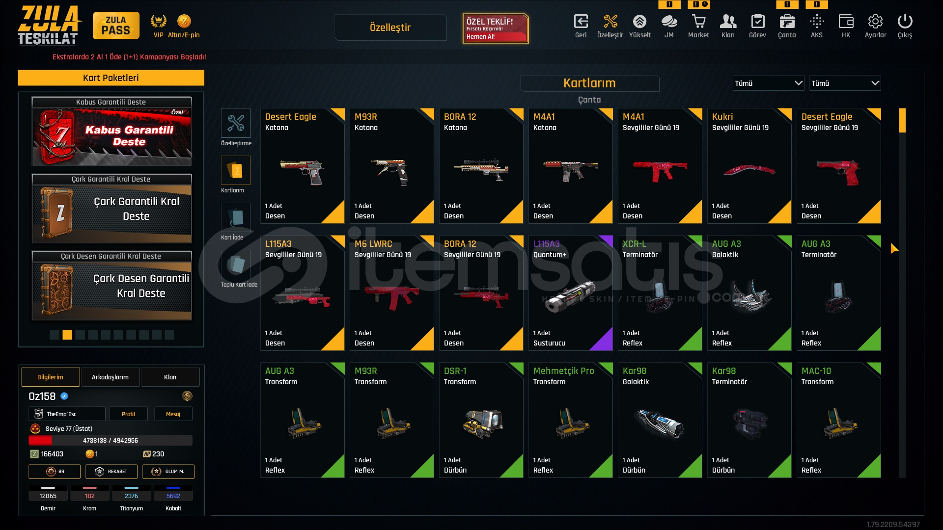 77 LEVEL 2017 KURULUŞLU SINIRSIZ MPT-76 VAR AL DİREKT SAT İSTİYORSAN---------------------------------------------------------------10 EŞSİZ 476 DESTANSI (110 QUANTUM)SHAHRAM SHAMS (SINIRSIZ)+5 MPT-76 (SINIRSIZ)+6 M468+5 AUG+6 KRİSS VECTOR+6 GLOCK 18+4 DESERT EAGLE+4 M93R+4 KAR-98+3 AWP+4 AK-47+6 KARAMBİT+6 KATANA+4 KELEBEK+5 İKİLİ BOMBA---------------------------------------------------------------+6 M4A1+6 SCOUT+6 M3+5 MAC-10+6 COLT 1911+6 ...