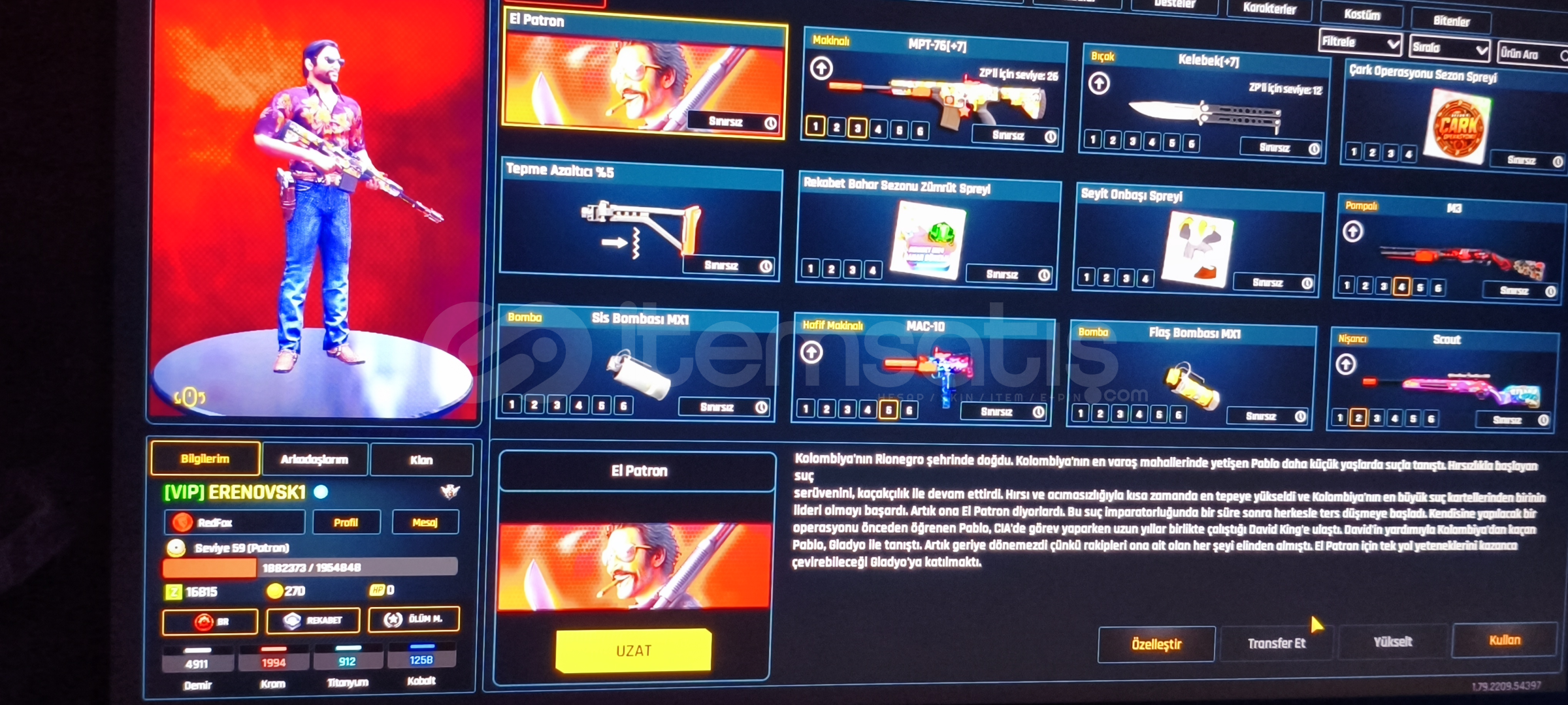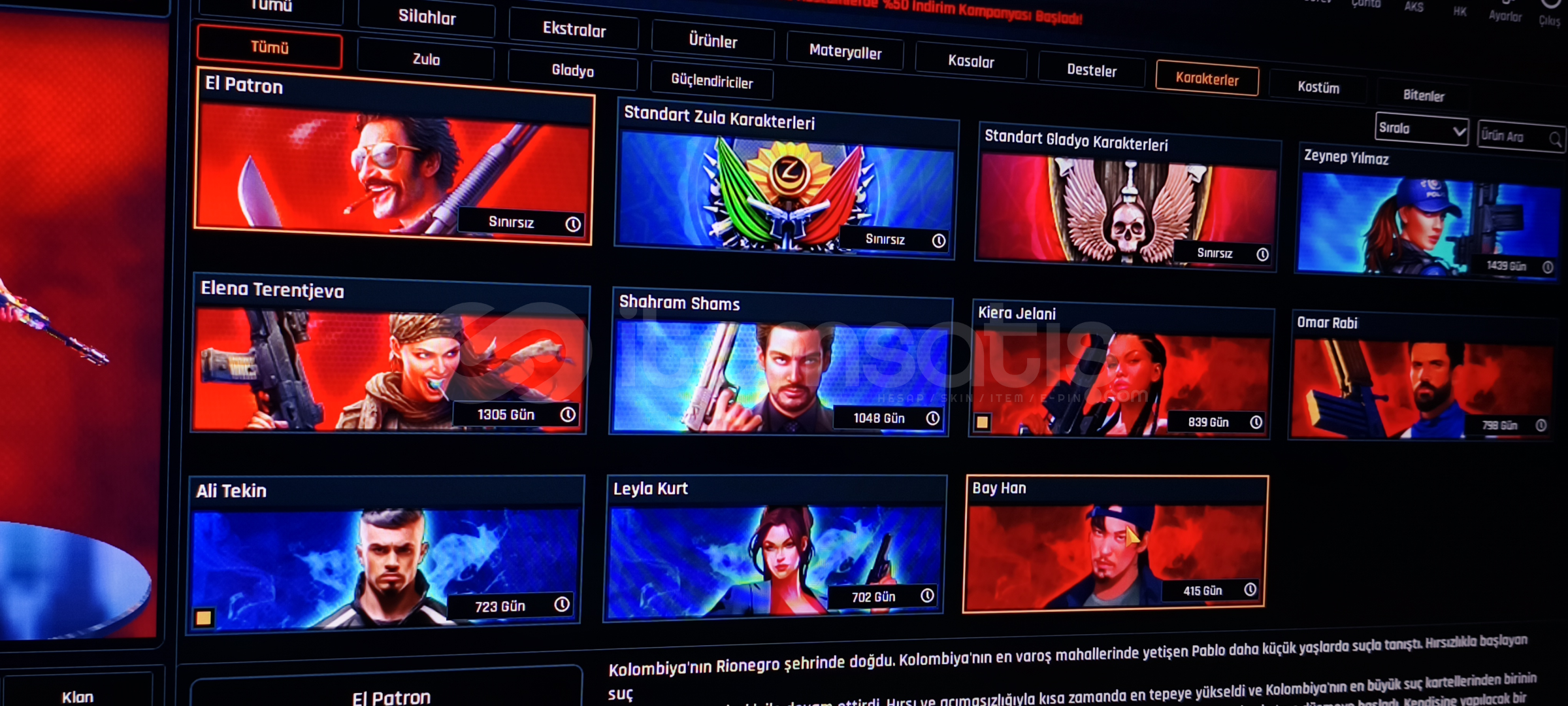 Karakterler 2 ila 4 yıl arası süreleri vardır zula pass açıktır vıp 3 haftası vardır sınırsız mpt +7 kelebek+7 tepme azaltıcı ve el patron süreliler ustura +7 m93r+6 ikili bomba +5 l115a3 +7 katana +6 hesap doludur mail değişir tel değişir indirim yapılır