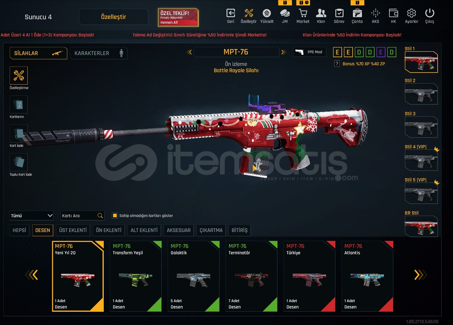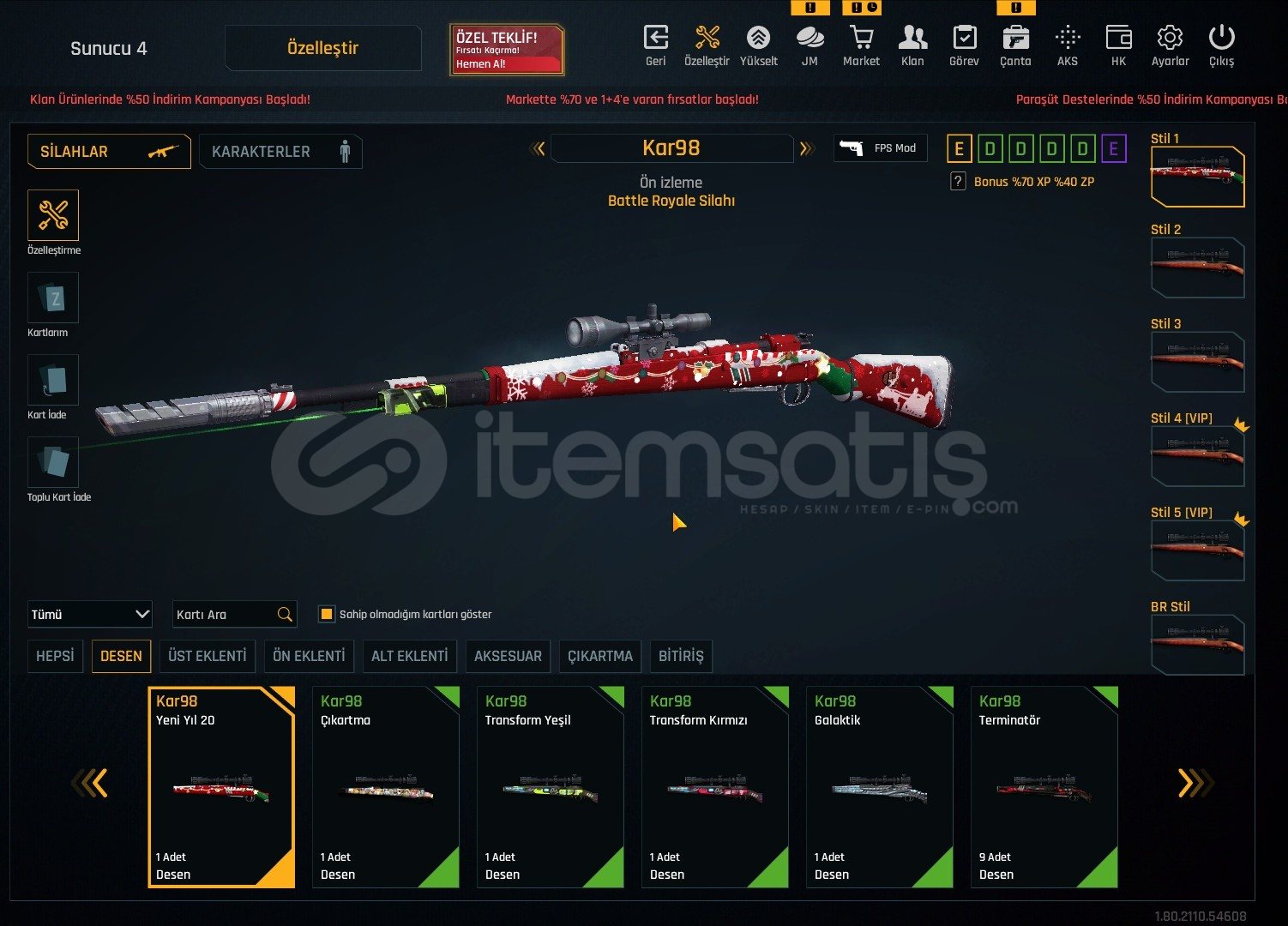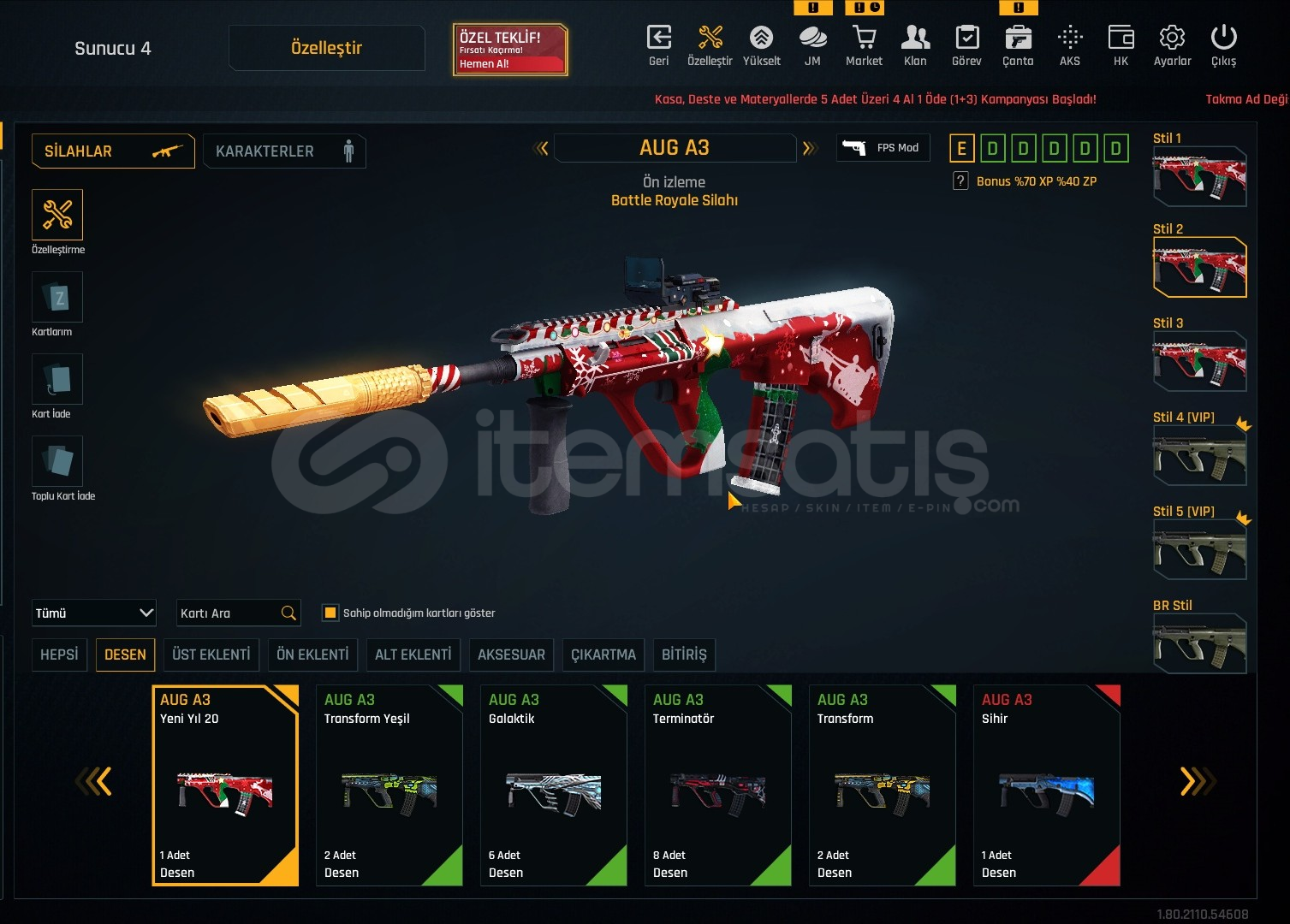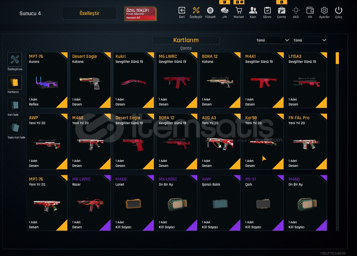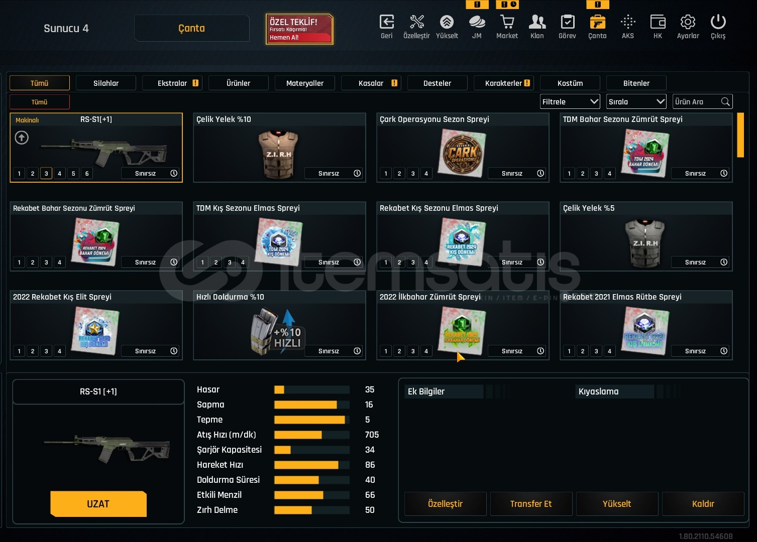 50k harcandı Zula pass aktif Sınırsız +1 RS-S1 +7 aug +6 m93r +6 glock 18 +6 ikili bomba +6 karambit +4 mpt +4 m468