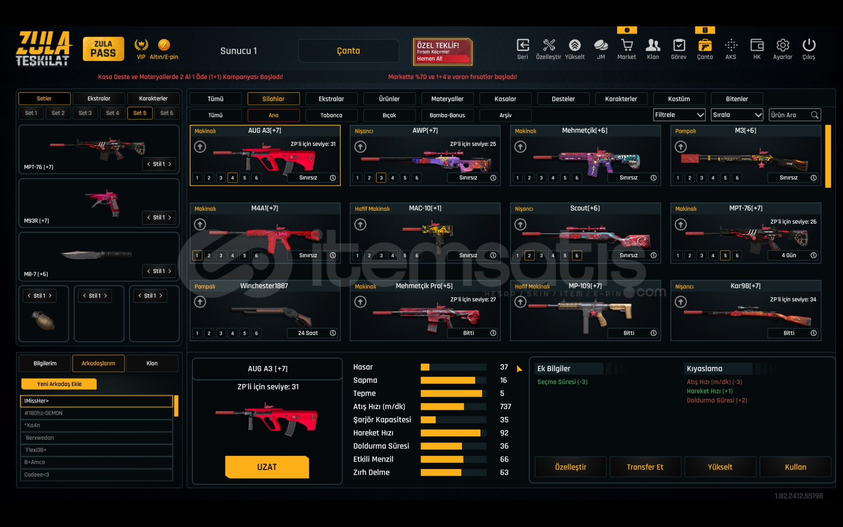 P-5 SEVİYE FULL +7 Lİ ÖZELLEŞTİRME DELİSİ HESAPAUG A3 GLOCK 18 AWP SINIRSIZLI RSS1 QUANTUM+ LI MANYAK HESAP BU FİYATA BULUNMAZ