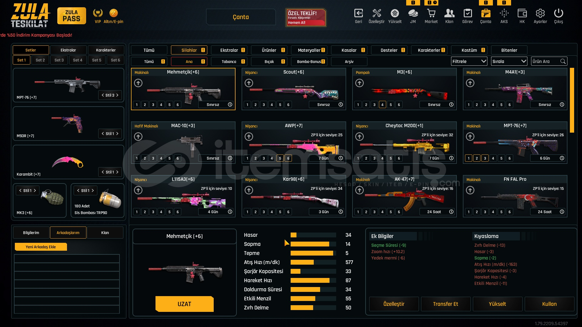 👑LEVEL: 87 👑👑RANK:ELİT 👑👑KD: 1.12 👑👑 MPT76 (QUANTUM+OPERASYON) 👑👑 KAR98 (SCOPE+) 👑👑 POP DESENLER 👑👑 TRİCKSHOT DESENLER 👑👑 ÖZELLEŞTİRMESİ BAŞLANGIC İÇİN İDEAL 👑[SINIRSIZ] KARAMBİT[SINIRSIZ] HANÇER[SINIRSIZ] MEHMETÇİK[SINIRSIZ] 19 ADET SPREY[ +7 ] AUGA3[ +7 ] MPT76[ +7 ] AWP[ +7 ] AK47[ +7 ] ...