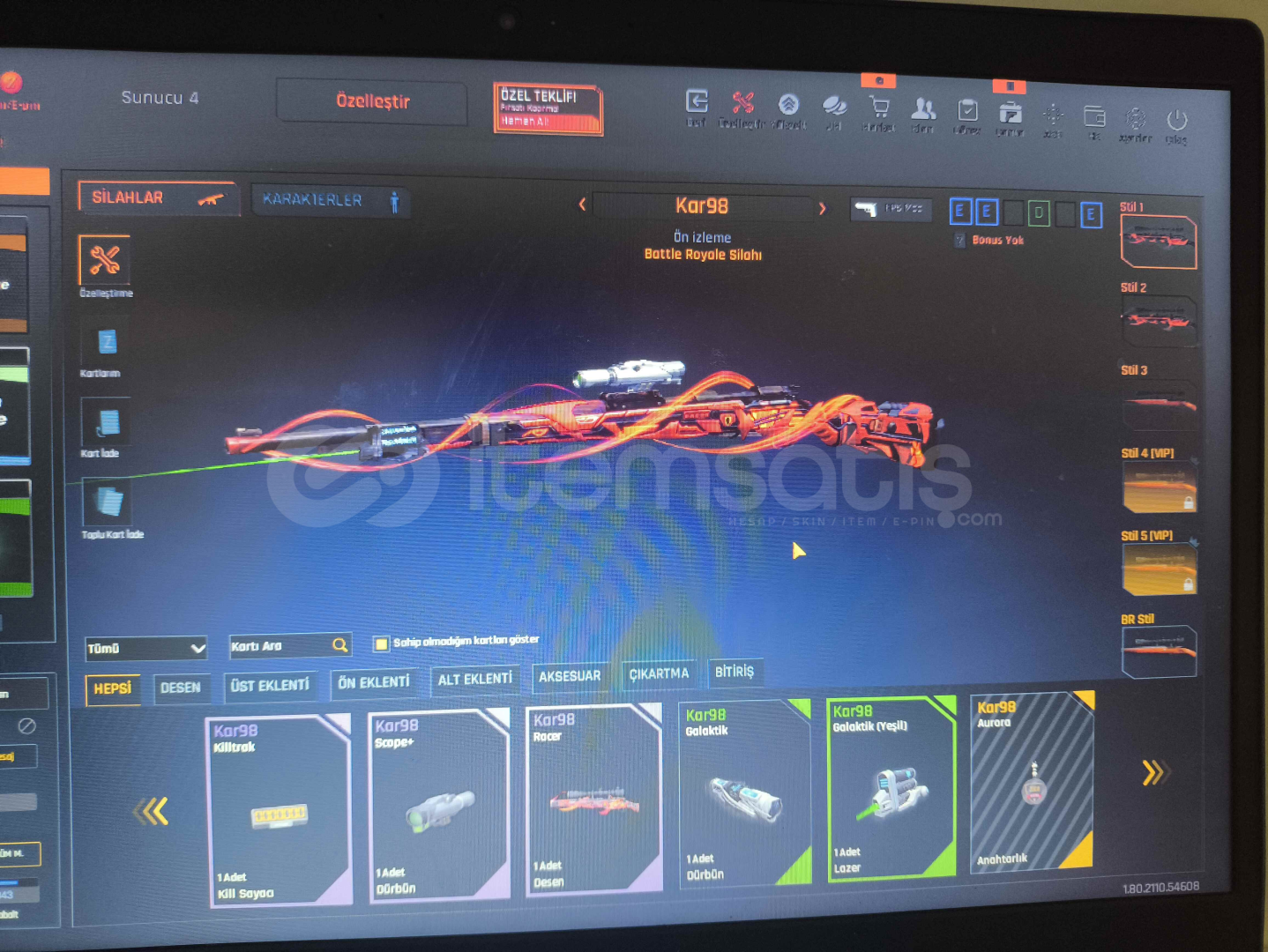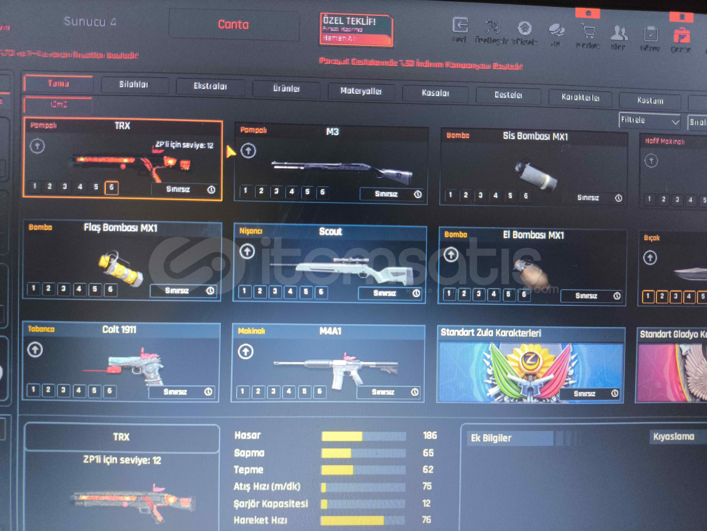 Hesapta sınırsız TRX VARDİRKAR98+5 GLOCK18+5KARAMBİT+4EPOSTA TEL BOSTAOZELESTİRMELİ HESAP