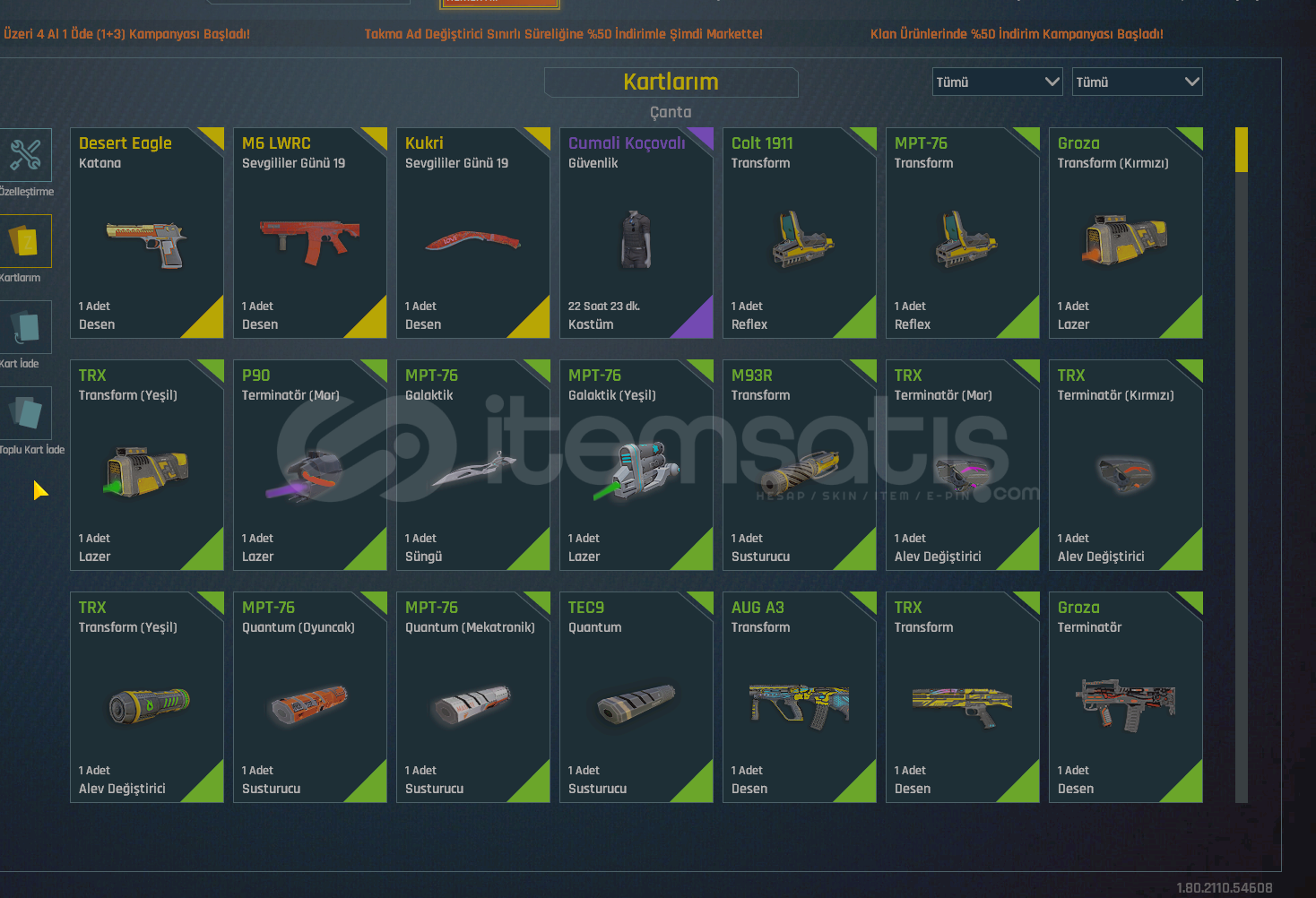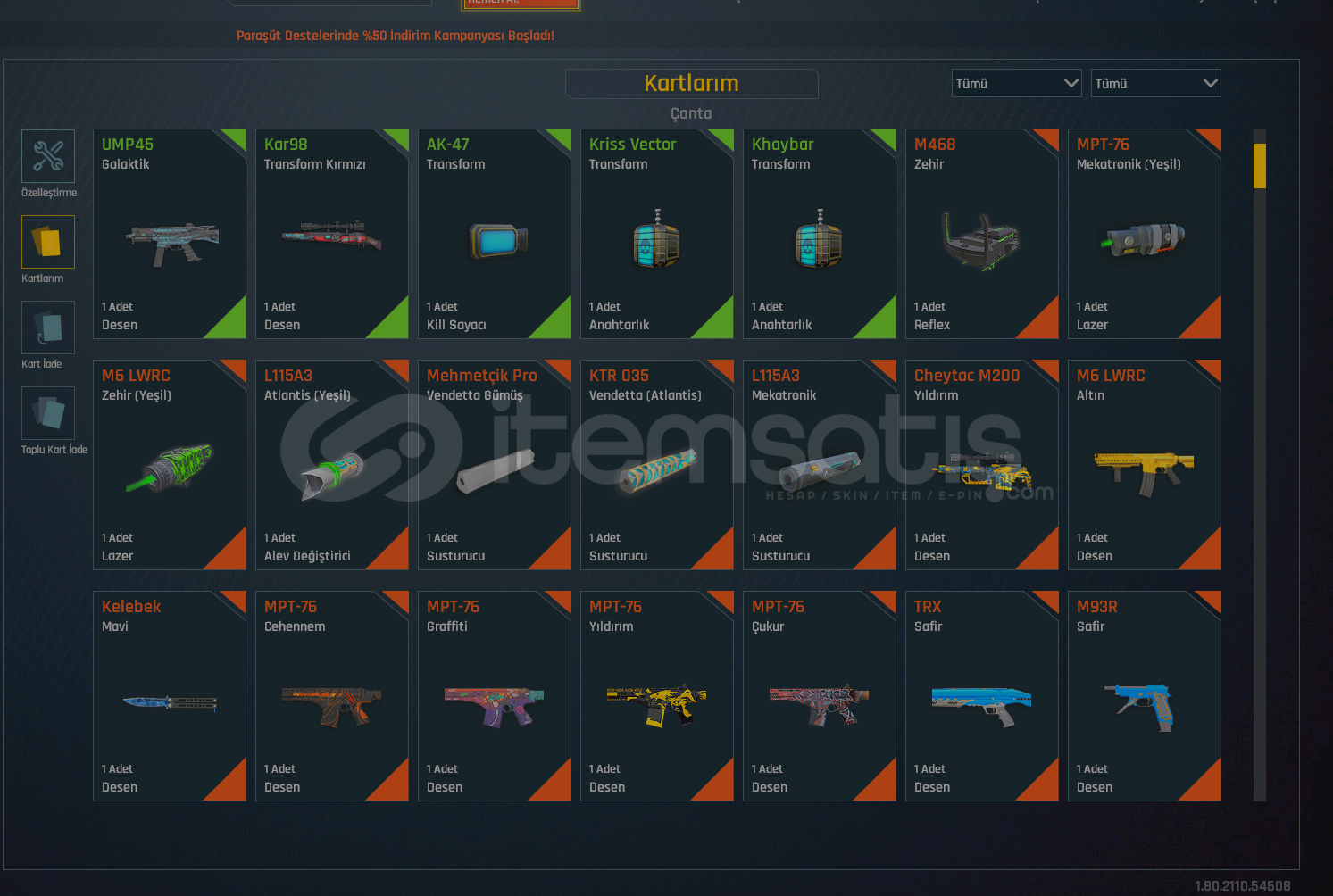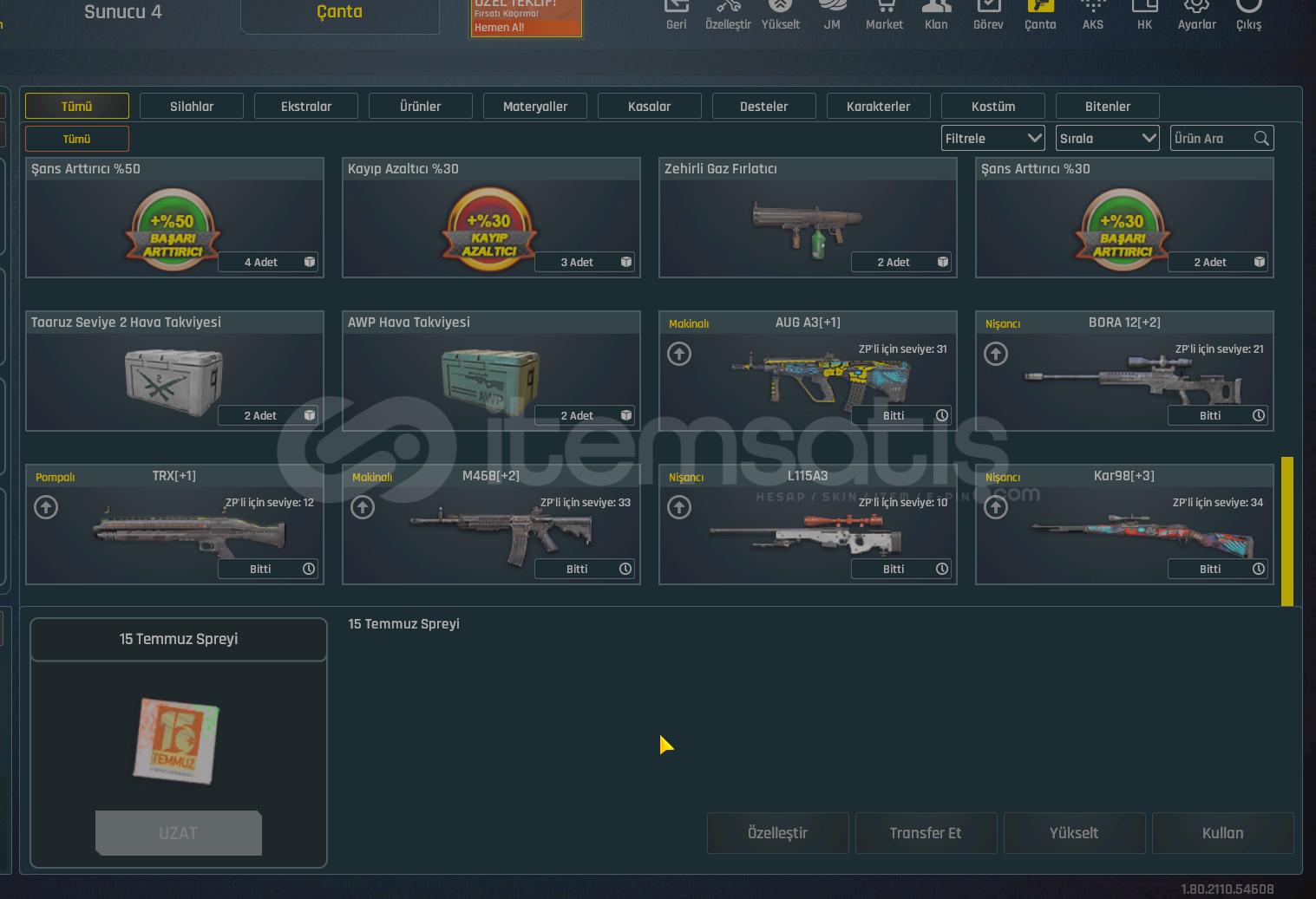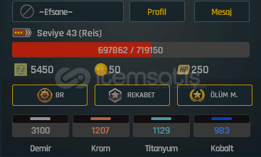 Hesap seviyesi:43rank:gümüşklan:2021 de kurulmuş hesabı alırken klanla beraber verilcektir.Hesap üstünüze alıncaktır.Hesapta Ban yoktur.~SINIRSIZLAR~Kelebek(+6)15 Temmuz spreyi2021 Yeni dönem sezonu spreyiHesapta 8 adet kayıp azaltıcı %50 vardır.Hesapta 3 adet kayıp azaltıcı %30 vardır.Hesapta 4 adet şans arttırıcı %50 vardır.Hesapta 2 adet şans arttırıc...