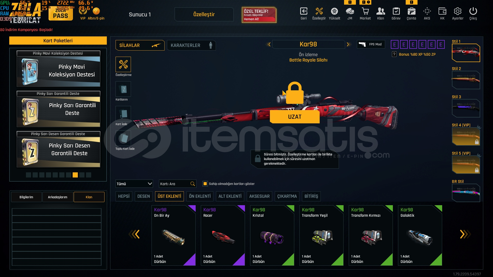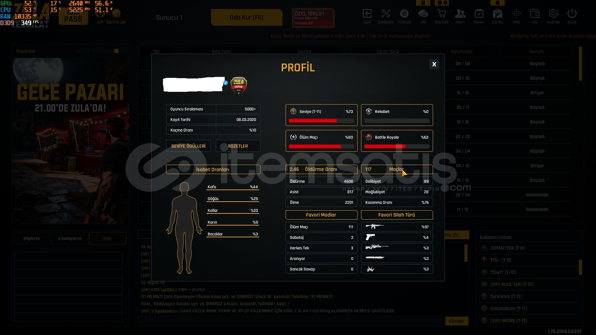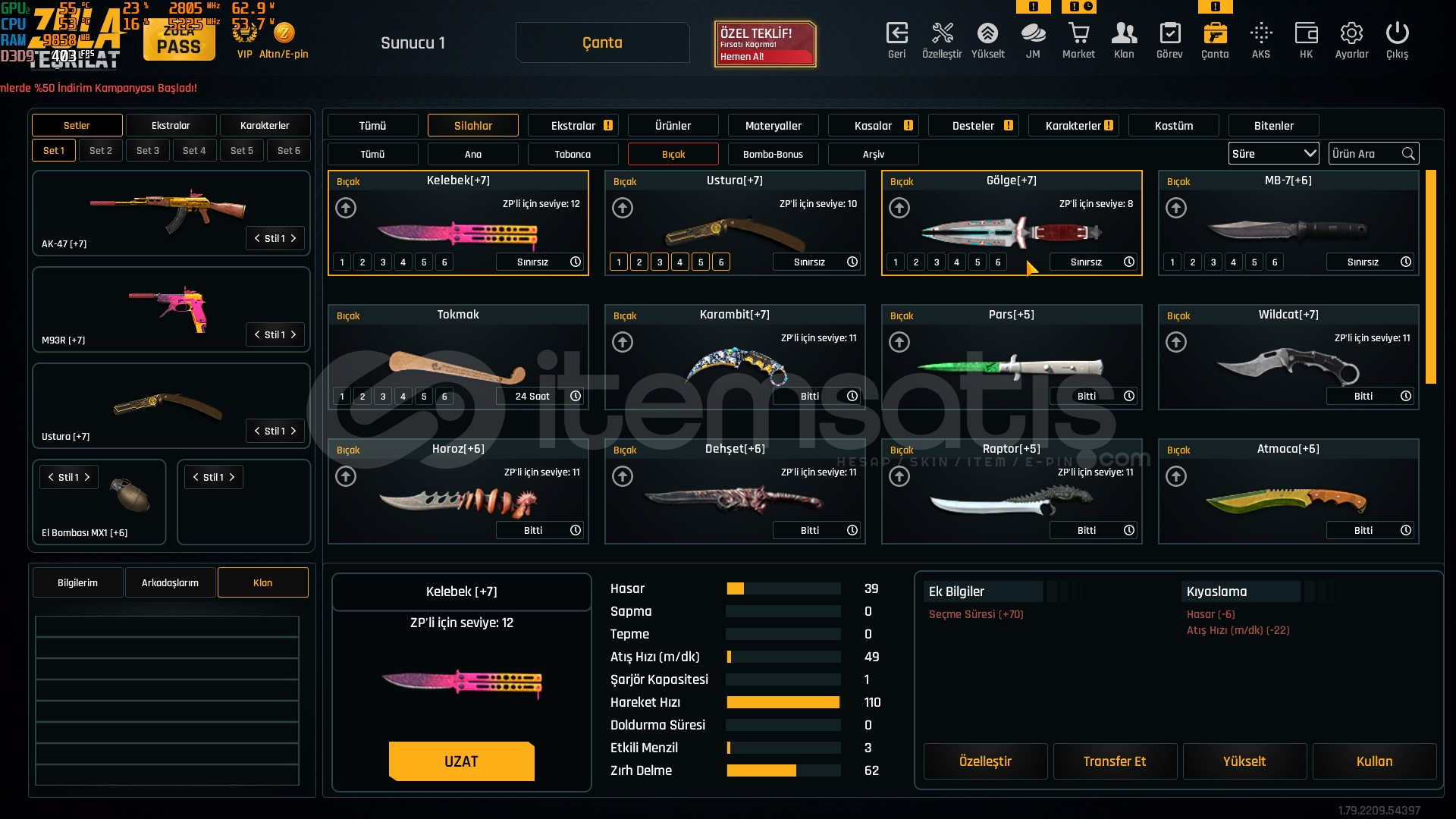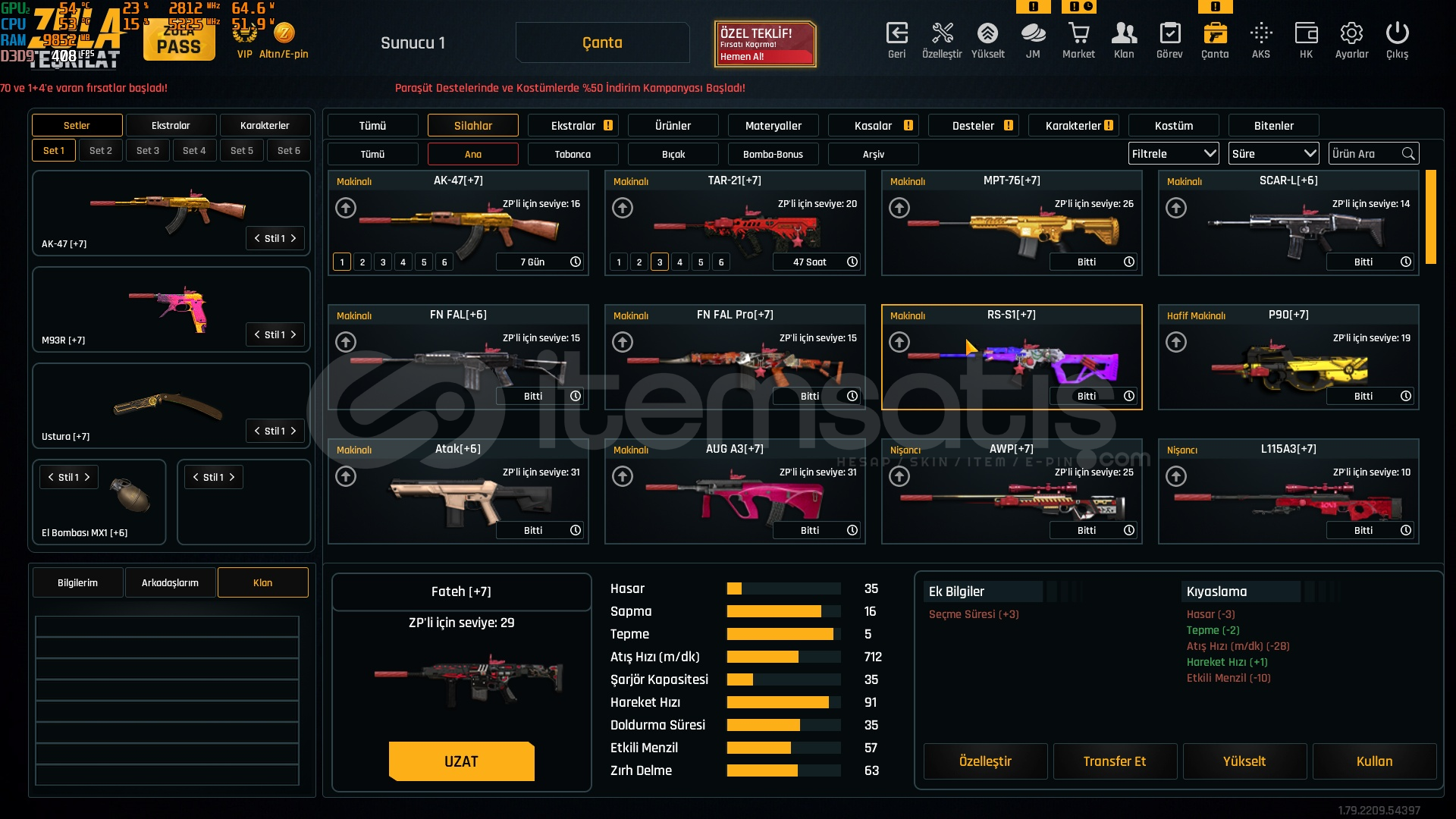 HESAPTA 40 KÜSÜR +7 MEVCUTTUR Bİ KAÇ TANESİNİ YAZMAMIŞ OLABİLİRİM FULL + FULL HESAP ÖMÜRLÜK RESİMLERİ İNCELEYİNİZ LÜTFEN.[+7] AUG-A3[+7] MPT-76[+7] KAR-98 [+7] M468[+7] AWP[+7] L115A3[+7] M93R SINIRSIZ[+7] GLOCK-18 SINIRSIZ[+7] KELEBEK SINIRSIZ[+7] USTURA SINIRSIZ[+7] KARAMBİT [+7] GÖLGE[+7] RS-S1[+7] İKİLİ BOMBA[+7] MSR 01[+7]GROZA[+7] AK-47[+7] FATEH SINIRSIZ[+7] Kriss...