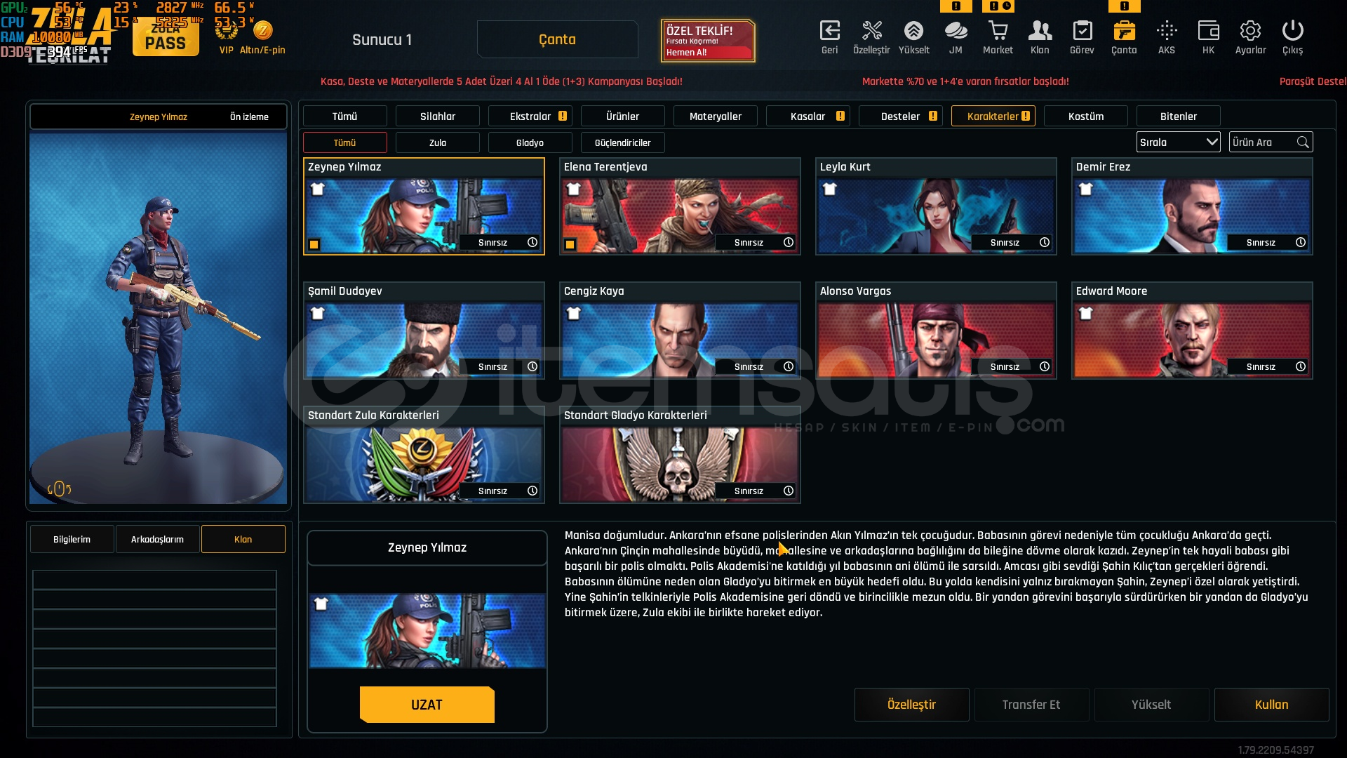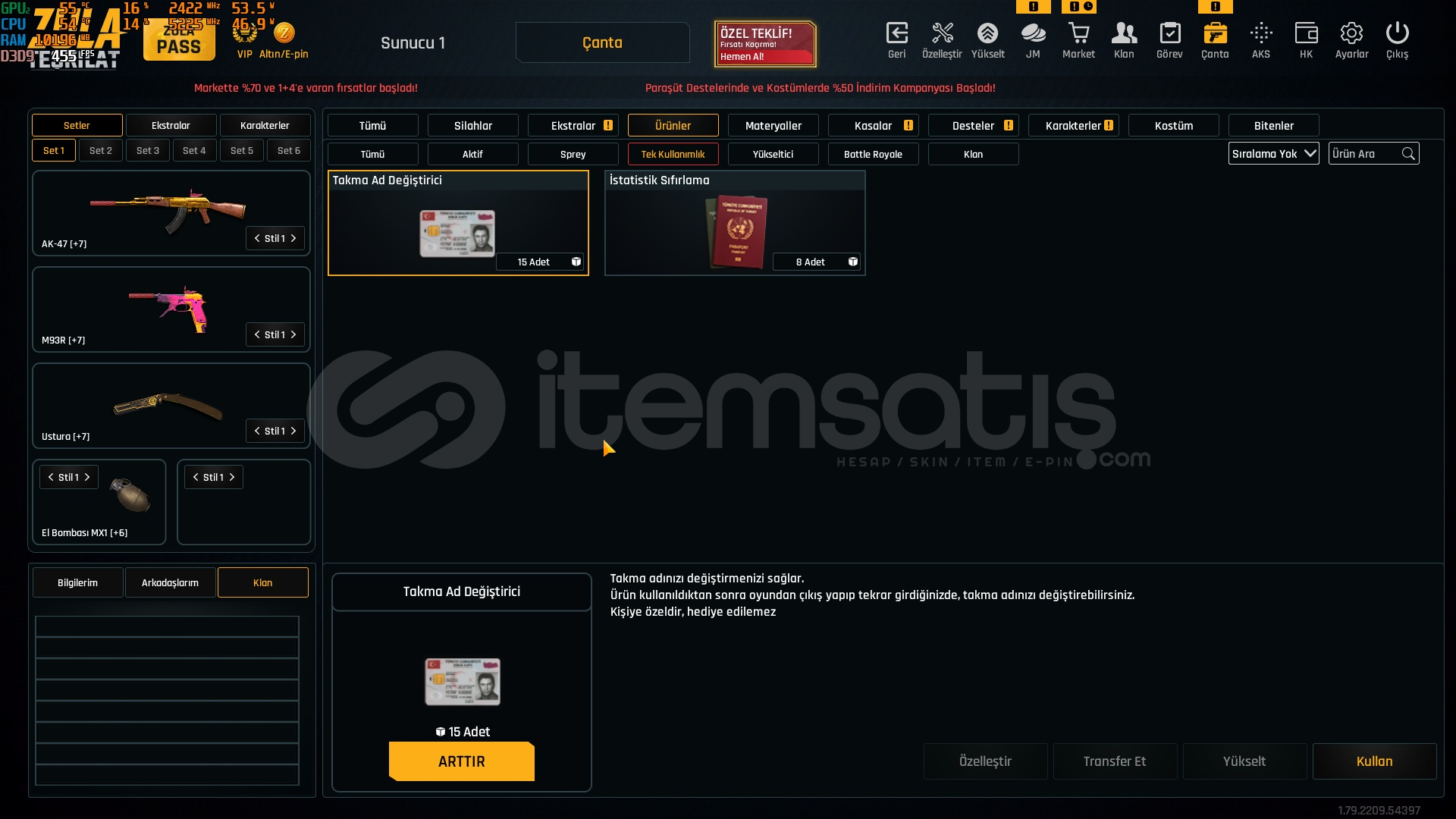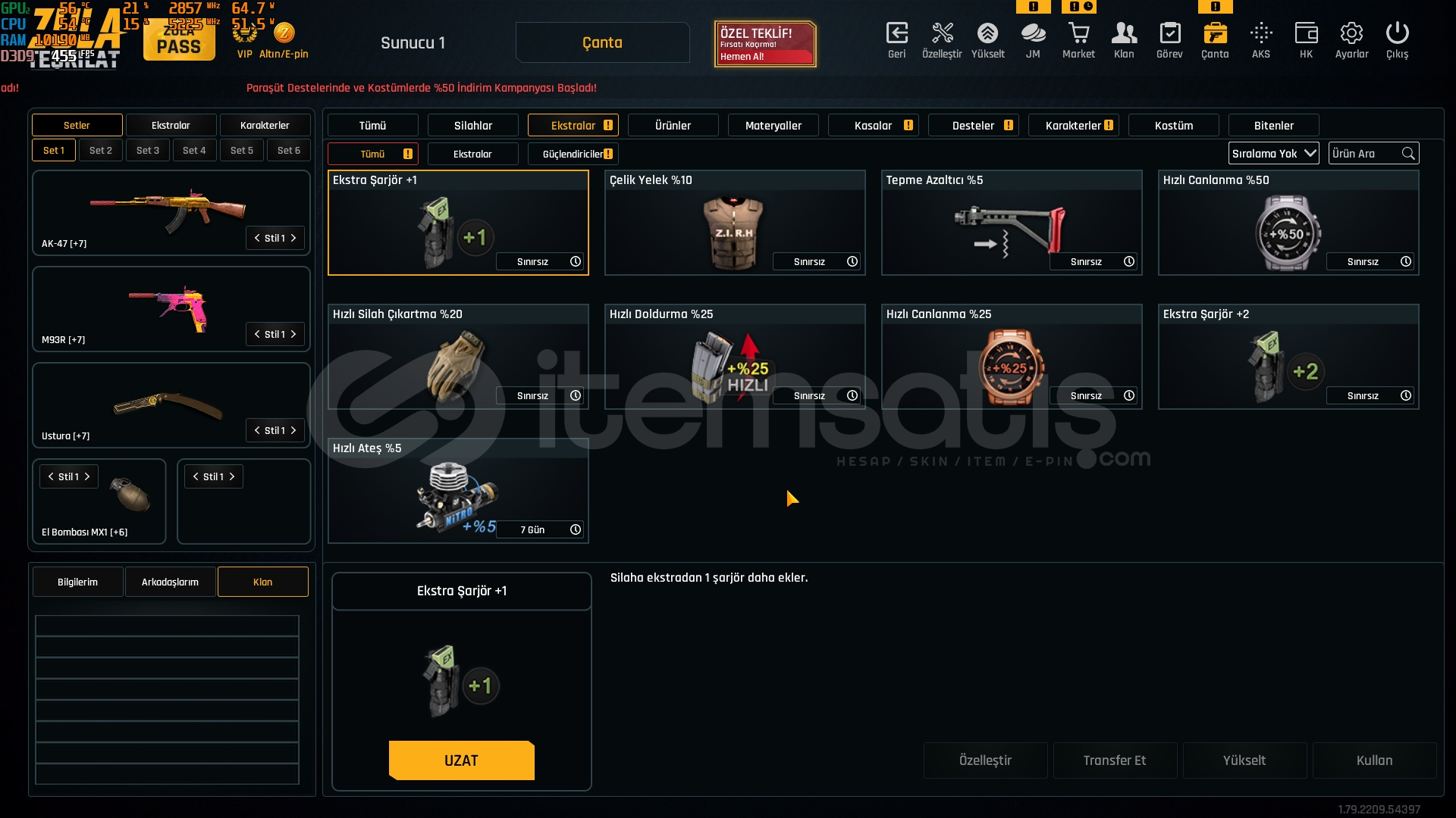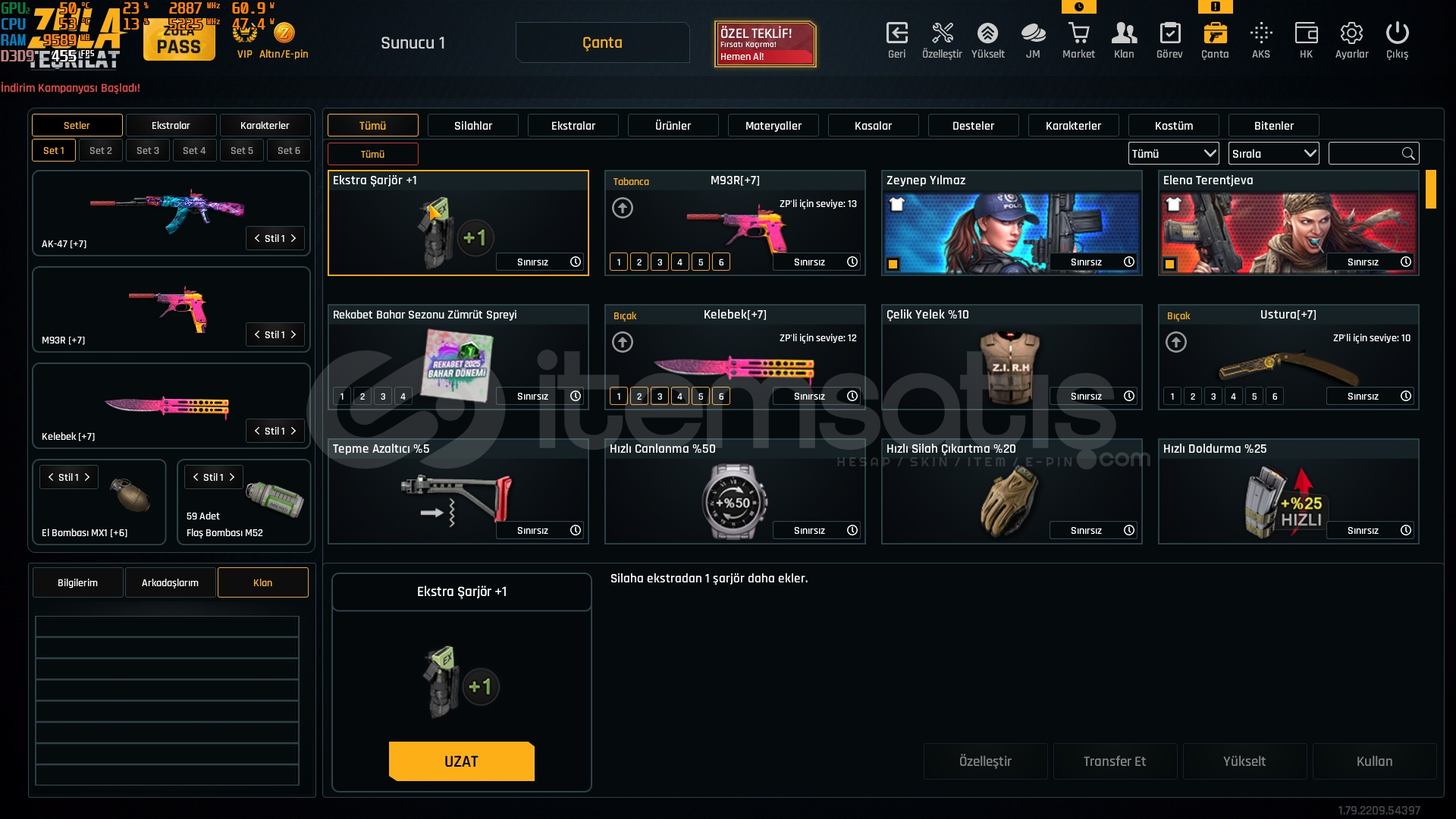 HESAPTA 40 KÜSÜR +7 MEVCUTTUR YAZILMAMIŞ OLANLAR VAR MARKET NERDEYSE FULL +6 FULL FULL HESAP ÖMÜRLÜK RESİMLERİ İNCELEYİNİZ LÜTFEN.[+7] AUG-A3[+7] MPT-76[+7] KAR-98 [+7] M468[+7] AWP[+7] L115A3[+7] M93R SINIRSIZ[+7] GLOCK-18 SINIRSIZ[+7] KELEBEK SINIRSIZ[+7] USTURA SINIRSIZ[+7] KARAMBİT[+7] GÖLGE[+7] RS-S1[+7] İKİLİ BOMBA[+7] MSR 01[+7]GROZA[+7] AK-47[+7] FATEH SINIRSIZ[+7] Kriss Vector SINIRSIZ[+7] ...