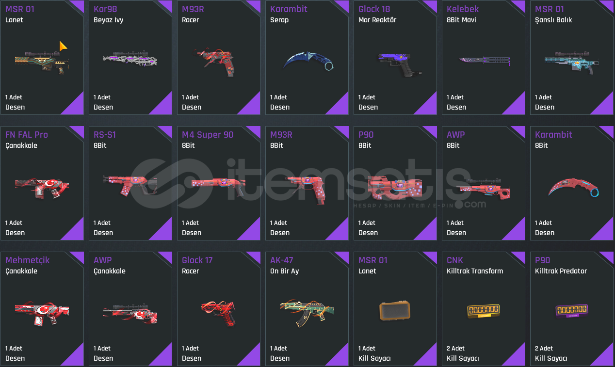 👑 HESAP T-11 SEVİYEDİR.👑 RANK : ELİT🎨 M93R QUANTUM + MOMENTUM🎨 KARAMBİT SERAP DESEN🎨 KELEBEK 8-BİT MAVİ DESEN🎨 MSR-01 LANET DESEN🎨 SERAP DESENLER🎨 8-BİT MAVİ DESENLER🎨 MOR REAKTÖR DESENLER🎨 LANET DESENLER🎨 BEYAZ IVY DESENLER🎨 ŞANSLI BALIK DESENLER🎨 8-BİT DESENLER🎨 RACER DESENLER🎨 ÇANAKKALE DESENLER🎨...