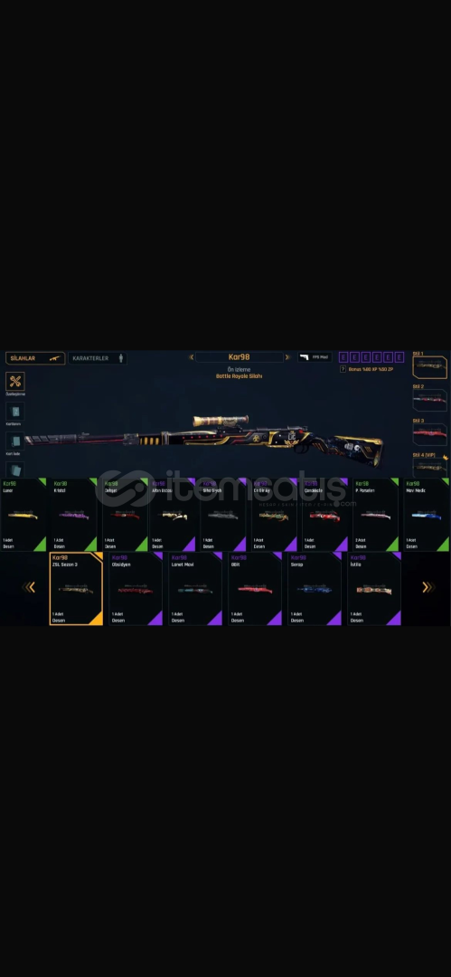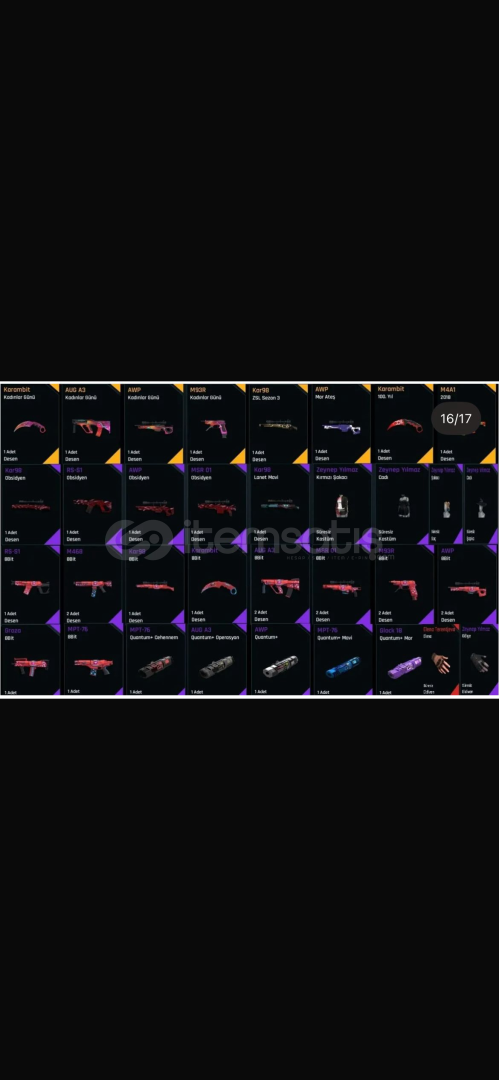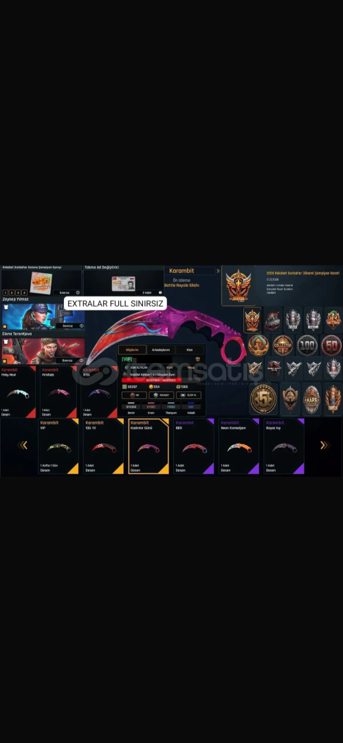 TEŞKİLAT SEVİYE T-7🍃 MPT-76 - KAR98 AURORA D. [ TAM SET ]🍃 ESKİ KADINLAR GÜNÜ D. [ TAM SET ]🍃 KAR98 ZSL SEZON 3 DESENİ🍃 AWP MOR ATEŞ DESENİ🍃 KARAMBİT 100.YIL DESENİ🍃 EXTRALAR FULL SINIRSIZ🍃 SINIRSIZ ZEYNEP🍃 SINIRSIZ ELENA🍃 REKABET ŞAMPİYON ROZETİ🍃 REKABET ŞAMPİYON SPREYİ🍃 2 ADET TAKMA AD DEĞİŞTİRİC...