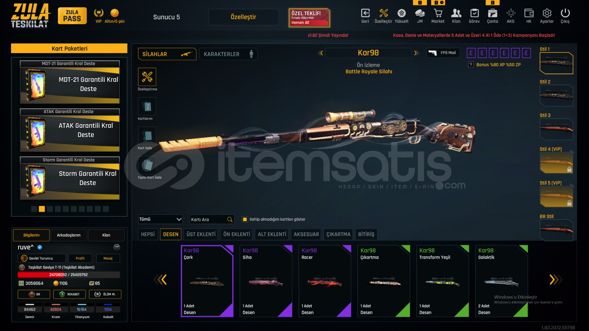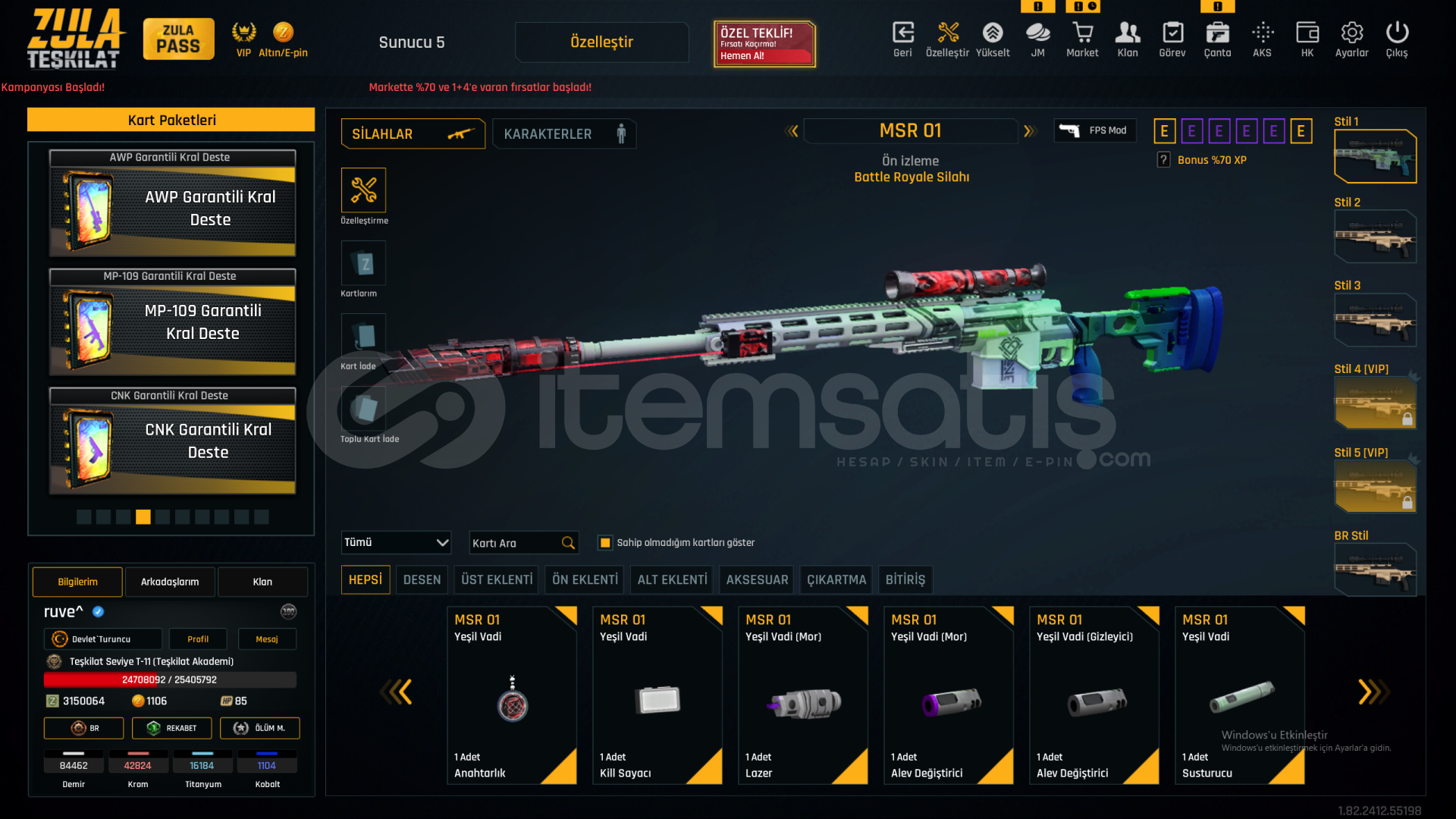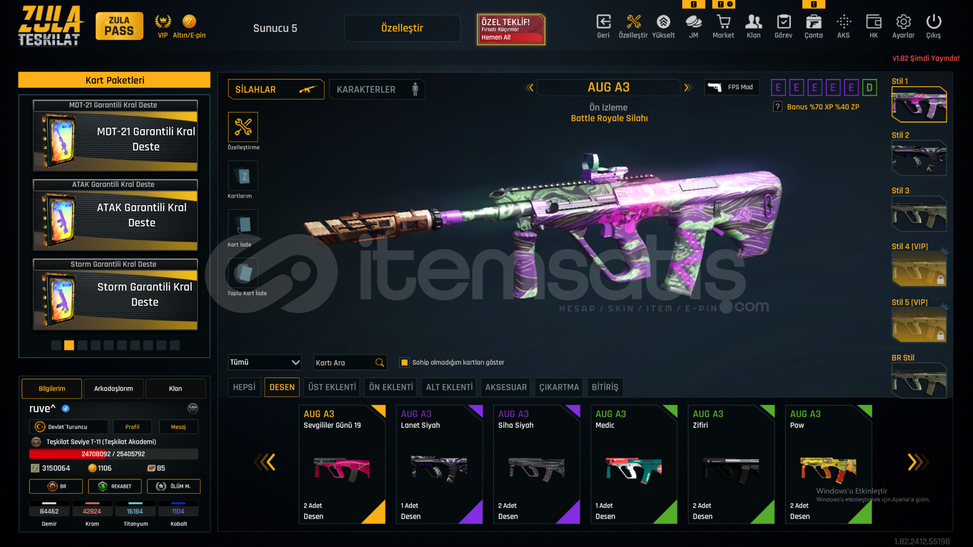 T11 ÖZELLEŞTİRME DELİSİ ÇARLEVEL : T11RANK : ZÜMRÜT•••🎨 AUG-A3 QUANTUM+ MERMER🎨 RS-S1 YEŞİL VADİ SET🎨 MSR-01 YEŞİL VADİ SET🎨 SEVGİLİLER GÜNÜ 2019 DESENLER🎨 KATANA DESENLER🎨 ÇARK DESENLER🎨 LANET SİYAH DESENLER🎨 RACER DESENLER🎨 8BİT GRİ DESENLER🎨 KOMEDYEN DESENLER🎨 ÇIKARTMA DES...