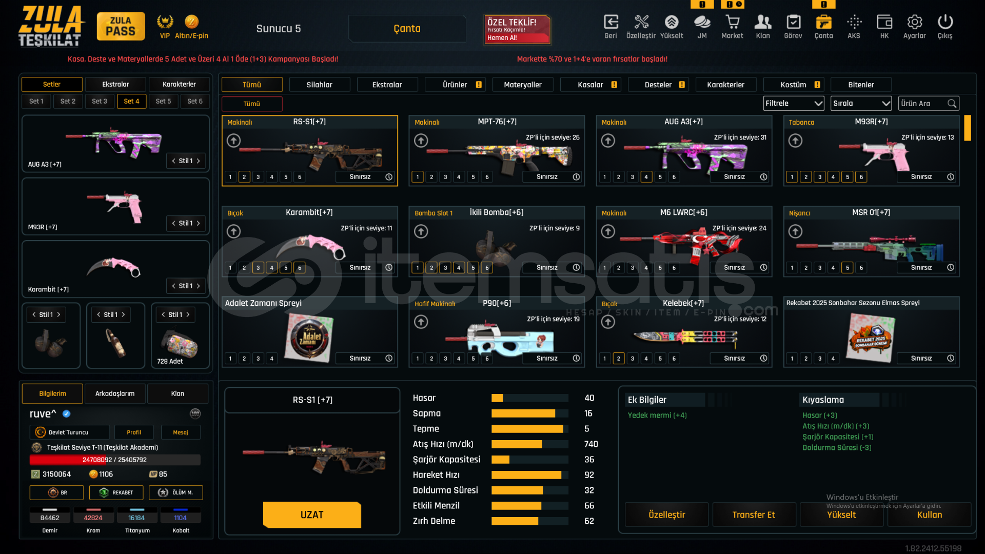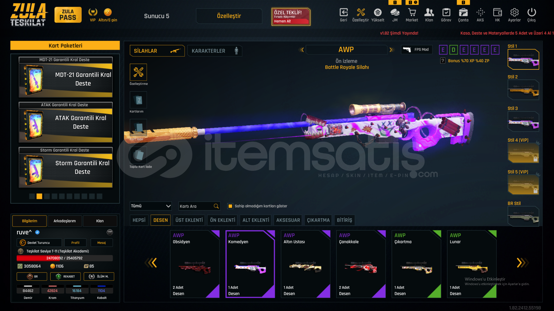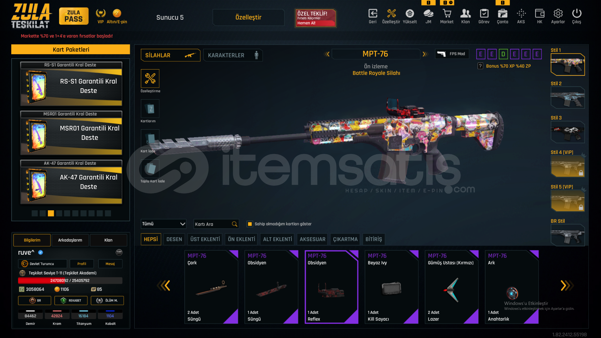 T11 ÖZELLEŞTİRME DELİSİ ÇARLEVEL : T11RANK : ZÜMRÜT•••🎨 AUG-A3 QUANTUM+ MERMER🎨 RS-S1 YEŞİL VADİ SET🎨 MSR-01 YEŞİL VADİ SET🎨 SEVGİLİLER GÜNÜ 2019 DESENLER🎨 KATANA DESENLER🎨 ÇARK DESENLER🎨 LANET SİYAH DESENLER🎨 RACER DESENLER🎨 8BİT GRİ DESENLER🎨 KOMEDYEN DESENLER🎨 ÇIKARTMA DES...