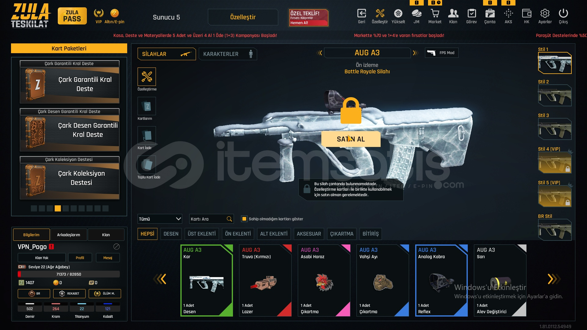 ⭐️TEL MAİL DEĞİŞEN AUGA3 KAR DESENLİ HESAP⭐️LVL-22⭐️+5 KATANA⭐️+4 BORA12⭐️+2 M468⭐️+1 MPT76⭐️MAİLİ DEĞİŞİYOR⭐️TELEFON NUMARASI DEĞİŞİYOR