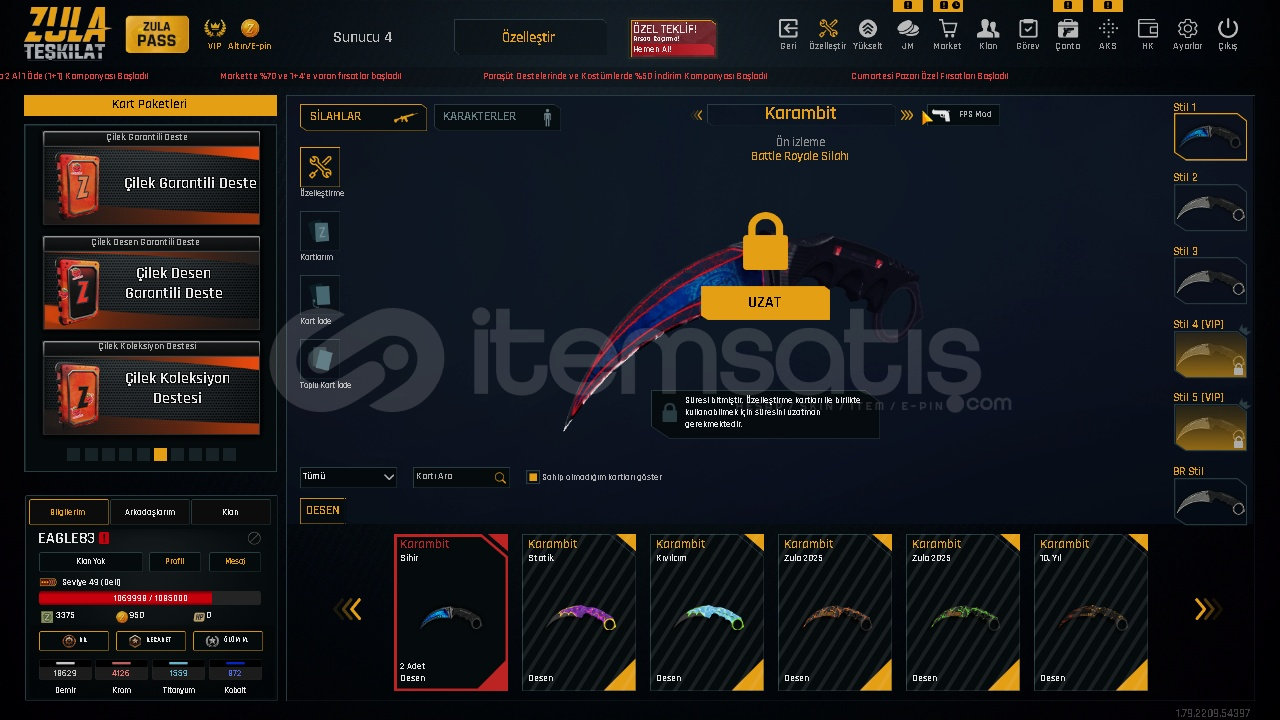 ⭐️TEL MAİL DEĞİŞEN AWP QUANTUM+ LI HESAP⭐️LVL- 49⭐️HESAPTA FAZLA ARTILI SİLAH YOKTUR ANCAK ARTI BASACAK MATARYELVARDIR İSTEDİĞİNİZ SİLAHI YÜKSELTEBİLİRSİNİZ⭐️ELİT - AWP QUANTUM+ SUSTURUCU⭐️+6 TRANSFORM BIÇAK⭐️+4 KARAMBİT⭐️+3 AK47⭐️MAİLİ...