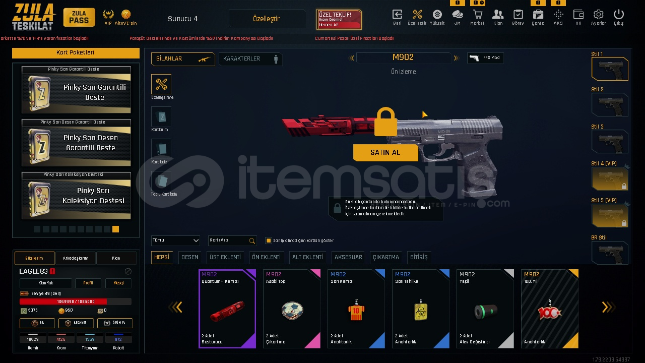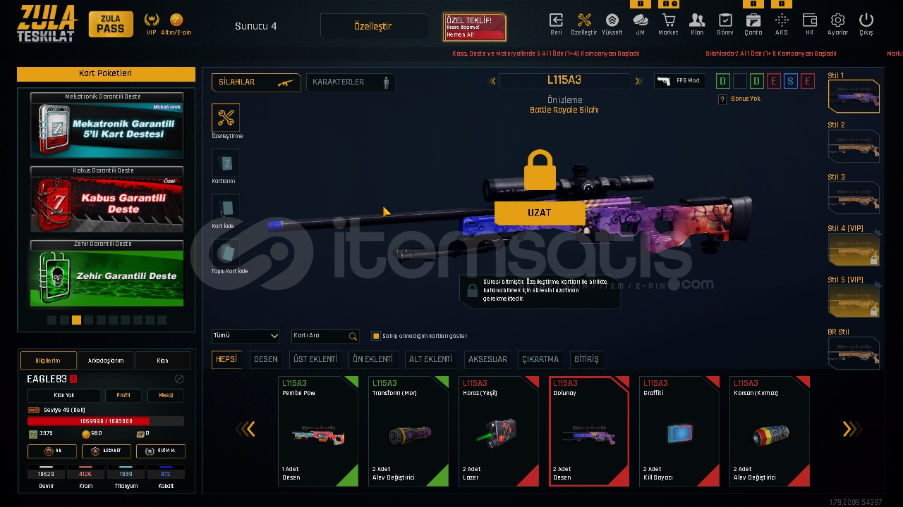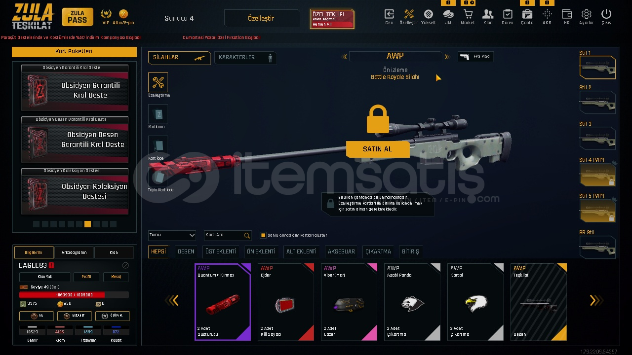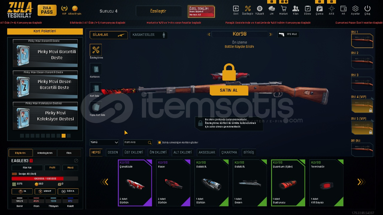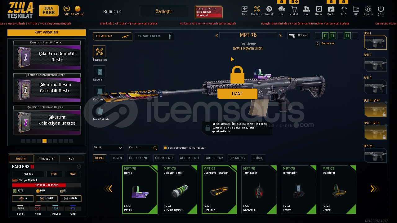 ⭐️HESAPTA FAZLA ARTILI SİLAH YOKTUR ANCAK ARTI BASACAK MATARYELVARDIR İSTEDİĞİNİZ SİLAHI YÜKSELTEBİLİRSİNİZ