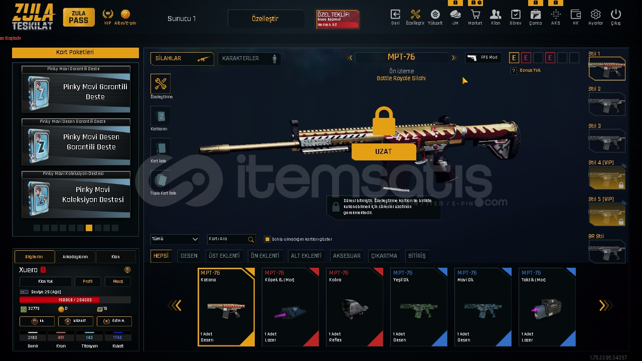 ⭐️TEL MAİL DEĞİŞEN MPT76 QUANTUMLU HESAP⭐️LVL- 29⭐️EŞSİZ - KATANA DESENLERİ⭐️+6 M93R⭐️+6 USTURA⭐️+5 İKİLİ BOMBA⭐️+5 AUGA3⭐️+5 MPT76⭐️+5 L115A3⭐️+4 AWP⭐️MAİLİ DEĞİŞİYOR⭐️TELEFON NUMARASI DEĞİŞ&...