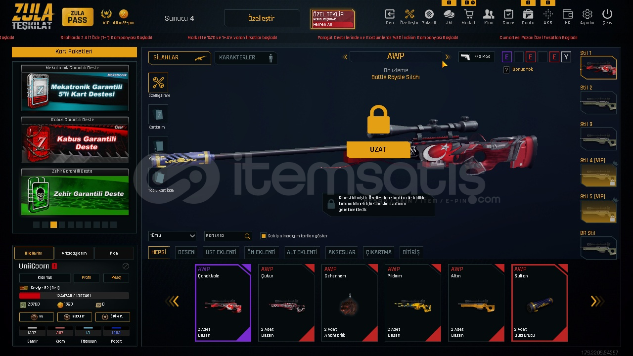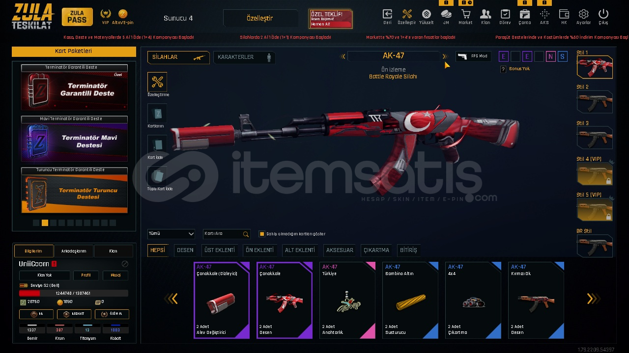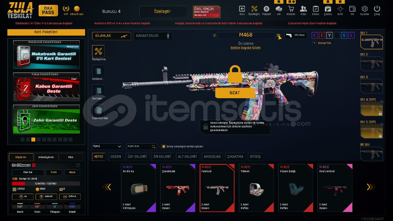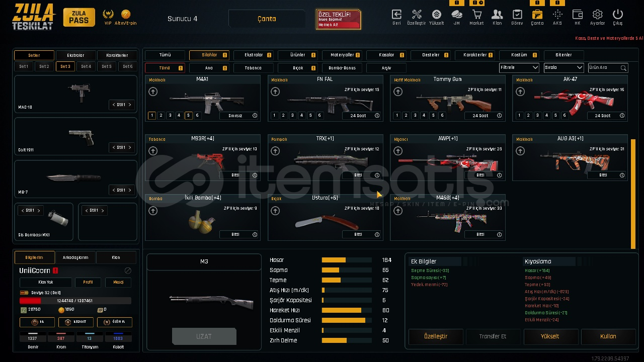 ⭐️TEL MAİL DEĞİŞEN İDEAL HESAP⭐️LVL- 52⭐️+6 USTURA⭐️+4 M468⭐️+4 M93R⭐️+4 İKİLİ BOMBA⭐️MAİLİ DEĞİŞİYOR⭐️TELEFON NUMARASI DEĞİŞİYOR