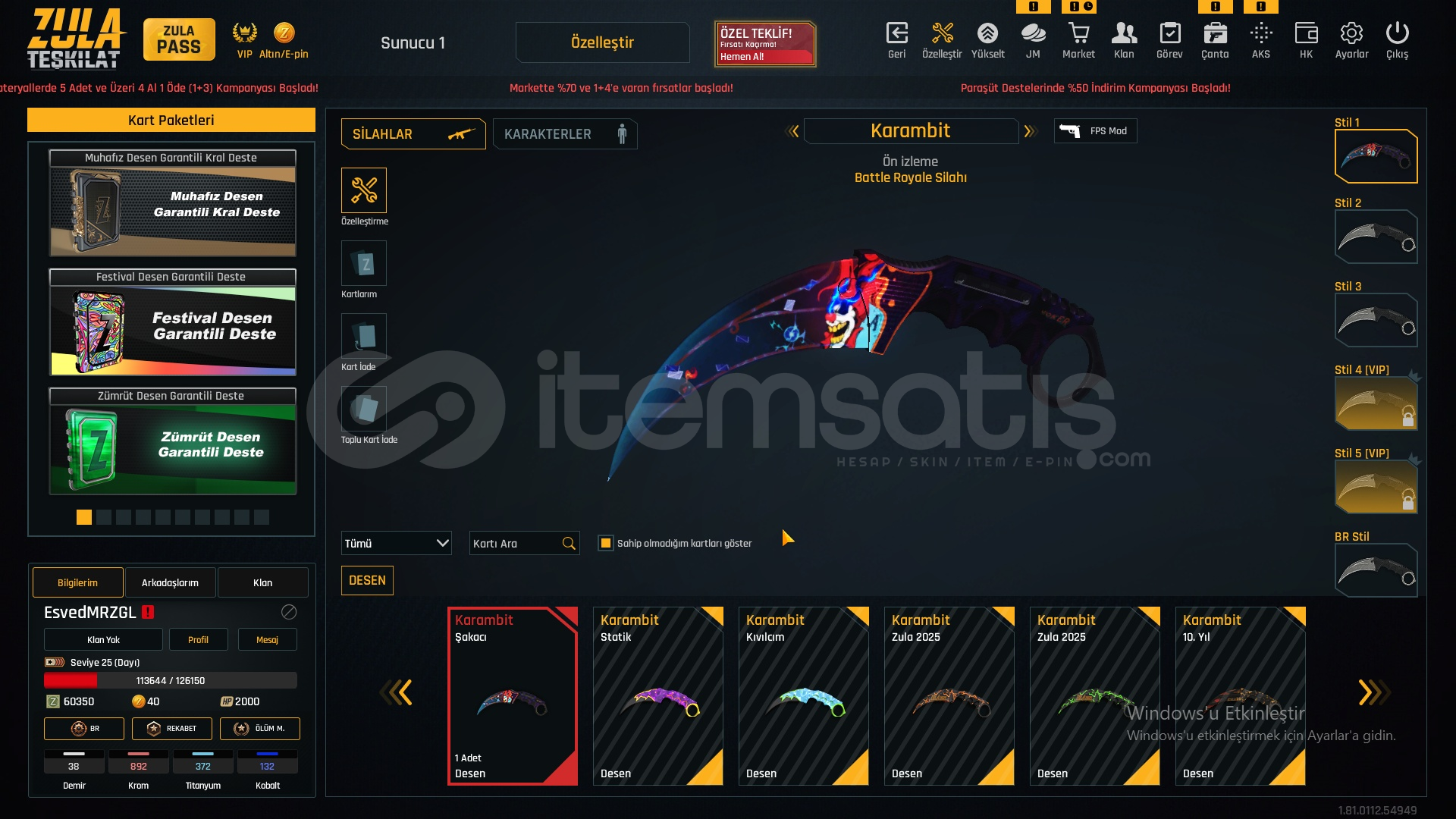 ⭐️TEL MAİL DEĞİŞEN KARAMBİT SKİNLİ BAŞLANGIÇ HESBI⭐️LVL- 25⭐️HESAPTA 60K ZP MEVCUTTUR⭐️KARAMBİT ŞAKACI DESEN⭐️MAİLİ DEĞİŞİYOR⭐️TELEFON NUMARASI DEĞİŞİYOR