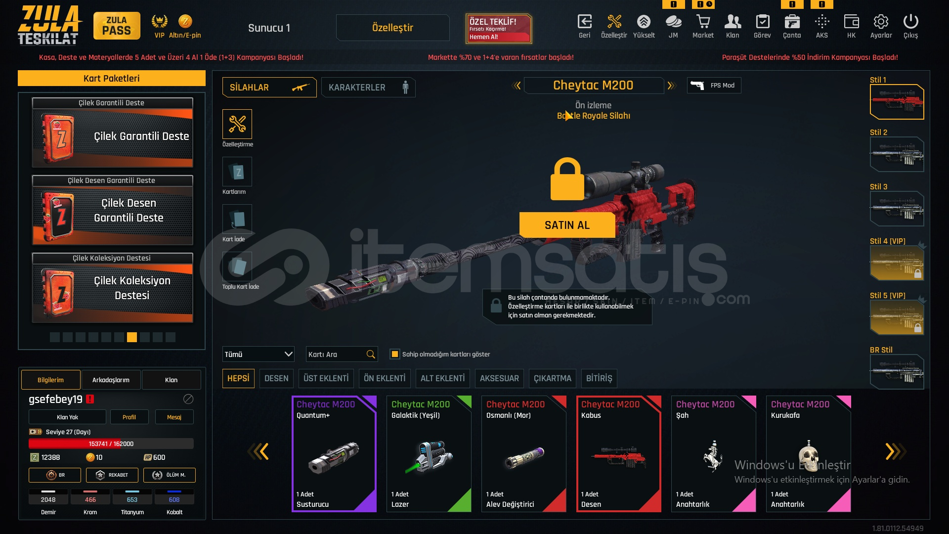 ⭐️TEL MAİL DEĞİŞEN QUANTUM+ LI HESAP⭐️LVL- 27⭐️CHEYTACH M200 QUANTUM+ SUSTURUCU⭐️SINIRSIZ - ÇELİK YELEK %10⭐️+4 İKLİ C5⭐️+3 AWP⭐️+3 FAMAS⭐️+2 M468⭐️+1 AUGA3⭐️1 ADET İSTATİSLİK SIFIRLAMA⭐️MAİLİ DEĞİŞİYOR⭐️TELEFO...