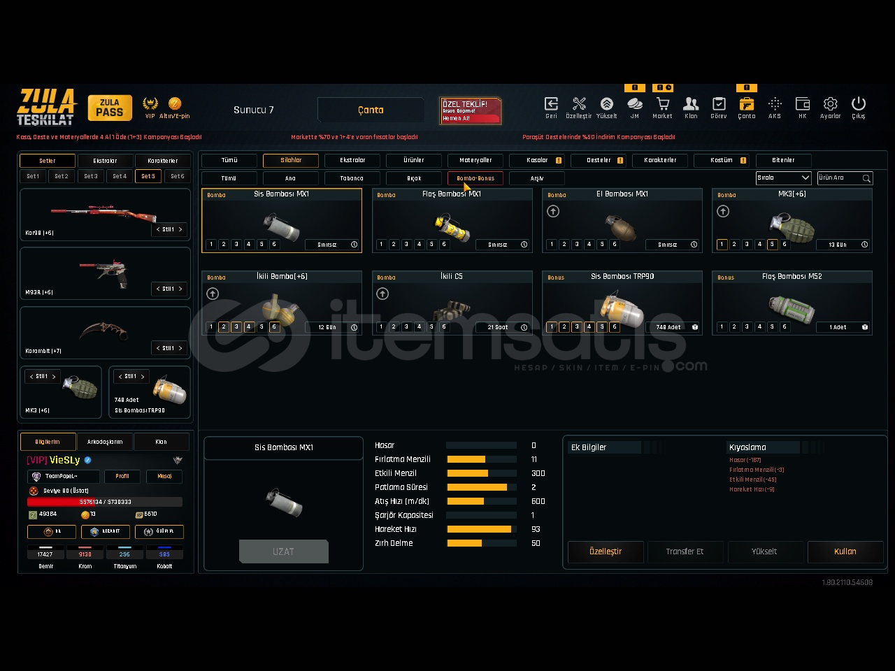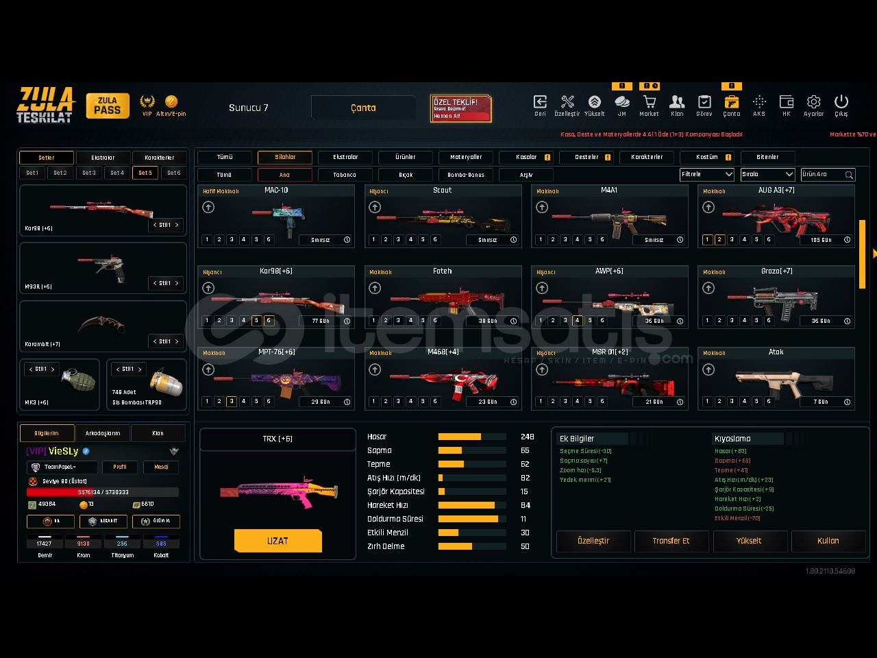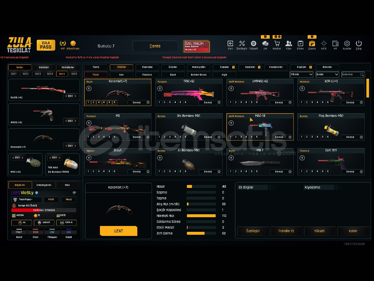 HESABIN BAĞLARI TERTEMİZDİR TELEFON NUMARASI VE EPOSTA ÜZERİNİZE SORUNSUZ AKTARILACAK.HESAPTA SINIRSIZ :+7 KARAMBİT+6 TRX XCRL +6 UMP TEPME AZALTICI YENİDEN DOĞMA %50EKSTRA ŞARJÖRÇELİK YELEK %5HIZLI DOLDURMA %10 VARDIR.ARTILAR:+7 AUG+7 GROZA+7 DEAGLE+7 GLOCK 18 +6 MPT76+6 KAR98+6 AWP+6 M93R+6 İKİLİ BOMBA+6 MK3+4 M468+6 MEHMETÇİK PRO+4 RS-S1VE DİĞER SİLAHLARIN DAHA DÜŞÜK ART...