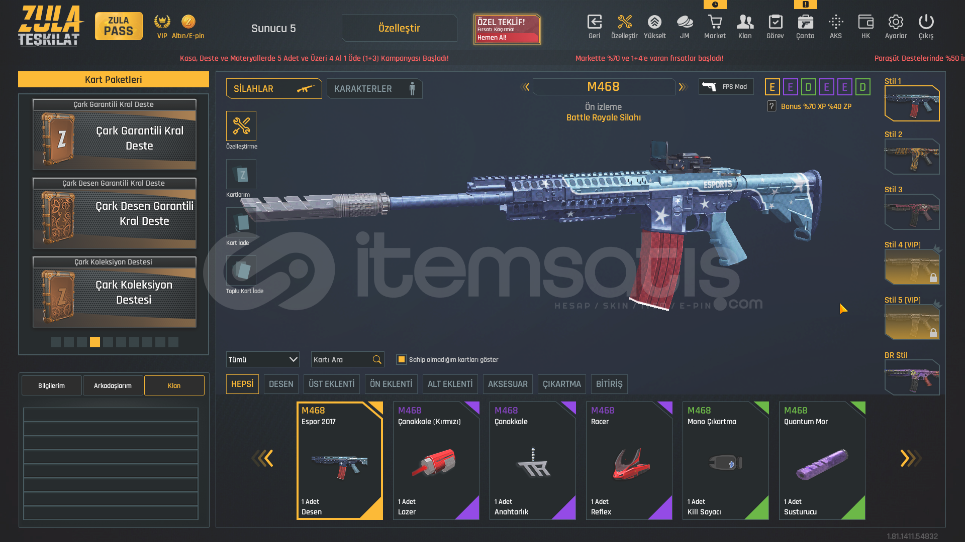 TÜRKİYEDE TEK ! E SPOR M468 +7 SINIRSIZ !+7 SINIRISIZ KELEBEK+6 SINIRSIZ DEAGLETEPME AZALTICI SINIRSIZ+6 M6 LWRC+6 MEHMETÇİK PRO+5 AUGSINIRSIZ TEPME AZALTICITÜRKİYEDE HİÇBİR HESAPDA YOK E SPOR 2017 DESEN OYUNUN EN NADİR DESENİ PAHA BİÇİLEMEZ ŞUANDA !
