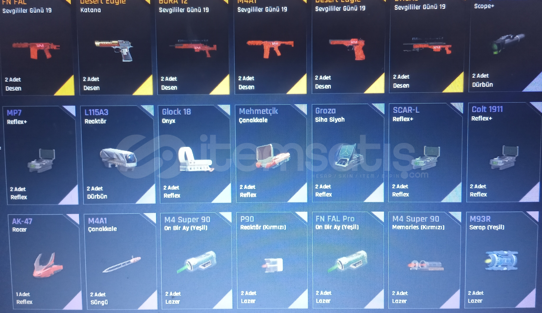 75 levelAug a3 +7M93r +6Kar98 +6Karambit +6 İkili bomba +6Ak-47 +6Mk3 +6L115a3 +6Desert eagle +6Groza +6Ustura +7Kelebek +6 Mehmetçik sınırsız