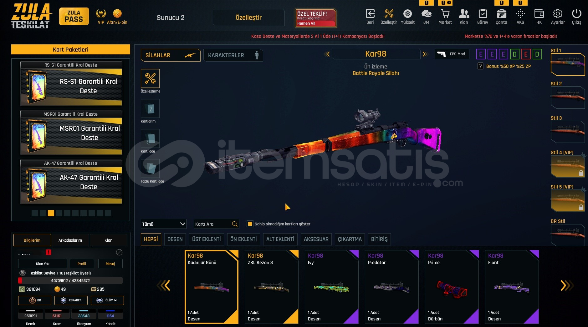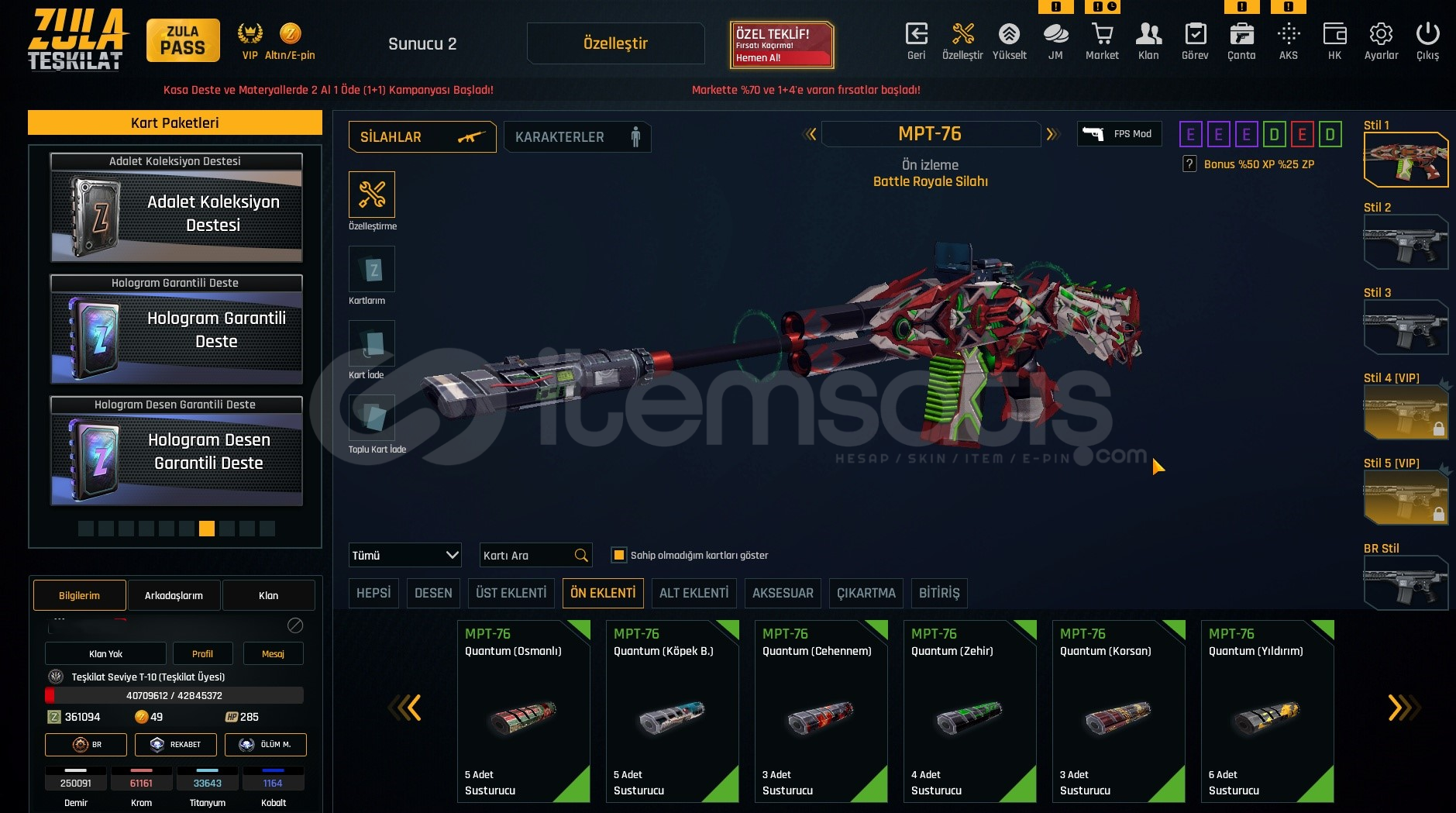 🔥 ZULA TR – FULL + FULL + NADİR SKİNLERLİ KOLEKSİYONLUK HESAP 🔥🟢 T10 Seviye🟢 Oyuncu Sıralaması 2044 ( Değişiklik olabilir )🟢 361094+ ZP💰 Fiyat: ₺6500💬 NOTLAR:🟢 Mail ve telefon doğruluğu yok → Satın aldıktan sonra kendi bilgilerinizi tanımlayabilirsiniz.🟢 Hiçbir susturma / ceza yoktur.🟢 Pazarlık yapılabilir – ancak...