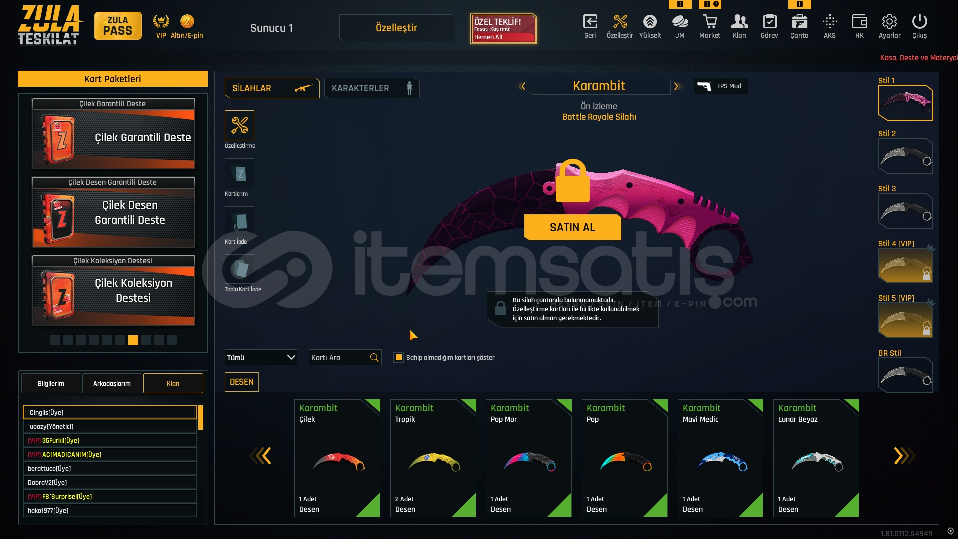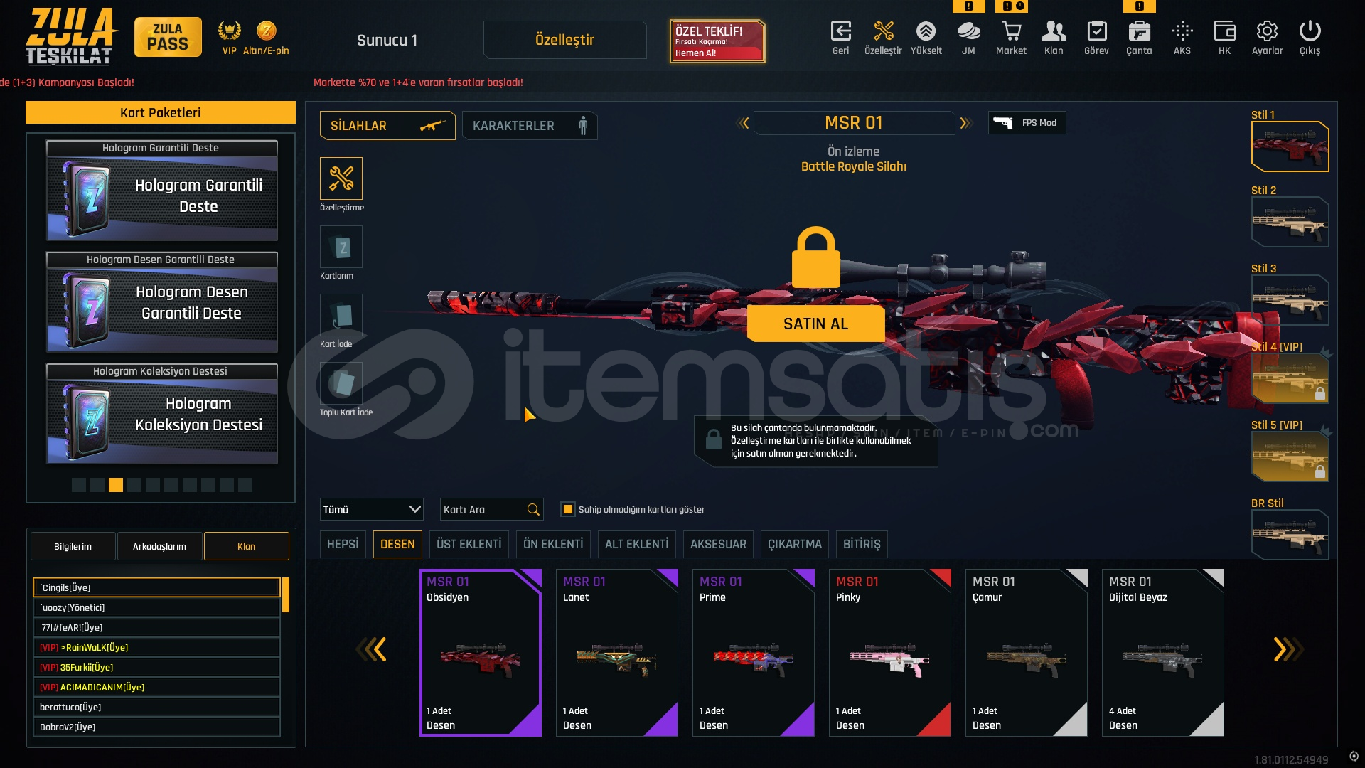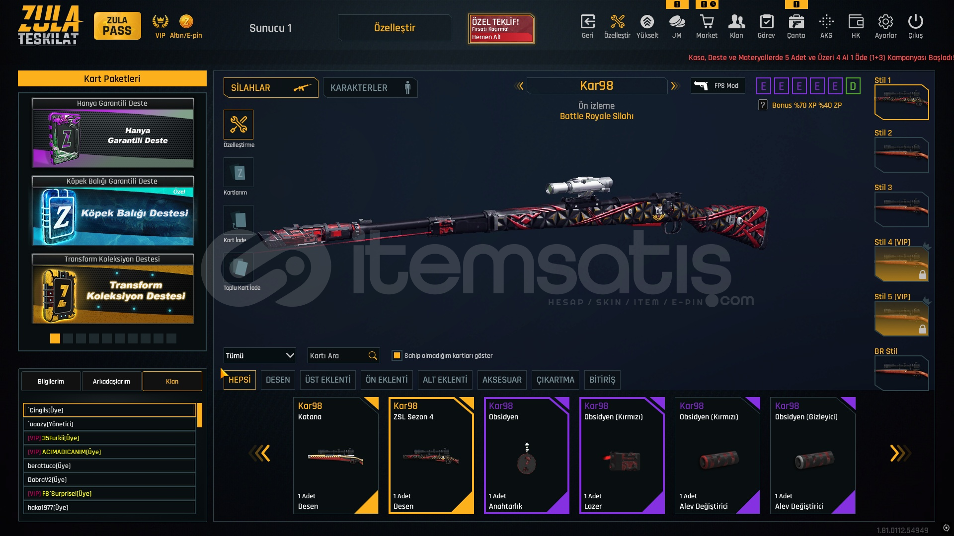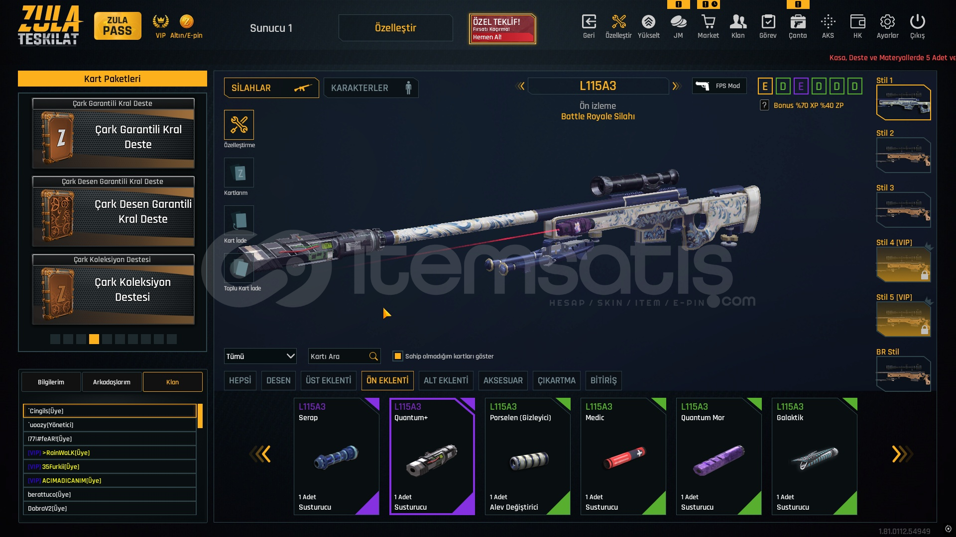Hesap artı ve sınırsız olarak boştur hesapta Zsl 4 kar98 desen vardır 2 tane qua plus vardır.